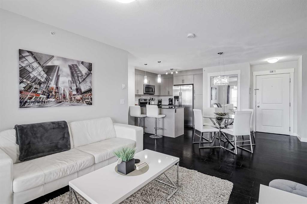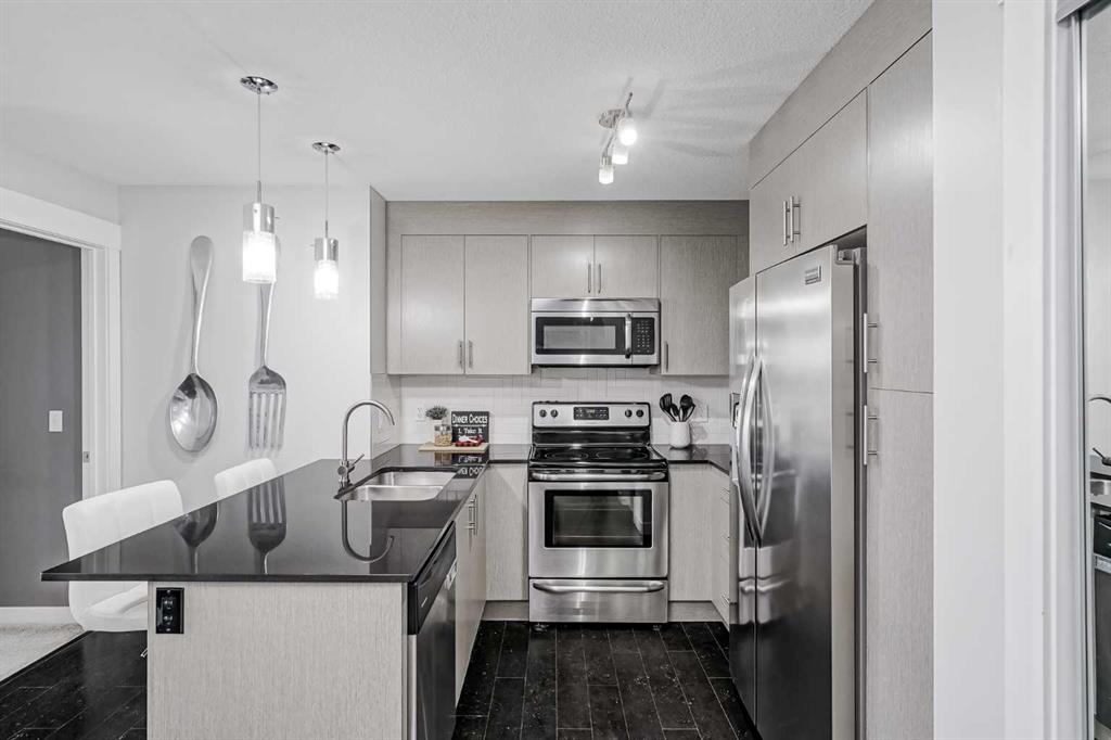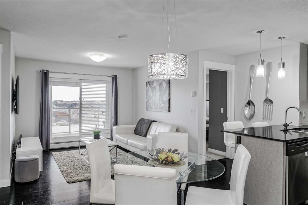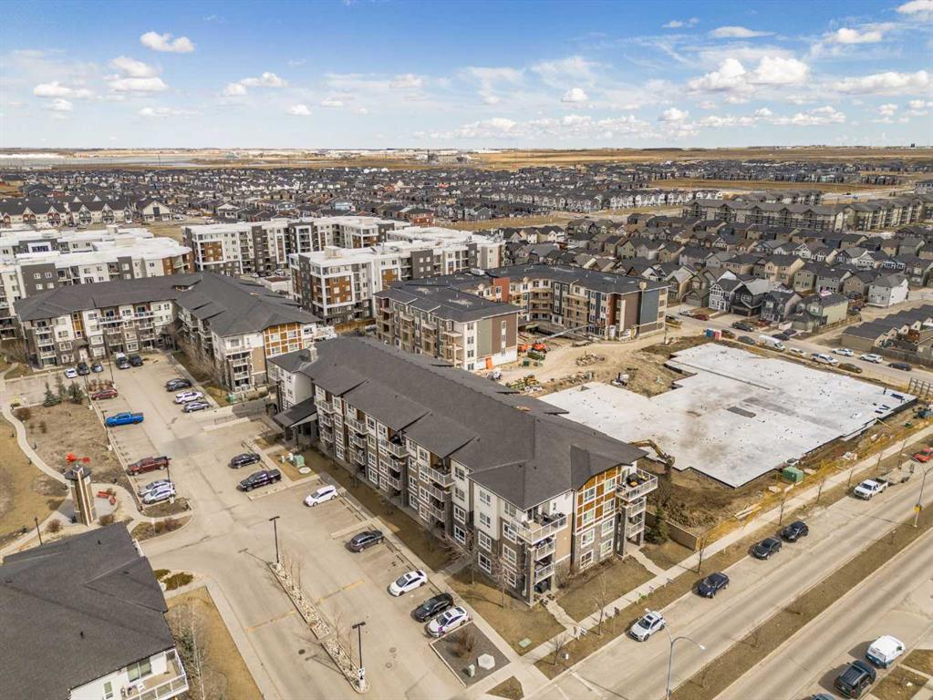 IMMEDIATE POSSESSION! VACANT and MOVE-IN READY! Welcome to this bright and beautifully designed TOP-FLOOR condo in the sought-after community of Skyview Ranch—where style, comfort, and convenience come together. As you enter, you’re welcomed by a spacious and sunlit open-concept living area, perfectly suited for both relaxing and entertaining. The seamless flow into the contemporary kitchen is sure to impress, featuring sleek grey cabinetry, granite countertops, stainless steel appliances, and an abundance of counter and storage space. Whether you’re preparing a quiet meal or hosting friends, this kitchen is both beautiful and practical. A dedicated office nook offers the ideal tucked-away workspace for remote professionals or students, making working from home effortless and efficient. Step through the sliding glass doors from the bright and airy living room onto a generous east-facing balcony—perfect for sipping your morning coffee or hosting summer barbecues. Take in the open, unobstructed views while enjoying the convenience of a built-in BBQ gas line, ideal for effortless outdoor entertaining. Designed for comfort and privacy, this well-planned layout places the primary bedroom on one side of the unit, complete with a walk-in closet and a spa-inspired 4-piece ensuite bathroom. On the opposite side, a second generously sized bedroom sits adjacent to its own 4-piece full bathroom, making it perfect for guests, children, or roommates. Additional highlights include: a convenient in-suite laundry and storage room, stylish mix of cork, tile, and plush carpet flooring, secure underground parking stall with a private storage cage, key fob-secured front lobby with video surveillance for added peace of mind. Location is everything, and this home truly delivers. Just steps away from the brand-new Skyview Ranch Elementary/Middle School (K–9), this community is perfect for families. Enjoy the nearby playgrounds, parks, local shopping, and essential amenities—all within walking distance.This condo offers an exceptional opportunity to own in one of Calgary’s most vibrant and growing neighborhoods.