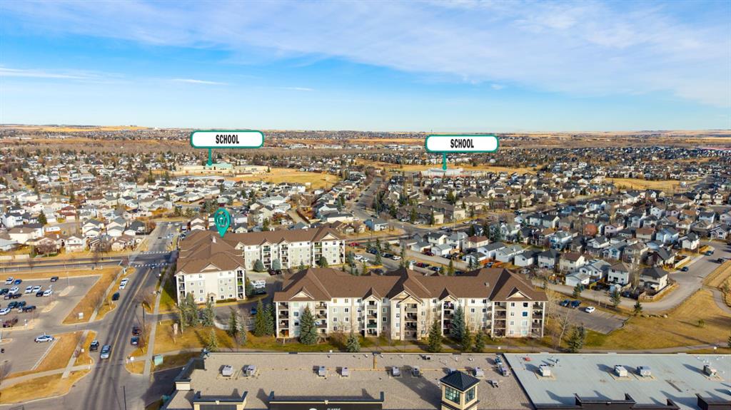 Welcome to this beautifully maintained 2-bedroom, 846 sq. ft. top-floor suite—a perfect choice for first-time buyers, down sizers, or investors. Located in the highly desirable community of Cimarron Common, you’re just steps away from shops, restaurants, health and wellness services, parks, and pathways. Truly, you won’t even need a car.