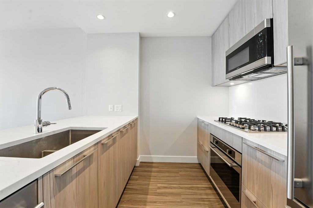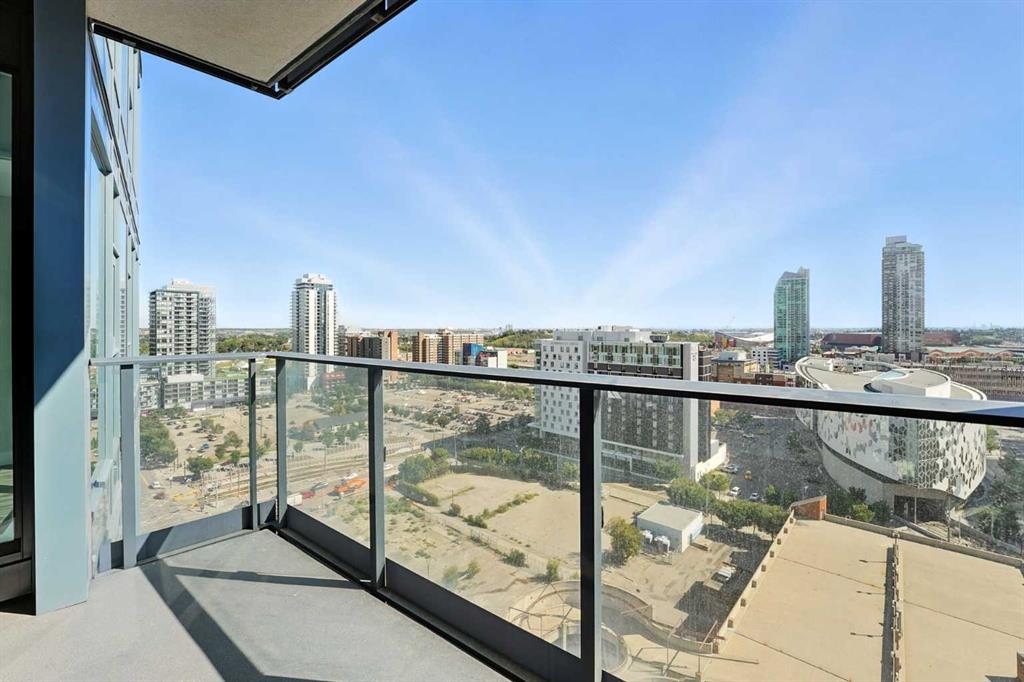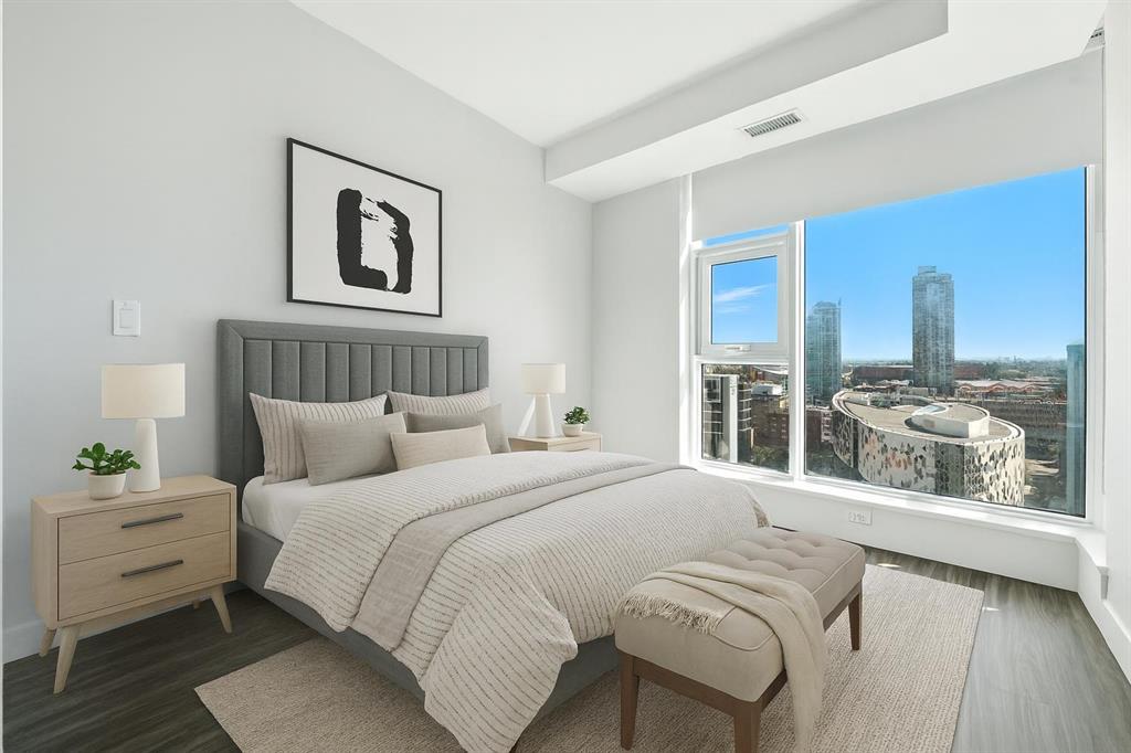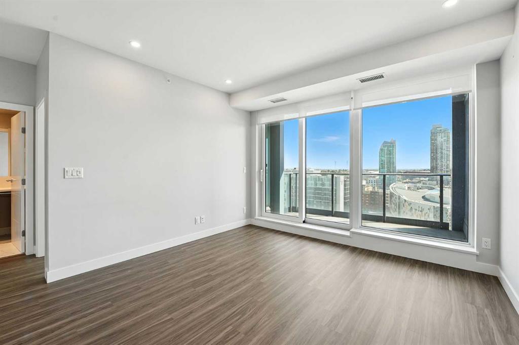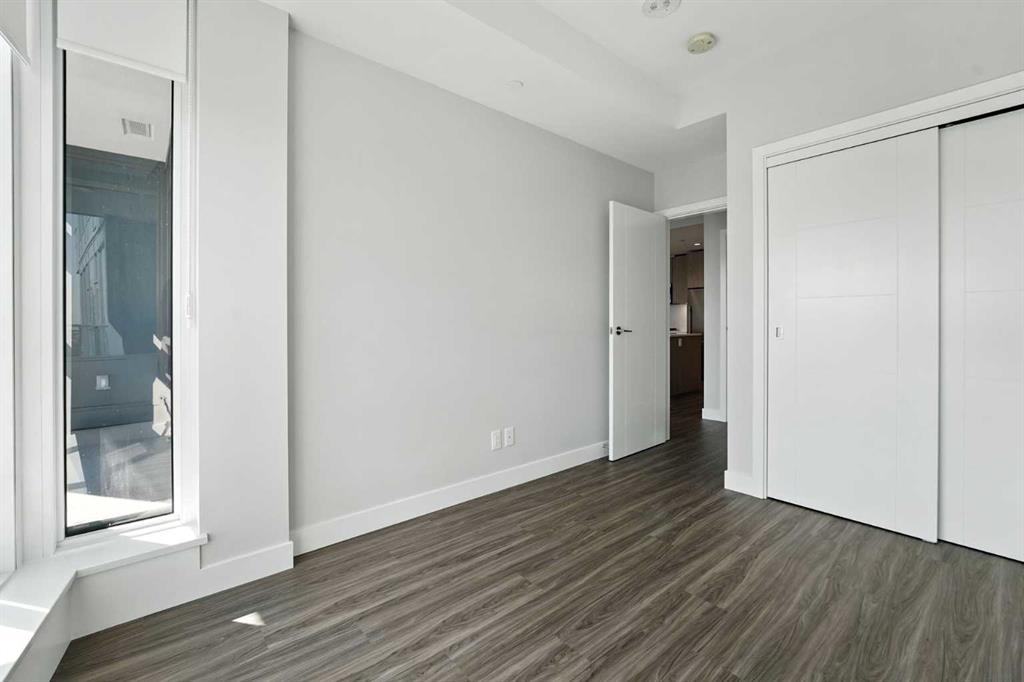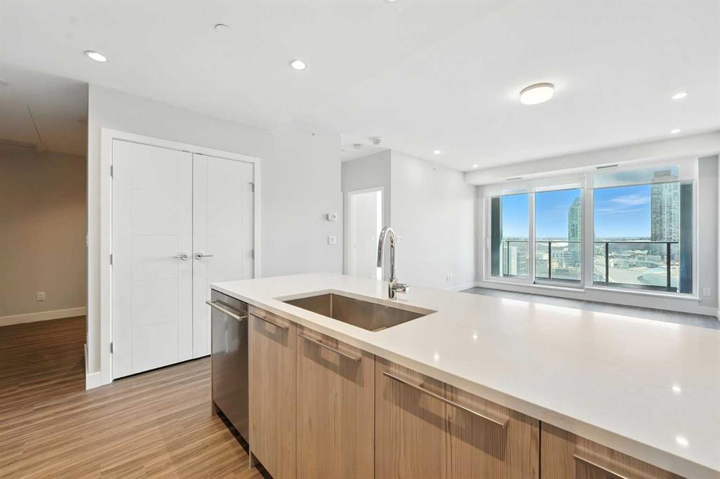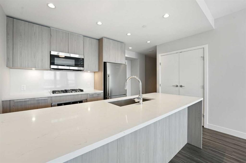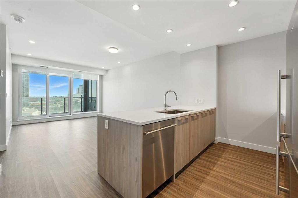 Welcome to this virtually brand-new 1-bedroom plus den condo in the prestigious Arris Residences, ideally located in the heart of Calgary’s vibrant East Village. This south-facing 1-bedroom + Den, 1-bathroom unit offers 635 sq. ft. of thoughtfully designed living space, featuring floor-to-ceiling windows that flood the interior with natural light and offer unobstructed views of the downtown skyline from your private balcony. The modern kitchen is outfitted with quartz countertops, premium stainless steel appliances, and sleek contemporary cabinetry, making it both stylish and functional. The versatile den provides the perfect space for a home office, guest area, or reading nook, while central air conditioning ensures year-round comfort.