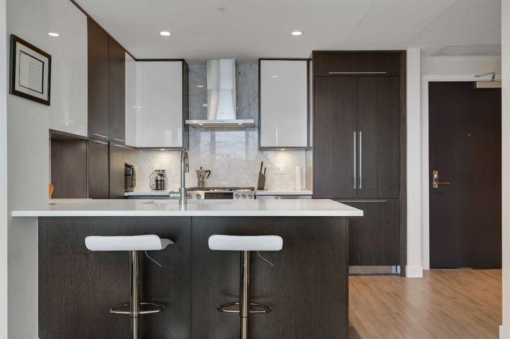 Welcome to 1408, 930 16 Avenue SW, situated in Calgary’s vibrant entertainment district, steps from top restaurants, shops, and nightlife. Access your unit directly via one of three high-speed elevators, and be greeted by a bright, open-concept design with floor-to-ceiling windows that showcase stunning city and mountain views. The gourmet kitchen is a true highlight, featuring stone countertops, full-height cabinets, and a spacious breakfast bar island—perfect for entertaining. The adjacent dining and living areas are flooded with natural light and offer direct access to a large balcony, ideal for morning coffee or evening gatherings against the breathtaking backdrop. The spacious primary bedroom also boasts fantastic views and a second entry to the balcony, creating a serene retreat. The stylish bathroom includes a deep soaker tub, and additional features like in-suite laundry, underground parking, and a separate storage locker ensure convenience. The building offers a wealth of amenities, including a 10,000 sq. ft. “Club Royal” with an elevated garden terrace, BBQs, steam room, sauna, gym, squash court, owner’s lounge, chef’s kitchen, and private dining area. An on-site concierge (24/7), and glamorous lobby add to the luxury living experience. Plus, with Canadian Tire and Urban Fare Market on-site, everything you need is at your doorstep. Nearby attractions include Elbow River pathways, transit, and Memorial Park.