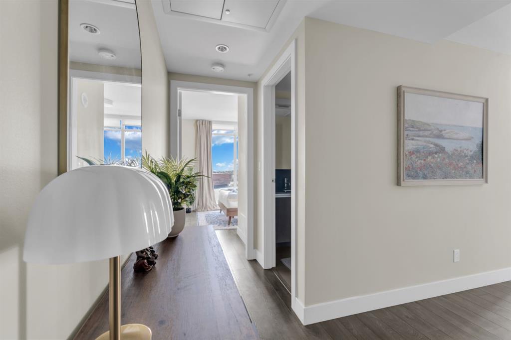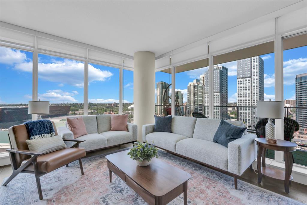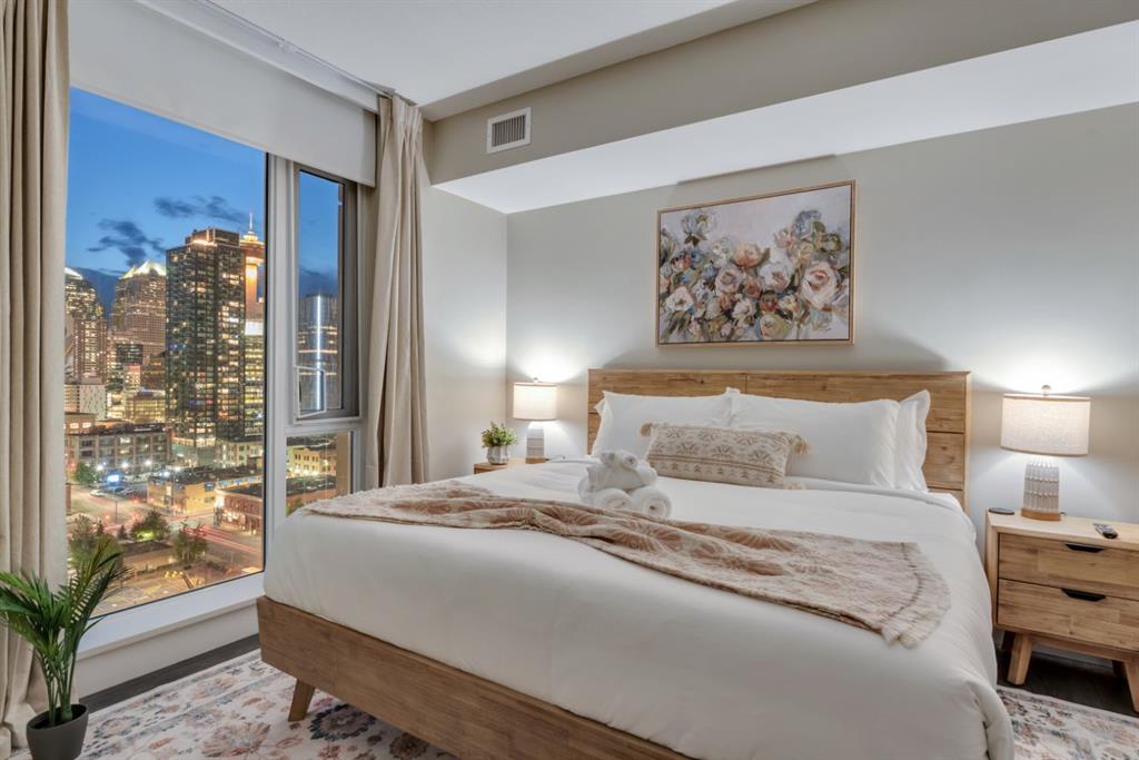 One of the few 900+ sq ft units currently available in The Guardian, this beautifully maintained condo stands out with its spacious layout, premium positioning, and stunning city-facing orientation. Located on the 14th floor in the highly desirable 09 stack, this home offers unobstructed skyline views of downtown Calgary and the Calgary Tower, filling the space with natural light through expansive floor-to-ceiling windows.