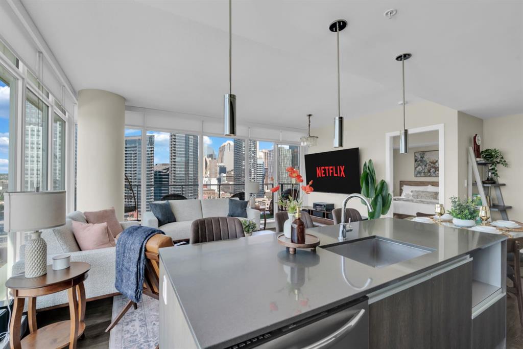 The building itself is a landmark of the Calgary skyline, known for its sleek glass facade and high-quality construction. With the upcoming development in the Culture and Entertainment District, this location is poised for significant future appreciation. Secure your place in the heart of the action.