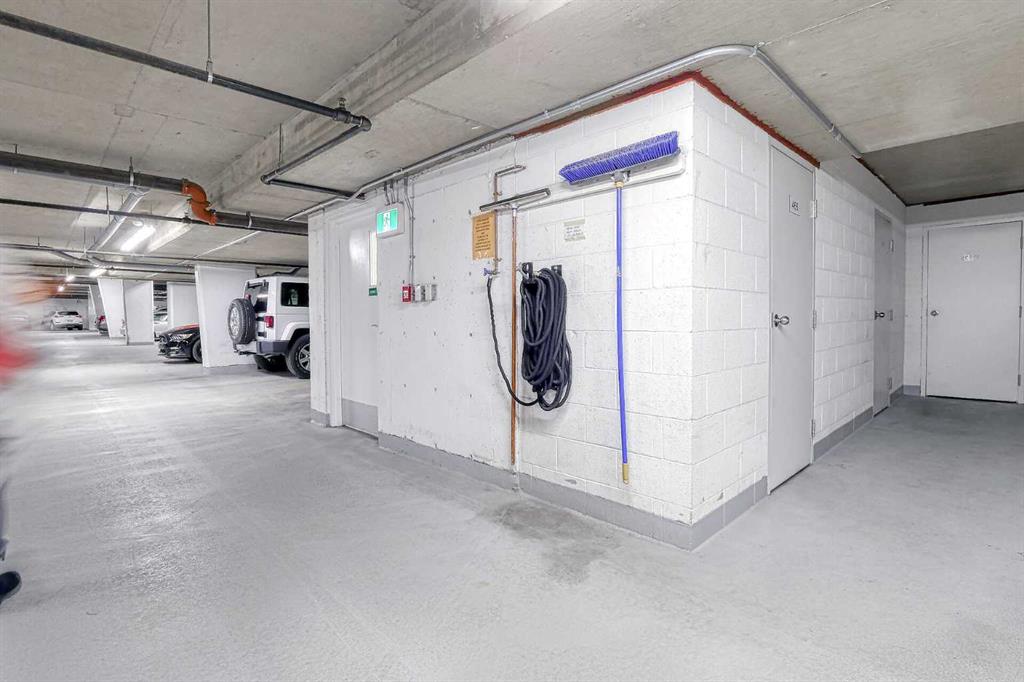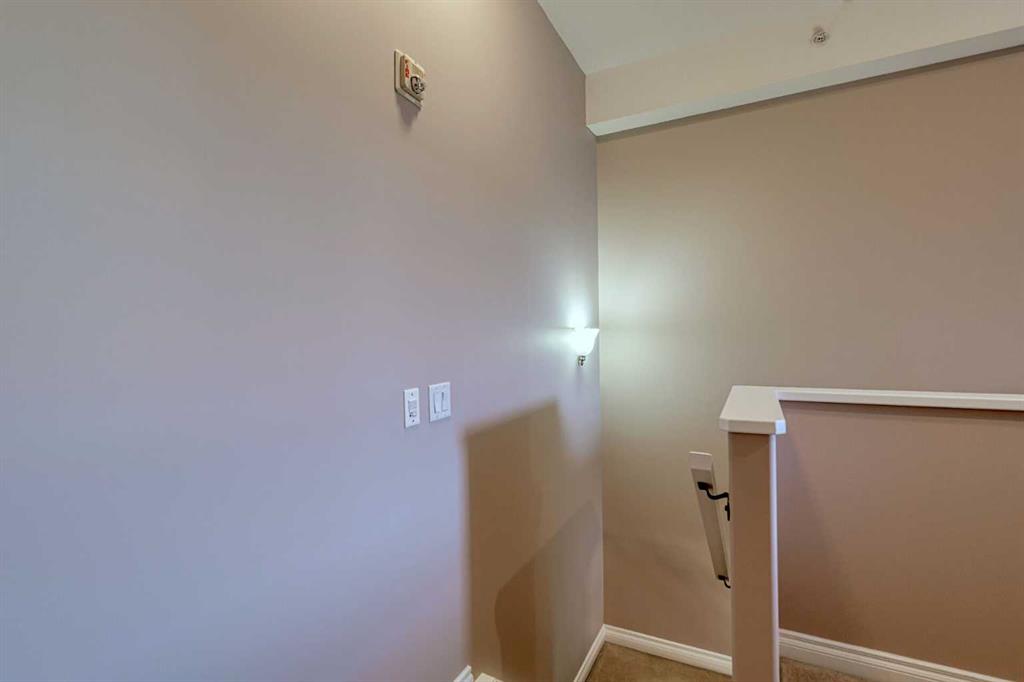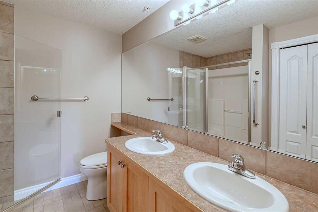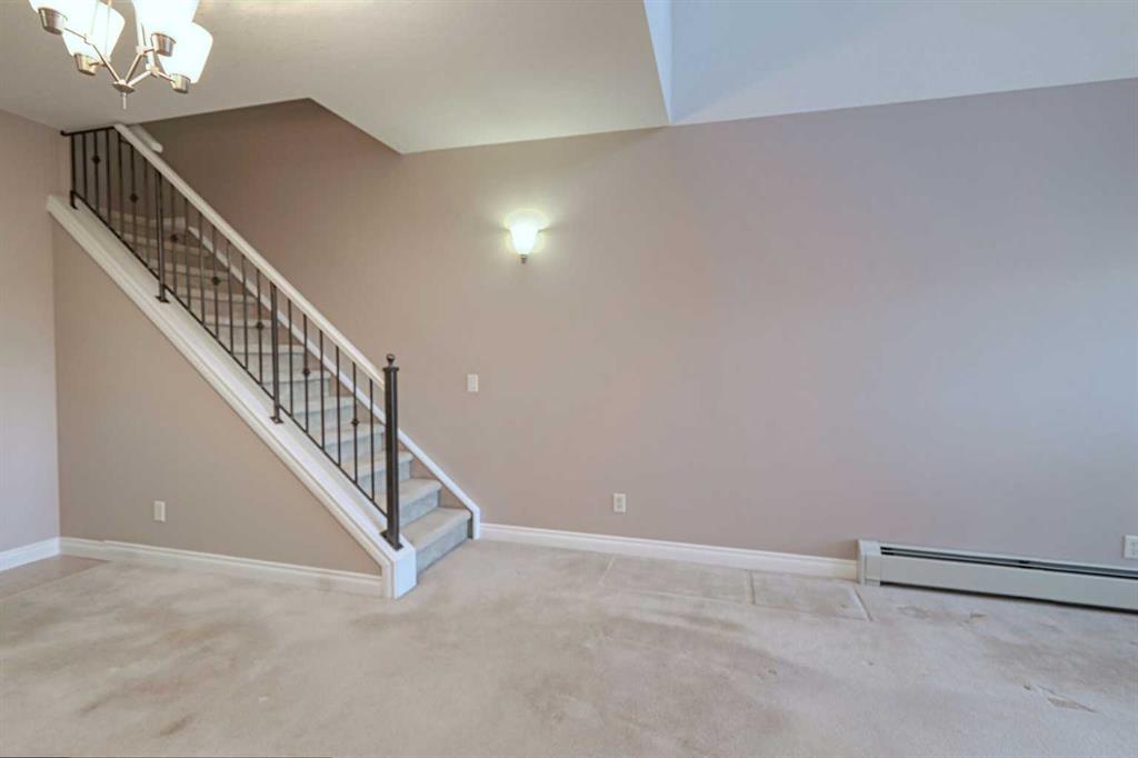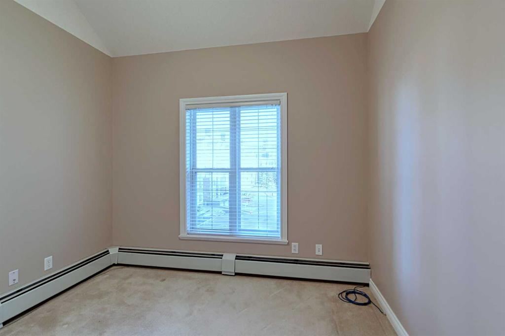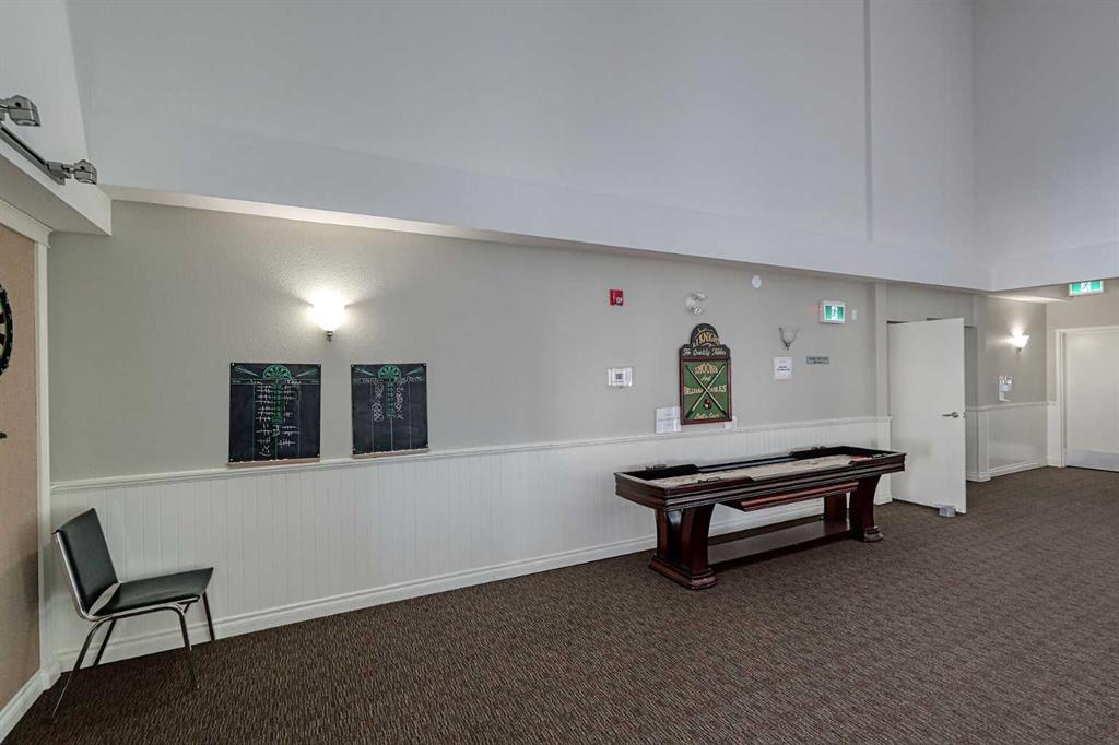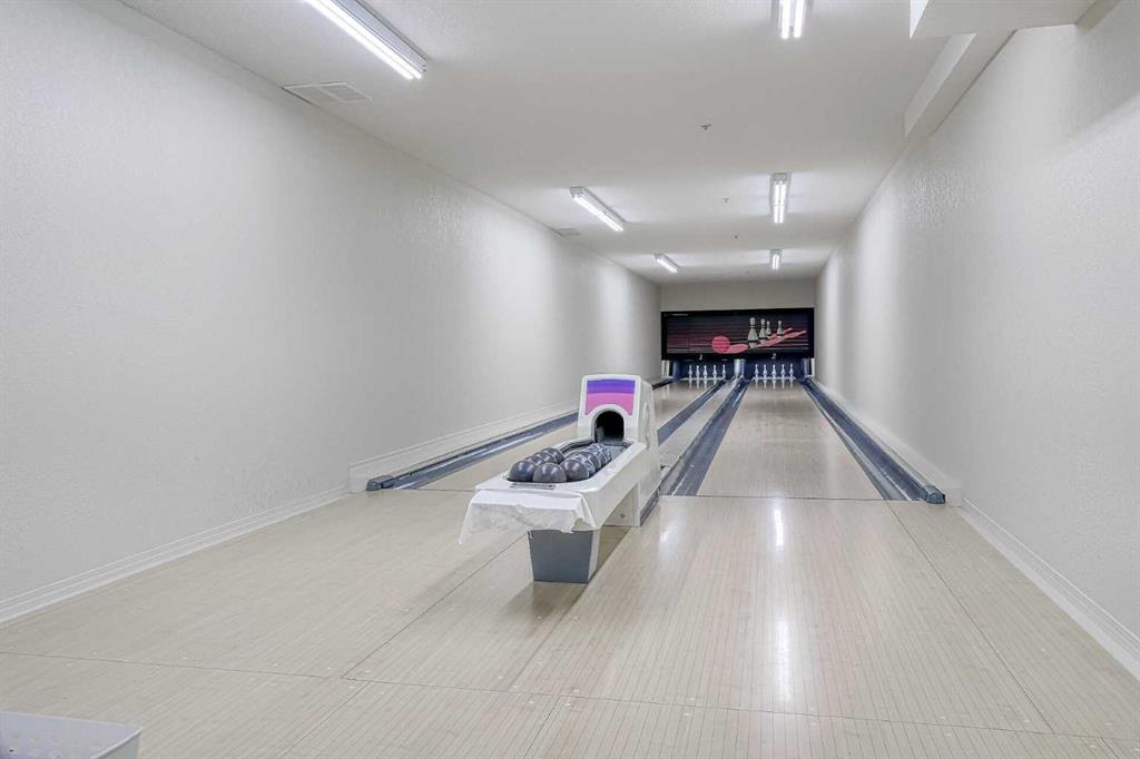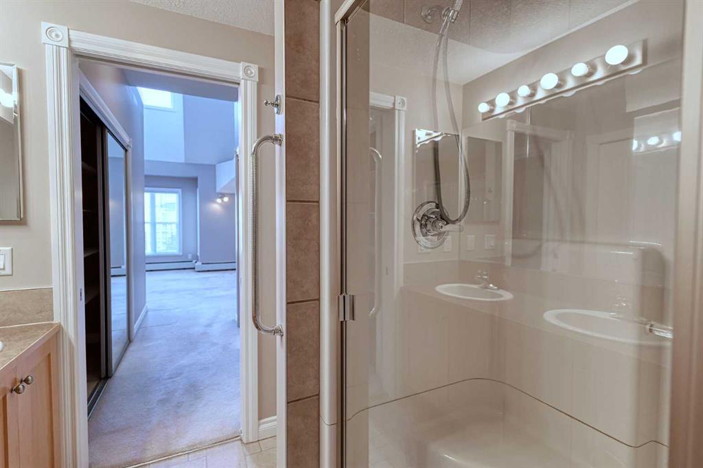 Welcome to this spacious 1,295 sq. ft. multi-level, top-floor condo in the sought-after Country Estates on the Cove, featuring TWO TITLED UNDERGROUND PARKING STALLS and air conditioning. This rare layout offers soaring two-storey ceilings in both the living room and primary bedroom, creating a bright, open feel with impressive natural light. Freshly painted throughout, the open-concept living and dining areas flow seamlessly into the kitchen with solid maple cabinetry. A combined laundry and pantry room adds excellent convenience and storage, while the balcony is accessed directly from the living room. The primary bedroom features a dramatic vaulted ceiling, walk-through closet, and private 4-piece ensuite with double vanity. A second bedroom, additional 4-piece bathroom, and an open loft overlooking the living room complete the layout. The loft includes a 2-piece bathroom and electric fireplace, ideal for a home office or flexible living space. This well-managed 40+ adult community offers exceptional amenities including a fitness centre, indoor pool, hot tub, recreation room with games and bowling alley, library, woodworking shop, guest suites, car wash bay, and assigned storage. Condo fees include all utilities. Conveniently located near shopping, parks, and walking paths, with easy access to Deerfoot Trail, Stoney Trail, transit, and the airport.