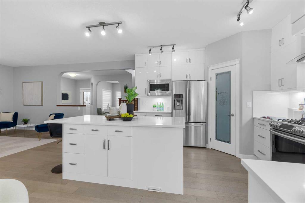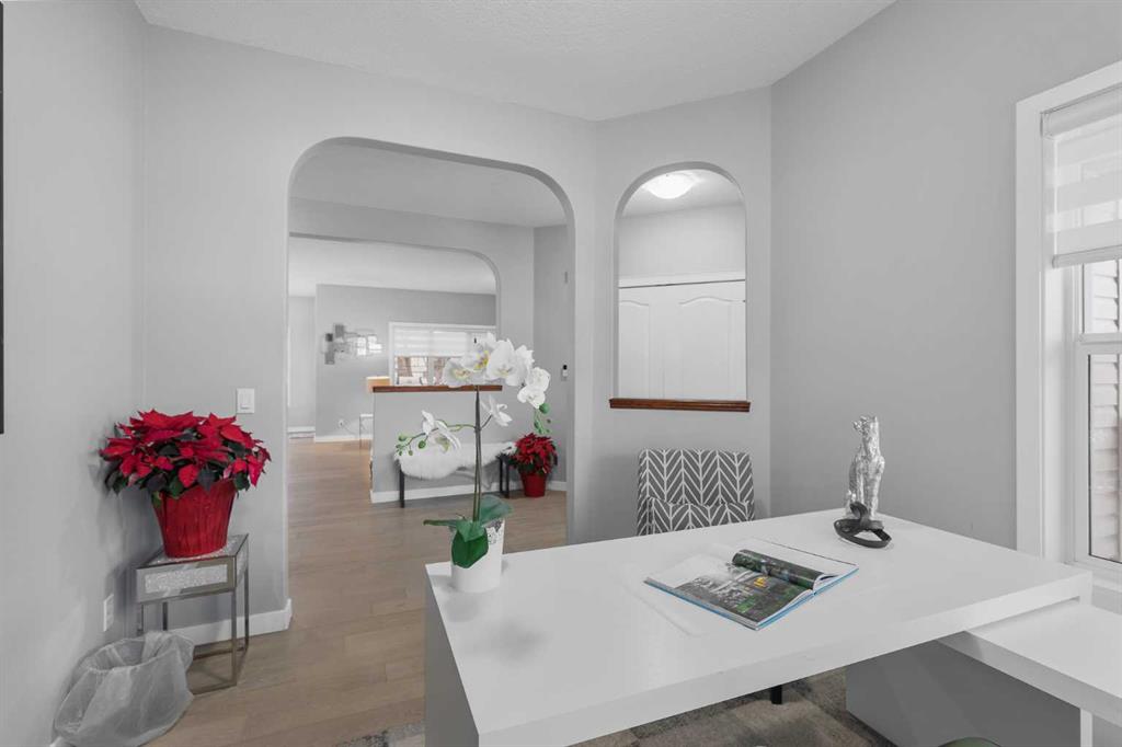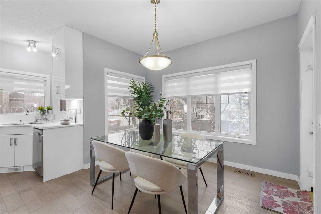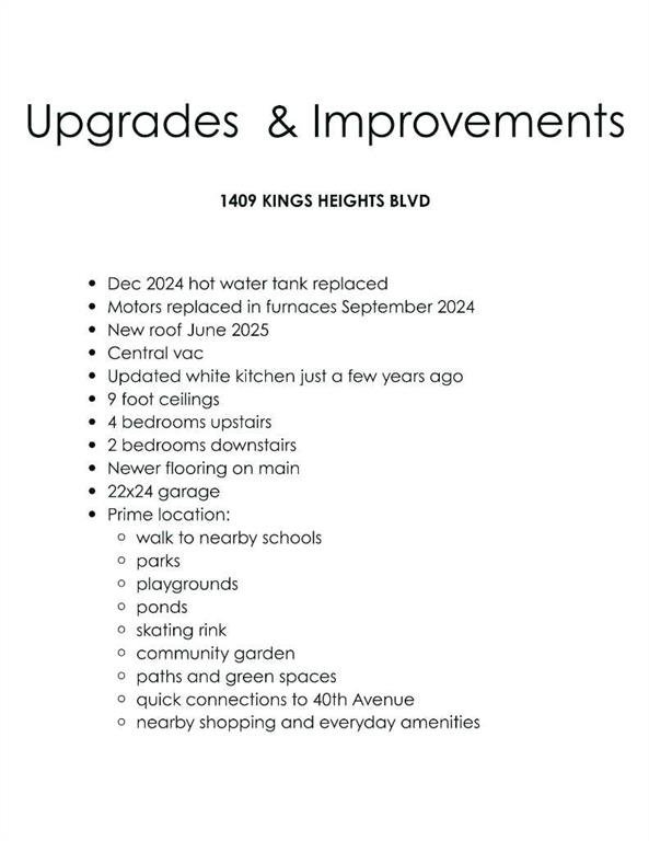 The main floor features 9’ ceilings, a dedicated office, and an open, inviting design with large windows, a gas fireplace, and a truly spacious living and dining area made for gathering. The heart of the home is the beautiful white kitchen (updated in recent years) with a gas stove, timeless finishes, and plenty of room to cook and connect. You’ll also appreciate the updated main-floor flooring completed within the last few years.