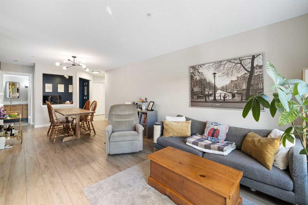 Step into comfort and convenience with this inviting 1-bedroom + den, 1-bathroom condo in the sought-after Trafalgar House, perfectly situated in Calgary’s well-kept community of Lincoln Park. Whether you’re a first-time buyer, an investor, or looking for a home close to Mount Royal University, this bright and well-designed corner unit checks all the boxes. Located on the main floor, this home offers a practical layout that balances space and style. The west-facing patio extends your living area outdoors, with a lovely courtyard view that brings a sense of calm right to your doorstep. Inside, the maple-inspired kitchen has everything you need to feel at home—plenty of cabinetry, generous counter space, and recent updates including a modern backsplash, stove, and dishwasher. The open-concept design connects the kitchen to a cozy dining nook and a spacious living room, complete with a welcoming ivory fireplace that creates the perfect spot to unwind or entertain. The bedroom is thoughtfully sized, featuring a walk-in closet with abundant storage. You’ll also find a bonus office area, ideal for working from home or as an extra storage space to keep things organized. Practical features include in-suite laundry, durable tile and laminate flooring, and heated underground titled parking. The building itself offers plenty of extras, including a fitness centre, party room, visitor parking, a car wash bay, and a storage locker for added convenience. Living here means having everyday essentials at your fingertips. You’re within walking distance of Mount Royal University, close to public transit, and surrounded by a great selection of restaurants, coffee shops, and amenities. Fresh, functional, and move-in ready, this condo is a smart choice for students, young professionals, parents helping kids into their first home, or anyone looking for an easy-to-maintain space in a well-run building. All that’s left to do is move in and make it yours.