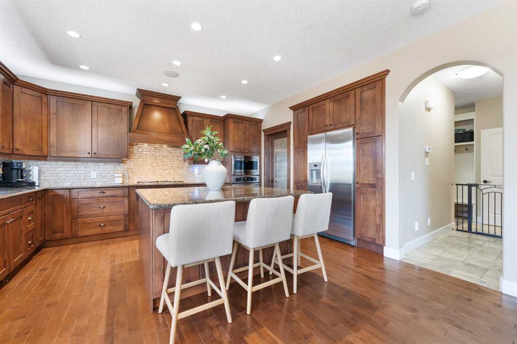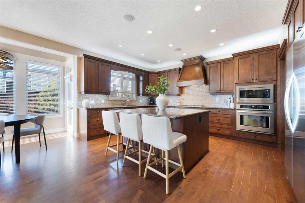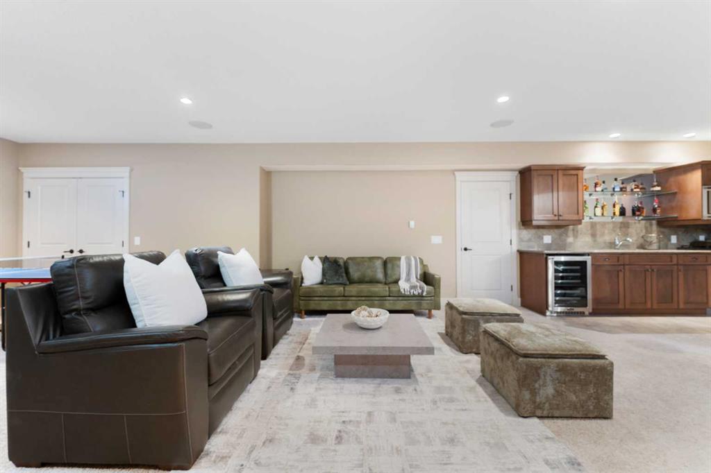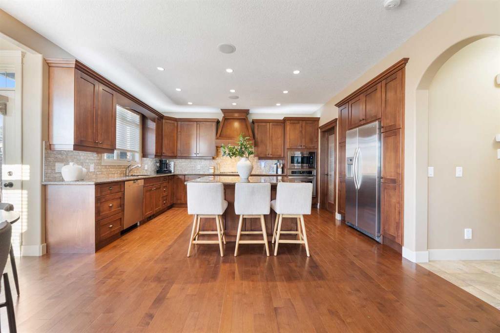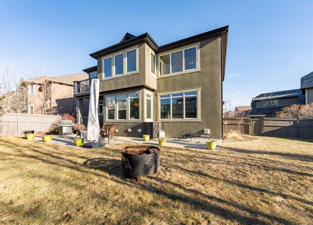 Rare Offering. Nestled in the prestigious community of Aspen Estates, this exquisite estate home blends timeless elegance with modern luxury and exceptional functionality. Situated on a massive west-facing reverse pie lot in a quiet cul-de-sac, this immaculate, original-owner home offers mountain views, privacy, and a sun-drenched backyard—perfect for family living and entertaining. Built by Homes By Us, this residence showcases a dream floorplan where functionality meets refined luxury. From the moment you step inside, you’re greeted by soaring two-storey ceilings in the foyer and an abundance of natural light spanning the entire back of the home through expansive windows. The open-concept main floor is anchored by a truly impressive gourmet kitchen, the heart of the home. Featuring a massive central island, abundant storage, and seamless flow into both a walk-through pantry and a separate pantry room, this space is designed for busy families and effortless hosting. The kitchen opens beautifully into the spacious breakfast nook and family room, highlighted by a focal fireplace and custom built-ins. A large formal dining room, complete with French doors, also functions perfectly as a private home office. Completing the main level is a massive mudroom off the garage. Upstairs, you’re immediately drawn into the bright and inviting bonus room, capturing mountain views to the south and west. The primary suite is a true retreat, featuring a luxurious five-piece ensuite with a corner jetted tub, dual sinks, a glass-enclosed shower and a large walk-in closet with built-in dresser and shelving. Step outside to your private owner’s balcony and take in the views. Two additional spacious bedrooms share a Jack-and-Jill bathroom, while the dream laundry room offers extensive cabinetry and storage. The fully developed basement provides exquisitely finished living space, including a large media and recreation room with a second cozy fireplace and wet bar. Down the hall you’ll find a full bathroom, home gym, and a generous fourth bedroom—ideal for guests or growing families. Additional highlights include two high-efficiency furnaces (cleaned January 2026), air conditioning, carpets cleaned January 2026, a fully landscaped yard, an oversized garage, and a home that has been meticulously cared for from day one. The sense of community is exceptional, with amazing neighbours adding to the appeal. This immaculate home on a rare oversized corner reverse-pie lot offers the added bonus of no sidewalks to shovel and is walking distance to Aspen Landing, the C-Train, multiple parks, Westside Recreation Centre, and top-tier schools including Dr. Roberta Bondar, Rundle College, Webber Academy, and Ernest Manning High School. With easy access to Stoney Trail, downtown Calgary, and the Rocky Mountains, this exceptional property blends modern elegance with family comfort in one of the city’s most sought-after westside communities. This exceptional