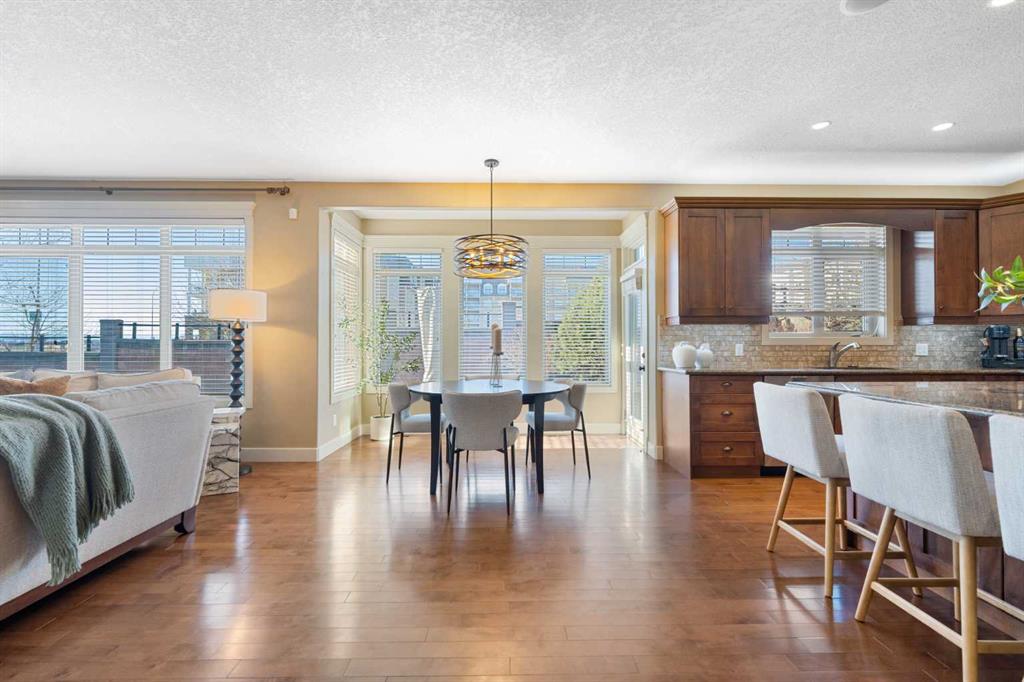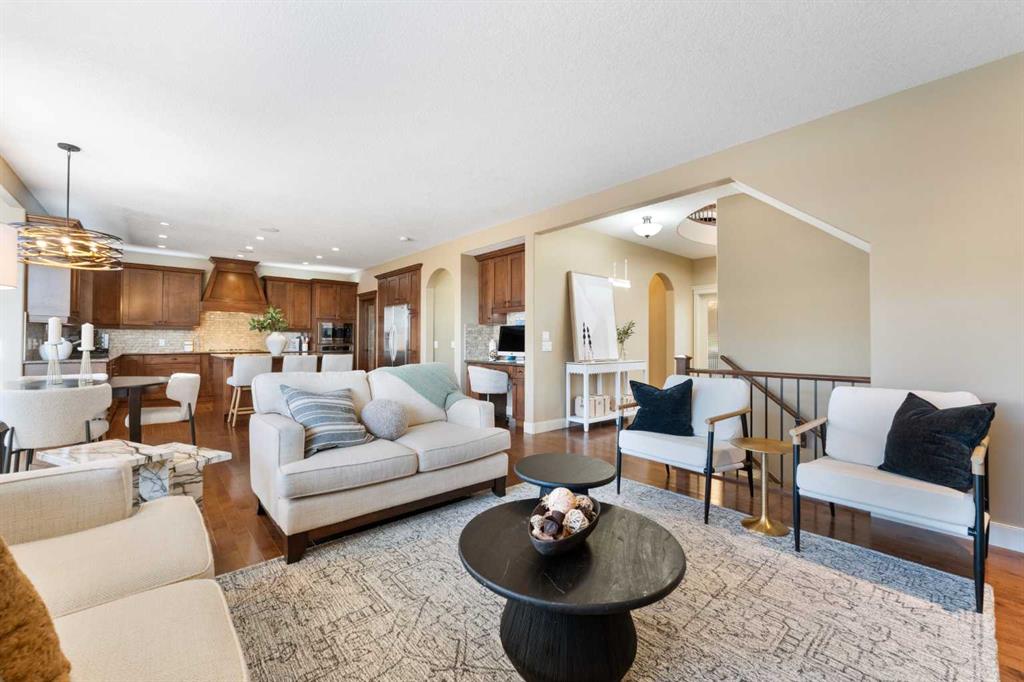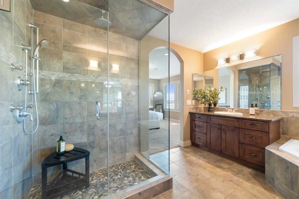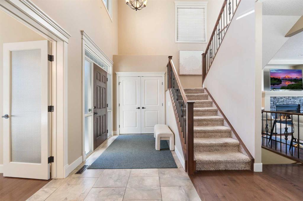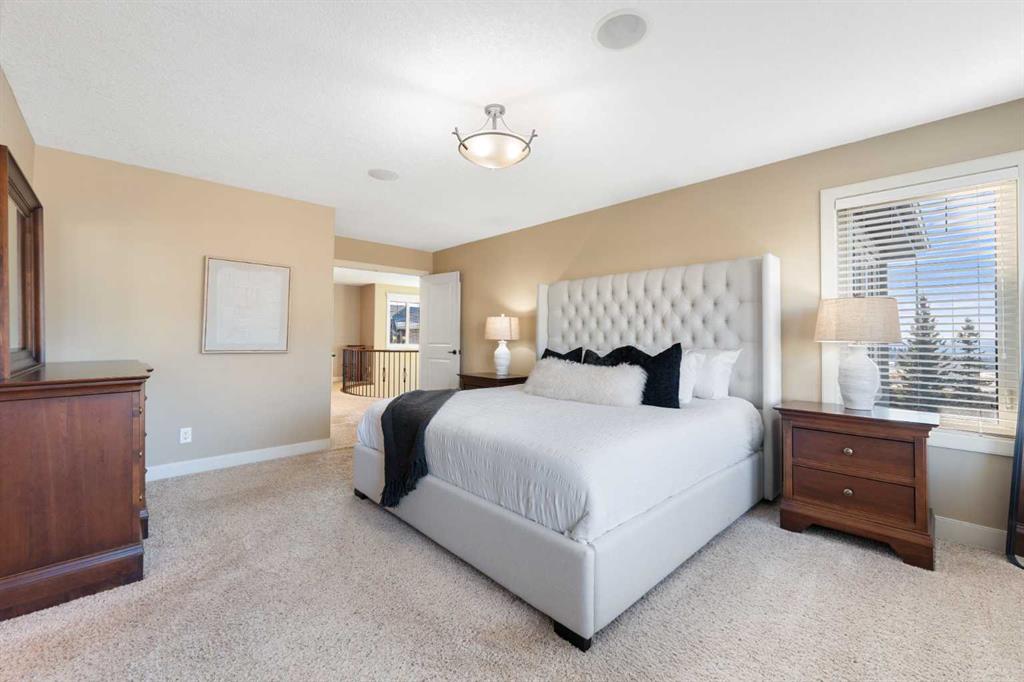 Rare Offering. Nestled in the prestigious community of Aspen Estates, this exquisite estate home blends timeless elegance with modern luxury and exceptional functionality. Situated on a massive west-facing reverse pie lot in a quiet cul-de-sac, this immaculate, original-owner home offers mountain views, privacy, and a sun-drenched backyard—perfect for family living and entertaining. Built by Homes By Us, this residence showcases a dream floorplan where functionality meets refined luxury. From the moment you step inside, you’re greeted by soaring two-storey ceilings in the foyer and an abundance of natural light spanning the entire back of the home through expansive windows. The open-concept main floor is anchored by a truly impressive gourmet kitchen, the heart of the home. Featuring a massive central island, abundant storage, and seamless flow into both a walk-through pantry and a separate pantry room, this space is designed for busy families and effortless hosting. The kitchen opens beautifully into the spacious breakfast nook and family room, highlighted by a focal fireplace and custom built-ins. A large formal dining room, complete with French doors, also functions perfectly as a private home office. Completing the main level is a massive mudroom off the garage. Upstairs, you’re immediately drawn into the bright and inviting bonus room, capturing mountain views to the south and west. The primary suite is a true retreat, featuring a luxurious five-piece ensuite with a corner jetted tub, dual sinks, a glass-enclosed shower and a large walk-in closet with built-in dresser and shelving. Step outside to your private owner’s balcony and take in the views. Two additional spacious bedrooms share a Jack-and-Jill bathroom, while the dream laundry room offers extensive cabinetry and storage. The fully developed basement provides exquisitely finished living space, including a large media and recreation room with a second cozy fireplace and wet bar. Down the hall you’ll find a full bathroom, home gym, and a generous fourth bedroom—ideal for guests or growing families. Additional highlights include two high-efficiency furnaces (cleaned January 2026), air conditioning, carpets cleaned January 2026, a fully landscaped yard, an oversized garage, and a home that has been meticulously cared for from day one. The sense of community is exceptional, with amazing neighbours adding to the appeal. This immaculate home on a rare oversized corner reverse-pie lot offers the added bonus of no sidewalks to shovel and is walking distance to Aspen Landing, the C-Train, multiple parks, Westside Recreation Centre, and top-tier schools including Dr. Roberta Bondar, Rundle College, Webber Academy, and Ernest Manning High School. With easy access to Stoney Trail, downtown Calgary, and the Rocky Mountains, this exceptional property blends modern elegance with family comfort in one of the city’s most sought-after westside communities. This exceptional