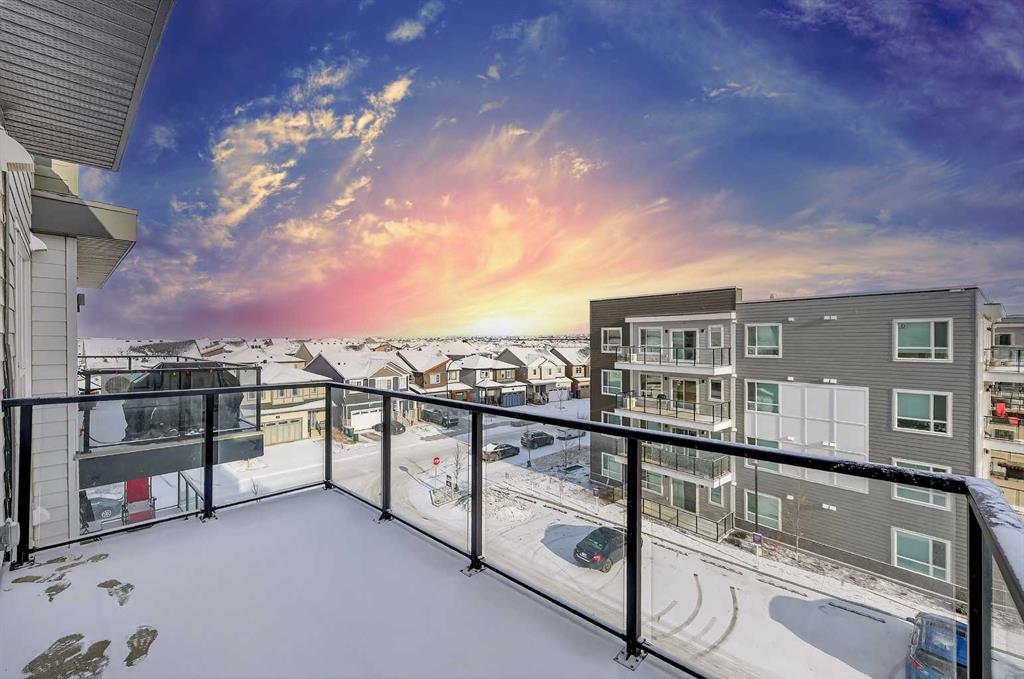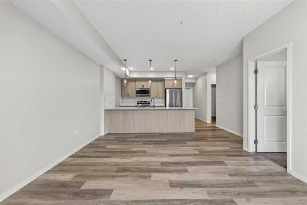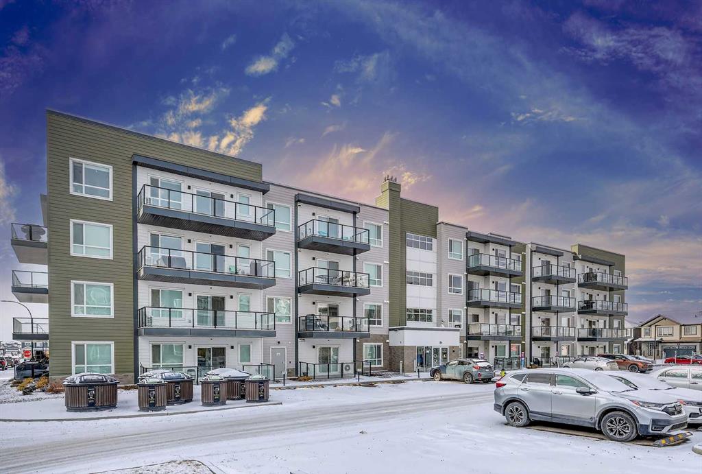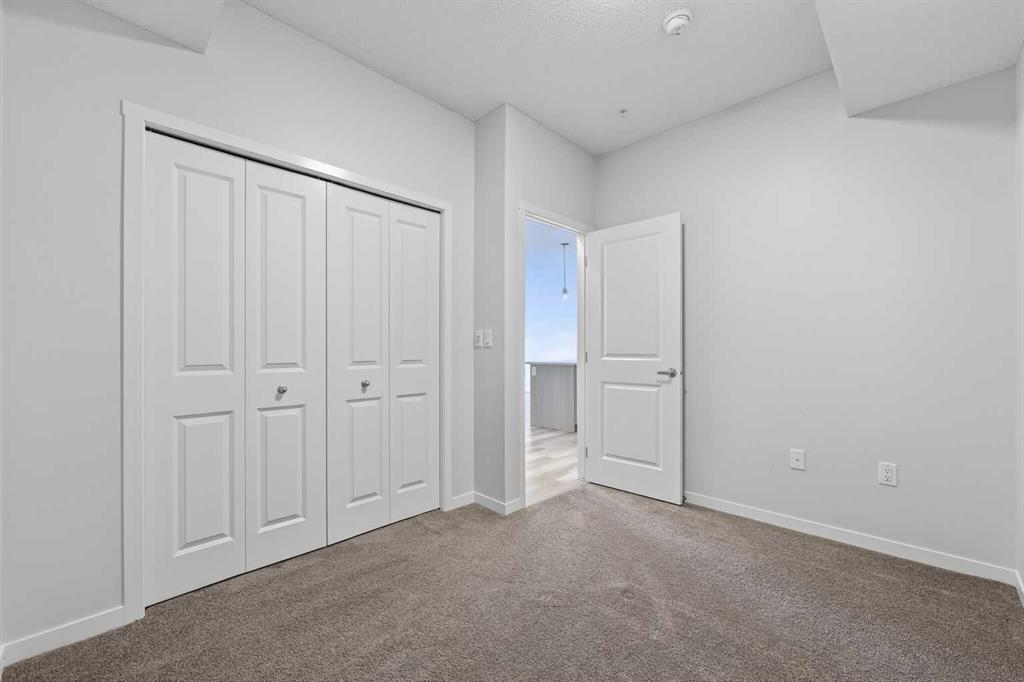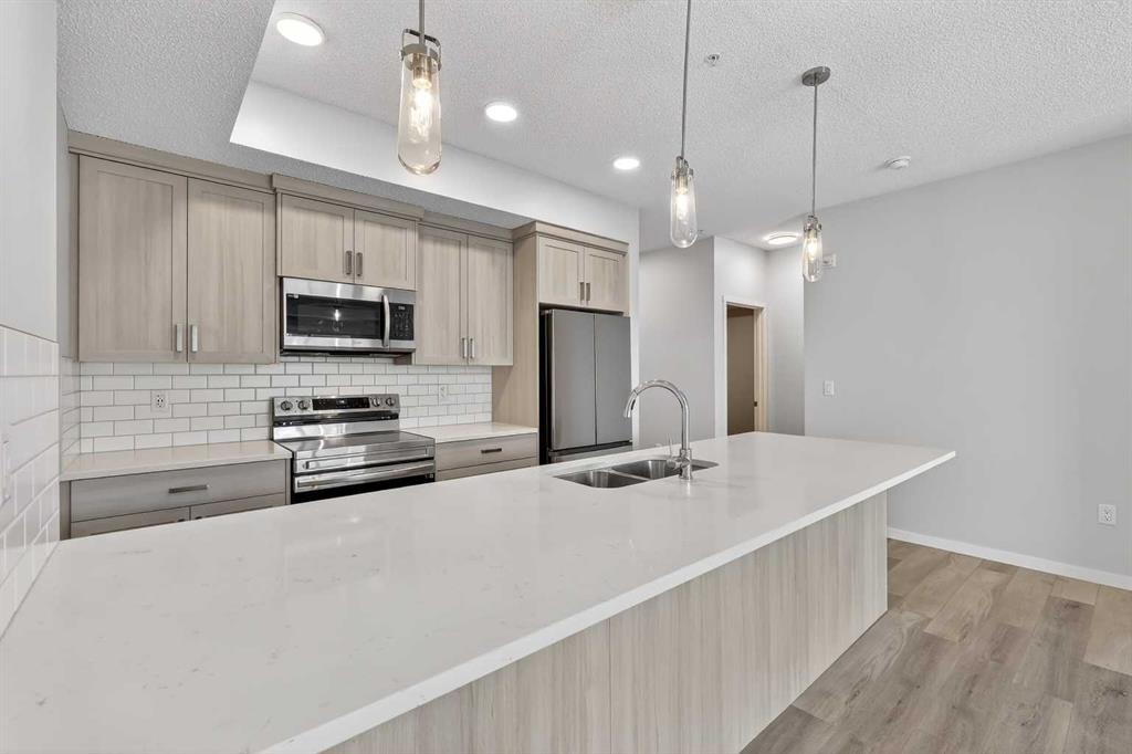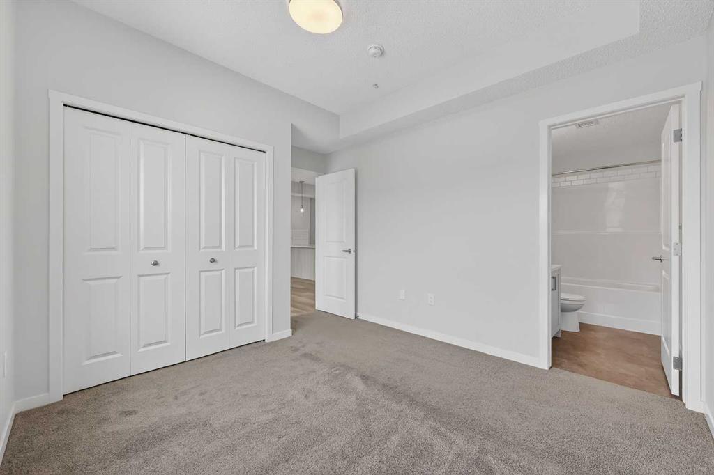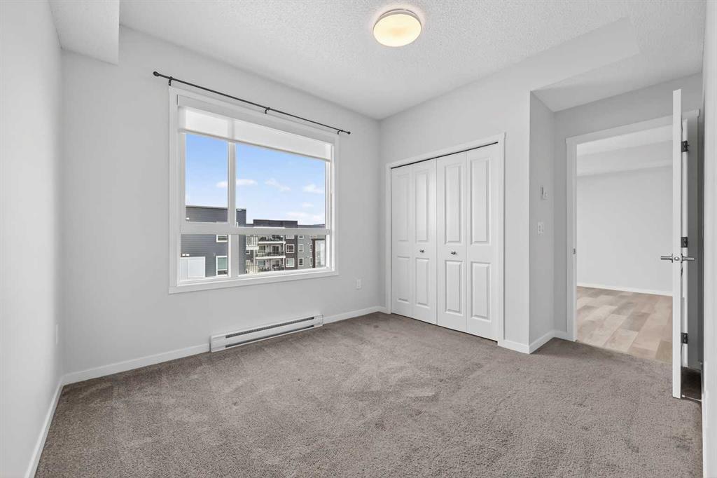 Welcome to this modern fourth-floor condo in the growing community of Carrington, built by Cedarglen in 2024. This bright and thoughtfully designed 2 bedroom, 2 bathroom unit offers approximately 780 sqft of well-used living space, ideal for first-time buyers, downsizers, or anyone looking for a low-maintenance lifestyle in a newer building. The open-concept layout features a stylish kitchen with quartz countertops, stainless steel appliances, ample cabinetry, and a large island that flows seamlessly into the living area. Large windows bring in plenty of natural light and lead out to an east-facing balcony, perfect for enjoying morning sun and fresh air with a bit more privacy and elevation than lower-level units. The primary bedroom includes a full ensuite and generous closet space, while the second bedroom is well-sized and conveniently located near the second full bathroom, making it ideal for guests, a home office, or roommates. Neutral finishes throughout make the space feel clean, modern, and easy to personalize. Located in a well-planned new community with easy access to parks, pathways, shopping, and major routes, this unit offers a great balance of comfort, convenience, and value in northwest Calgary.