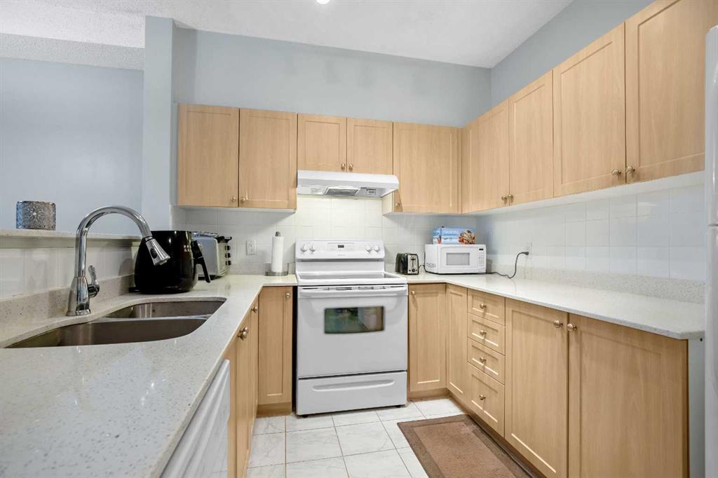 Move-in ready and showing excellent, this renovated top-floor unit is located in a secure building with elevator access and offers low condo fees that include all utilities. The open-concept layout features a spacious living room and kitchen, with sliding patio doors leading to a good-sized, southwest-facing covered balcony—ideal for relaxing or entertaining. The unit includes a large bedroom, in-suite laundry with a 2025 washer and dryer, assigned surface parking, and the added benefit of no unit below. Conveniently situated close to bus routes, schools, shopping, LRT, and the Genesis Centre. Very easy to show and a must-see property.