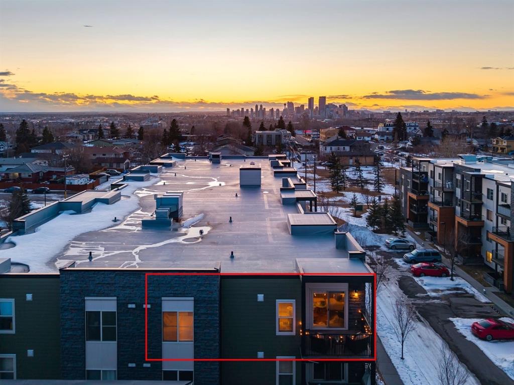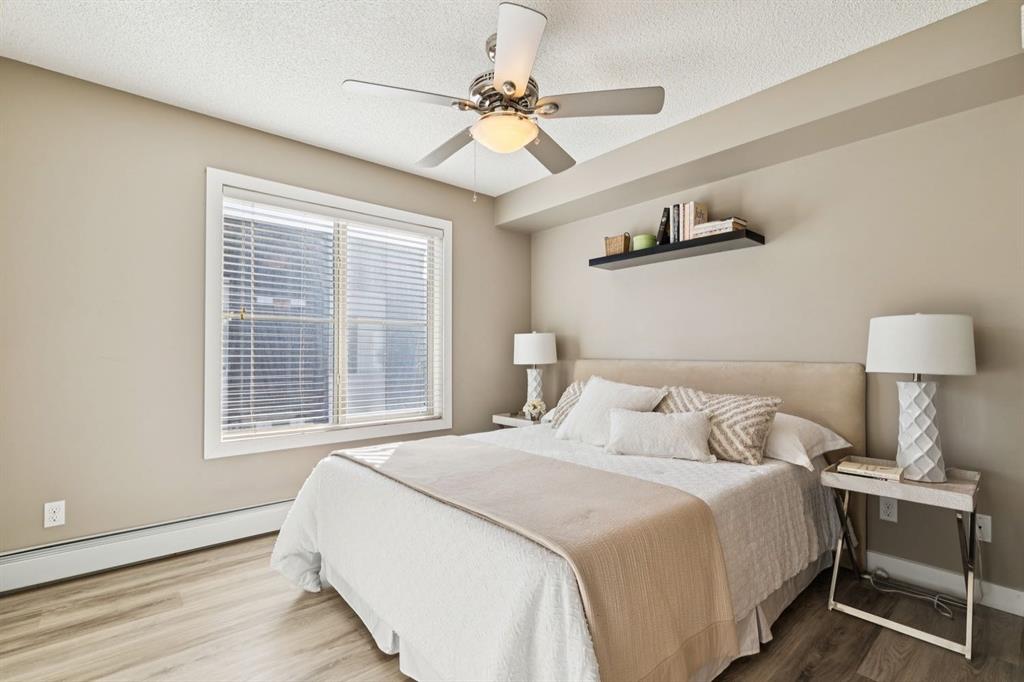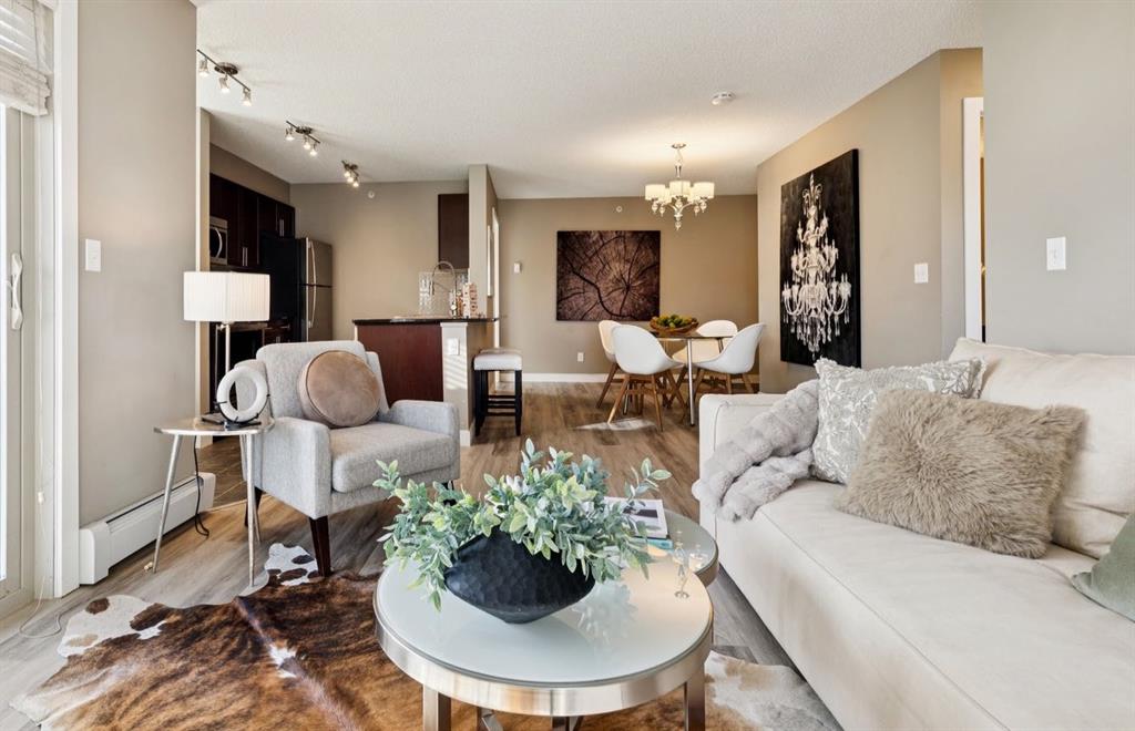 TOP FLOOR CORNER UNIT | 2 BED + DEN AREA | 2 FULL BATHS | GRANITE COUNTERS | STAINLESS STEEL APPLIANCES | BRAND NEW VINYL PLANK FLOORING | IN-SUITE LAUNDRY | BRIGHT NE CORNER DECK | TITLED UNDERGROUND PARKING | BUYER TO CHOOSE PAINT COLOUR, SELLER TO PAY FOR THE UNIT TO BE PROFESSIONALLY REPAINTED PRIOR TO CLOSING DAY | ORIGINAL OWNER & OWNER OCCUPIED SINCE BUILT | 7 MINUTES TO DOWNTOWN | Welcome to Albert Park Station – This very quiet and private unit offers two bedrooms and two bathrooms with an open floorplan on the NE corner of the 1000 Block, with a lot of light and space! (See notes under photographs) As an end unit, you will notice the spacious and airy feel as soon as you walk into the large entry and nook space perfect for a home office, computer, work or study area. The large dining space and breakfast bar make seating options perfect for you and your guests to enjoy dining, snacks and beverages. The bright living room walks out to the large corner deck offering views of the hillside and privacy to enjoy that glass of wine at the end of the day. The two bedrooms are separated by the living space, perfect for a family, guests or a roommate and the primary suite features an ensuite bath and walk-through closet! Additional perks include in-suite laundry and storage space, titled heated underground parking ideally located within steps of the door to the elevator. With proximity to parks, playgrounds, the Bow River, shopping, schools and many transit options, this unit offers fantastic value. Oh also!! It is Pet-friendly up to 15kg so bring your furry friend! Condo fees are only $517.14 and include all utilities except for electricity, internet or cable! This is a home you will be happy and proud to gather your friends and family in. Call your favourite Realtor to view! There will be a ONE-HOUR ONLY Open House hosted on Saturday, March 22 between 2-3pm!