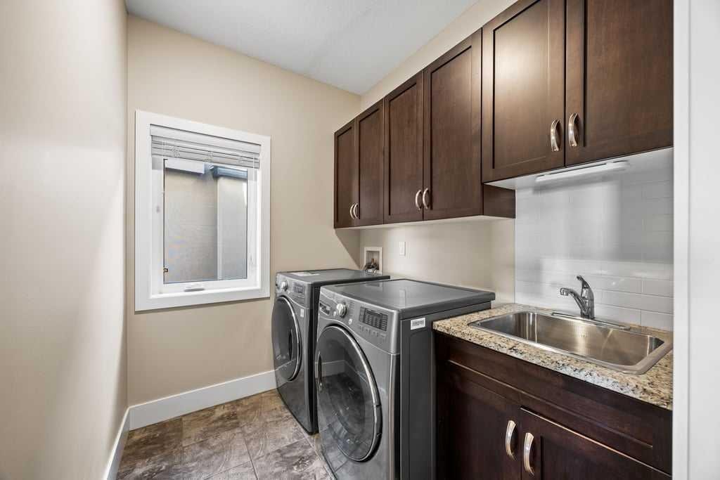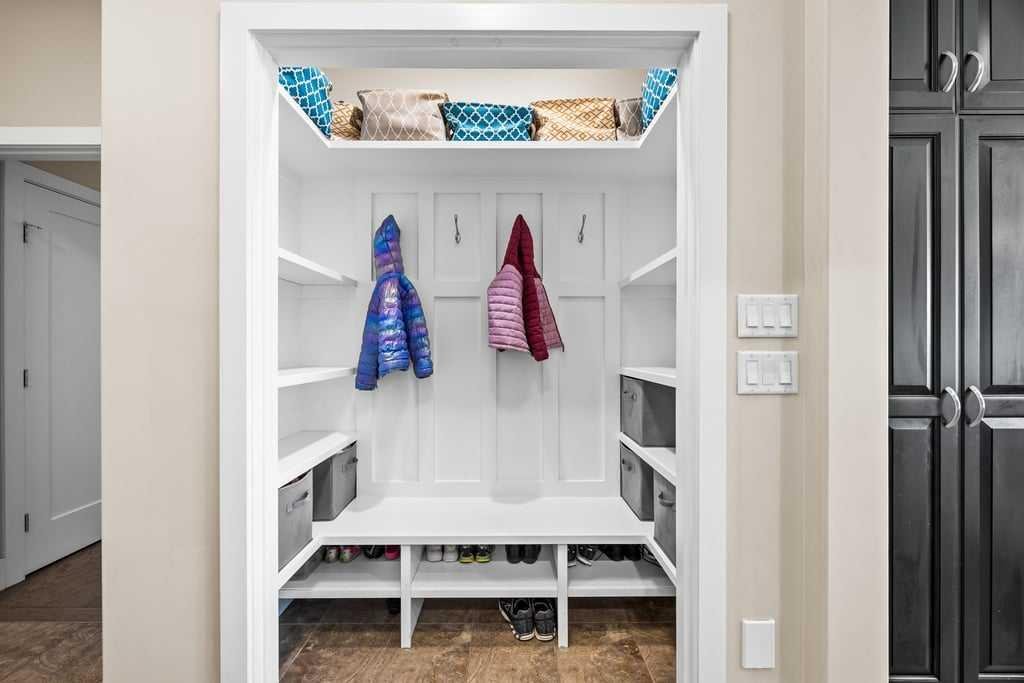 Practical touches make everyday living easy, including a well-designed mudroom off the oversized double attached heated garage, main floor laundry, and thoughtful storage throughout. The garage also features approximately 200 sq ft of overhead shelving for excellent organization.
