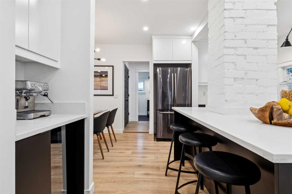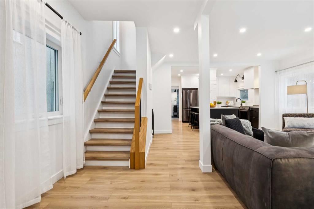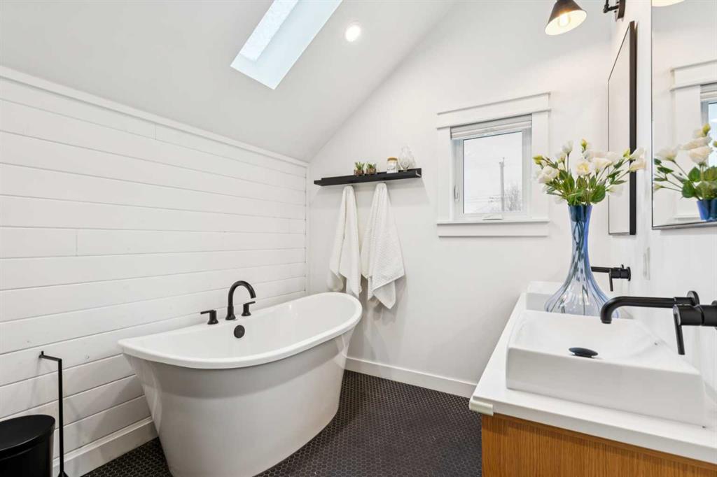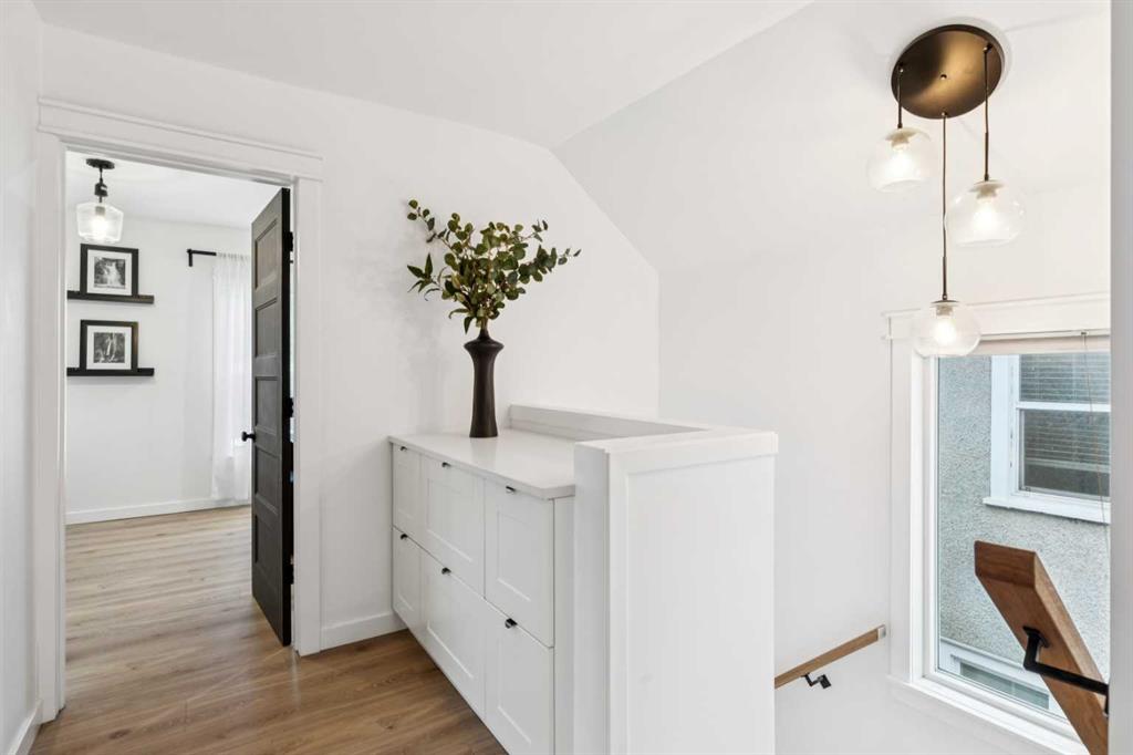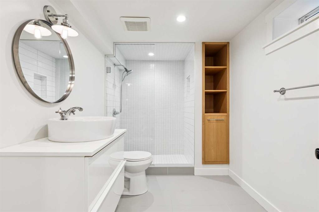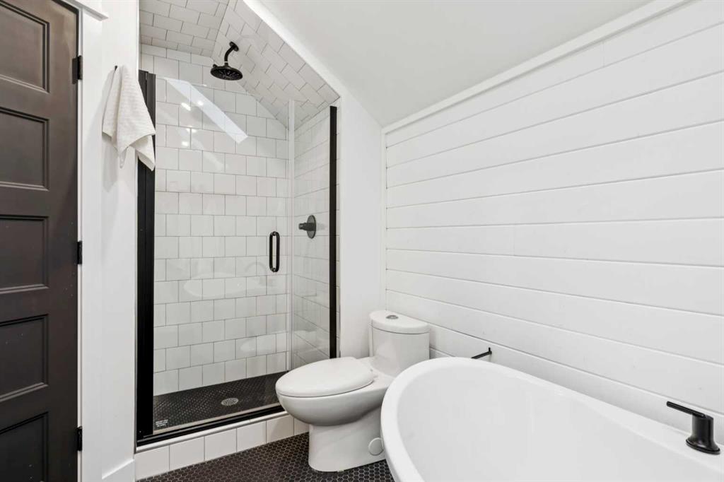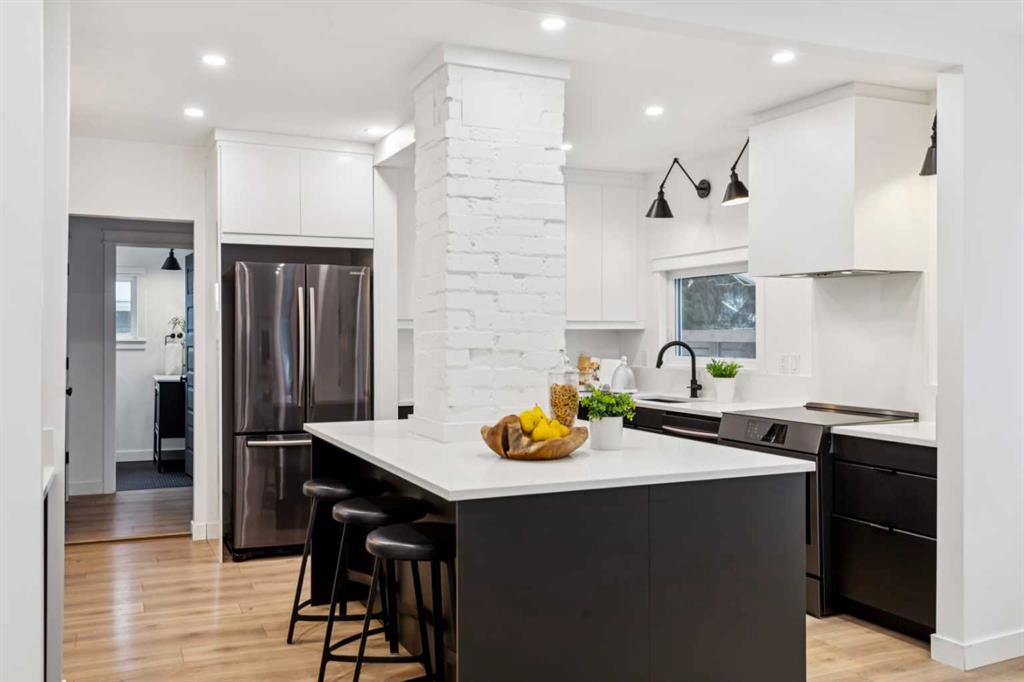 OPEN HOUSE SUNDAY DEC 7th 1-3pm. BEAUTIFULLY RENOVATED CHARACTER HOME in a cul-de-sac location across from a green space with tot lot and just steps from the Inglewood 9th Avenue Village. 33’ wide lot. Thoughtfully modernized, the home perfectly blends original charm with modern comfort, safety, and efficiency. Also features a TRIPLE GARAGE and a LEGAL SUITE. Major updates in recent years include new electrical, mechanical, and plumbing systems, a new roof and all new windows and doors in both the house and garage. The front foyer welcomes you with built-in seating, storage and a glass door to the main hall. Sunlight flows throughout the comfortable and easy-to-enjoy open-plan living spaces. The inviting living room encourages relaxation around the electric fireplace and TV with a custom media cabinet providing discreet storage for books, games, and toys. The gorgeous kitchen is designed for everyday living and entertaining family and friends. It showcases sparkling quartz counters and backsplash and black stainless-steel appliances with extensive cabinetry and workspace. The large island doubles as a breakfast bar and incorporates the home’s original brick chimney for a touch of history. Completing the main level are a luxurious bath with shower, a convenient laundry room with storage, and a charming under-stair nook—ideal for a kids’ play space or cozy pet corner. Upstairs, you’ll find three bright and spacious bedrooms, including the primary retreat with room for a king bed, dual walk-in closets and peaceful park views. The stunning 5-piece bathroom includes heated floors, a skylight, a double vanity, a freestanding tub and a separate walk-in shower. The legal basement suite offers flexibility—use it as additional family living space or for rental income. It features its own entrance, Roxul soundproofing insulation and a separate heating system. Note the large living room with TV, bright kitchen with stainless appliances (gas stove and “farmhouse” sink), bedroom and stylish bathroom with in-floor heating. An HRV unit together with the electric heat keeps the space fresh and comfortable. The private, fully fenced backyard is flat with mature landscaping. The insulated and heated triple garage offers ample workspace thanks to built-in shelving. Neighbourhood amenities include tennis courts, scenic river pathways, the bird sanctuary, and, of course, the unique collection of shops, restaurants, cafes, fitness and services of the 9th Avenue Village. Schools and transit are also close by.