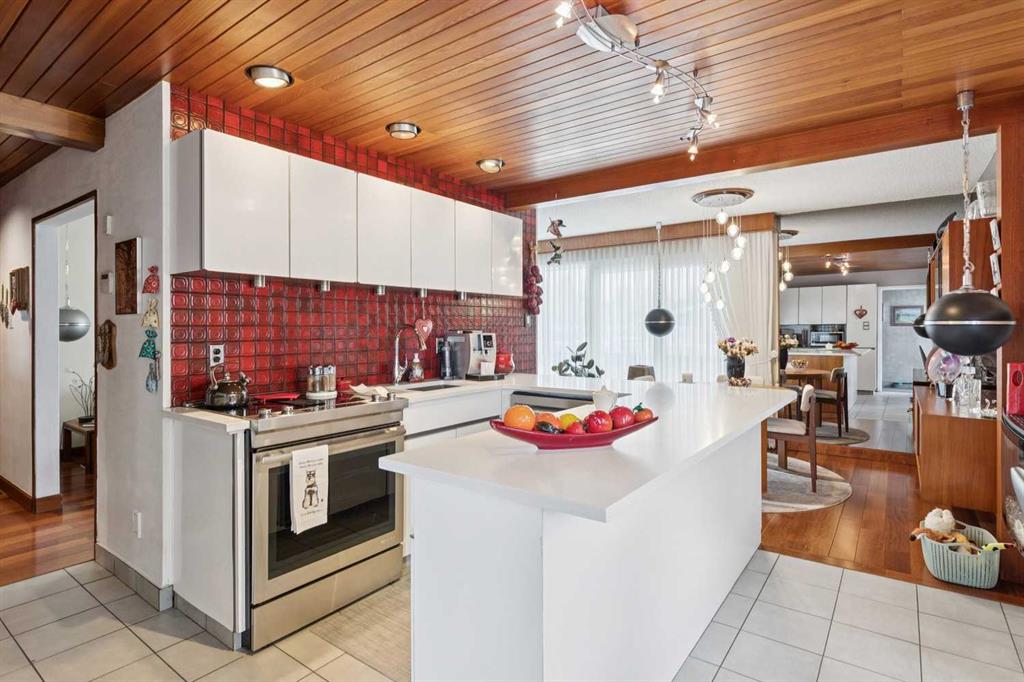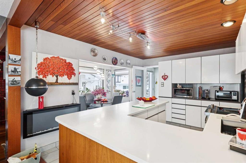 Welcome to this impeccably maintained bungalow in Calgary’s Southwood community—where timeless mid-century design meets thoughtful modern updates and truly exceptional outdoor living. Set on a prominent corner lot, this 1,100 sq ft home has been lovingly cared for by the same owner for over 40 years. The pride of ownership is undeniable, beginning with the extraordinary landscaping—lush, layered gardens, mature trees, and beautifully designed patio spaces that create a private, sun-soaked retreat in the south-facing backyard. Inside, the home offers a rare and intentional blend of preserved mid-century character and modern comfort. Rich wood ceilings, clean architectural lines, and statement design elements have been carefully maintained, while key updates—including the kitchen, flooring, and windows —enhance everyday living without compromising the home’s original charm. The kitchen is both functional and striking, featuring a large island, updated cabinetry, quartz counters and a bold design aesthetic that connects seamlessly to the dining and living spaces—perfect for gathering and entertaining. The main floor features three bedrooms, including a primary suite with a 2-piece ensuite and a large picture window overlooking the backyard oasis—bringing the outdoors in. The fully developed basement expands your living space with a massive recreation room, a 3-piece bathroom, and a second full kitchen—ideal for canning, preserving, or hosting larger gatherings. Ample storage is found throughout. Additional updates include a furnace and central A/C (2015), offering year-round comfort. Located with convenient access to major routes, this home remains remarkably quiet and peaceful—both inside and in the garden—offering a unique balance of accessibility and tranquility. A rare opportunity to own a home where design, care, and outdoor beauty come together in one of Calgary’ established southwest communities.