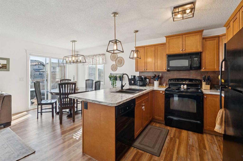 You’ll immediately notice the fresh feel throughout, with new paint, newer carpet and flooring, and upgraded light fixtures creating a bright, modern vibe. The sunny south exposure fills the open-concept main floor with natural light, making it a warm and inviting space for both everyday living and entertaining. Rich-toned hardwood flooring adds a cozy touch, while the kitchen and dining area feature a breakfast bar, ample cabinetry, and easy flow for hosting family and friends.
