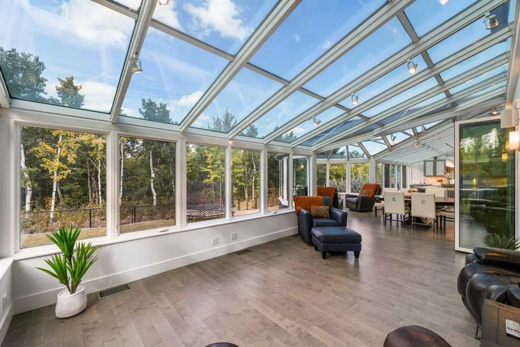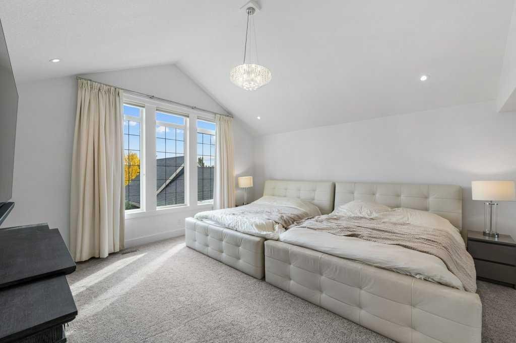 *Welcome to this extraordinary, fully renovated estate home in the prestigious community of Heritage Pointe, offering exclusive lake access and surrounded by natural forest beauty! Situated on a prime lot & backing onto a treed forest, the home has undergone a major renovation. It now features the addition of a spectacular 800 sq. ft. “entertainer’s dream” 4 season sunroom (with new foundation and its own furnace/plumbing/air conditioning) – a true showpiece created for both relaxation and entertaining! Outfitted with premium appliances, the chef’s kitchen serves large gatherings; a spacious dining room is adjacent, plus a living area for relaxation, where dual large-screen TV’s seamlessly rise from the hardwood floors – at the touch of a button! The main home’s central kitchen is renovated with new quartz counters/island, new appliances, marble backsplash, plus a newly reconfigured lighted pantry. With a living / dining room that has a new floor-to-ceiling feature “linear” fireplace, perfect ambience is createde. A stylish great room, also adjacent to the kitchen, provides built-in cabinetry with lighted accents. All new hardwood floors adorn the main level, new lighting, all solid interior doors, new carpets. A main floor office, half bath and mudroom complete the main level. The upper level currently features 4 bedrooms (could be bonus room with 3 bedrooms). The master suite showcases vaulted ceilings, a private sitting area overlooking the forest, spa-like 5 pc ensuite w/air jet tub, steam shower & large walk-in closet, heated floors! The professionally finished lower level features a 4th bedroom, bath, media area, games room w/expansive wine bar, fitness room w/cork flooring & 2nd laundry. Direct Connect networking throughout. Dual central air conditioners, gas generator and extensive solar system – serves entire home! The 4 car garages (two double garages) are separated by a breezeway. The rear yard showcases an 8 person “waterfall” mineral hot tub with an adjacent fire pit gathering area – grounds with underground sprinklers systems. Whether hosting a gathering or hosting a quiet evening, the indoor/outdoor ambience and forested views create a resort-like view year-round! Experience the best of lake living, privacy, and modern sophistication, in one of Alberta’s most sought-after communities.