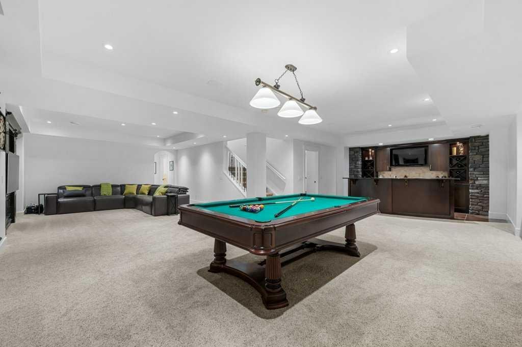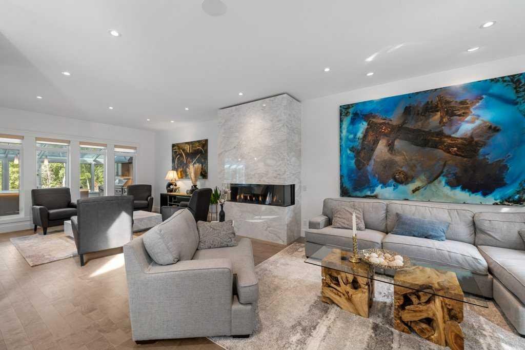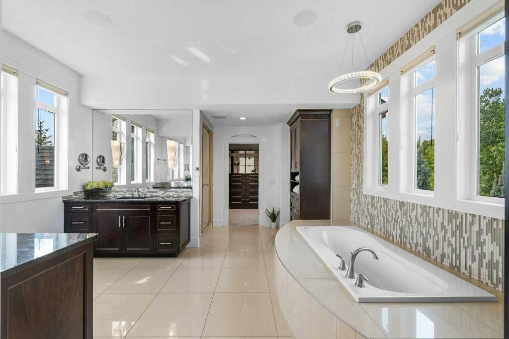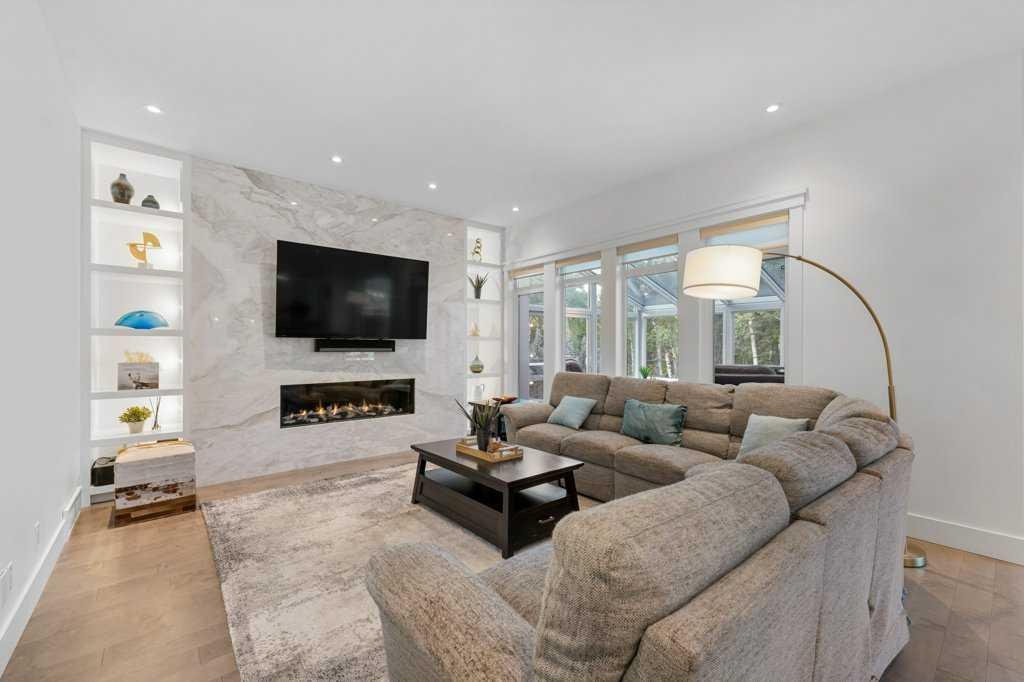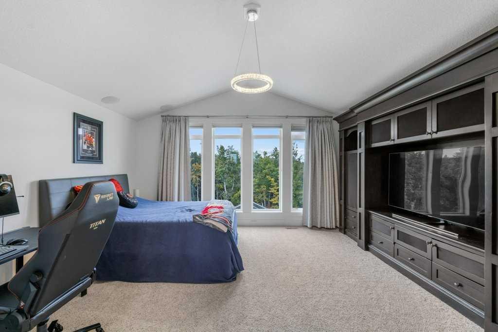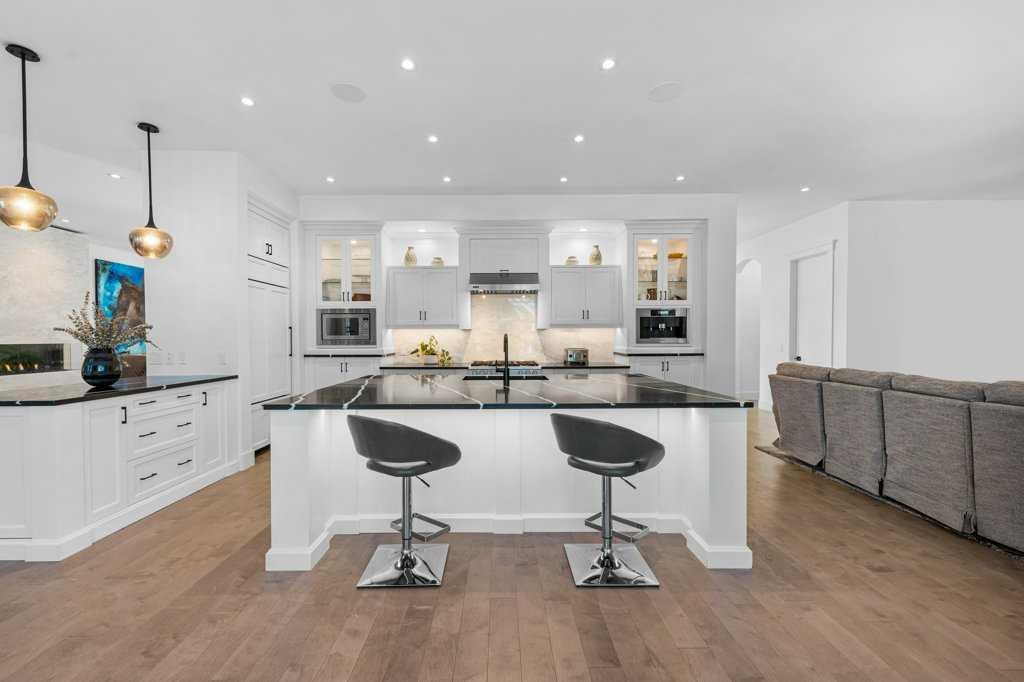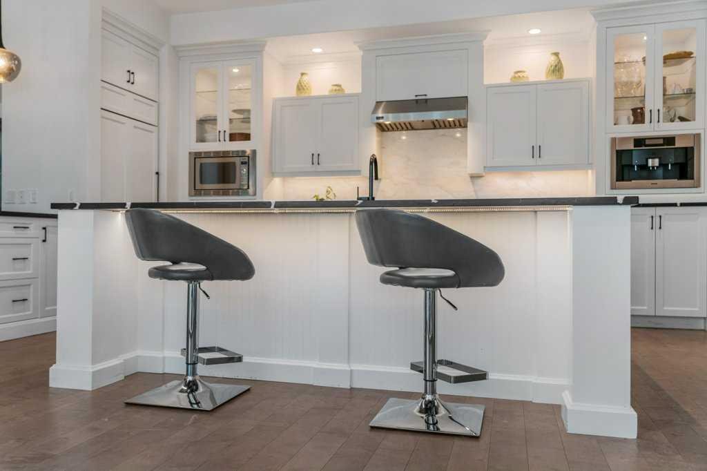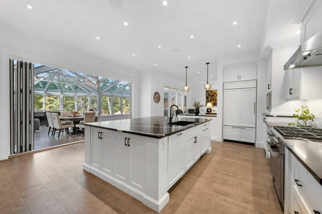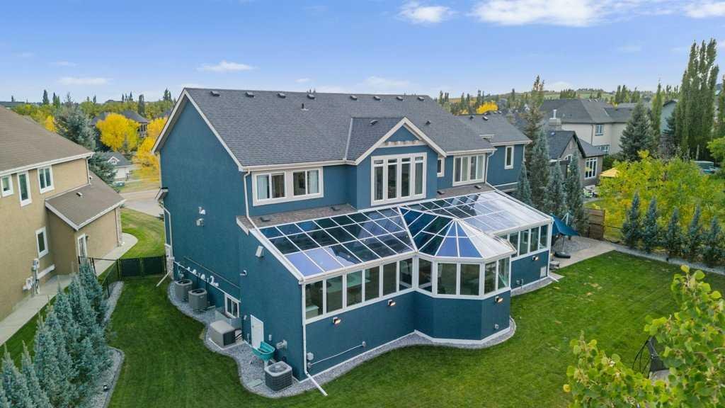 *Welcome to this extraordinary, fully renovated estate home in the prestigious community of Heritage Pointe, offering exclusive lake access and surrounded by natural forest beauty! Situated on a prime lot & backing onto a treed forest, the home has undergone a major renovation. It now features the addition of a spectacular 800 sq. ft. “entertainer’s dream” 4 season sunroom (with new foundation and its own furnace/plumbing/air conditioning) – a true showpiece created for both relaxation and entertaining! Outfitted with premium appliances, the chef’s kitchen serves large gatherings; a spacious dining room is adjacent, plus a living area for relaxation, where dual large-screen TV’s seamlessly rise from the hardwood floors – at the touch of a button! The main home’s central kitchen is renovated with new quartz counters/island, new appliances, marble backsplash, plus a newly reconfigured lighted pantry. With a living / dining room that has a new floor-to-ceiling feature “linear” fireplace, perfect ambience is createde. A stylish great room, also adjacent to the kitchen, provides built-in cabinetry with lighted accents. All new hardwood floors adorn the main level, new lighting, all solid interior doors, new carpets. A main floor office, half bath and mudroom complete the main level. The upper level currently features 4 bedrooms (could be bonus room with 3 bedrooms). The master suite showcases vaulted ceilings, a private sitting area overlooking the forest, spa-like 5 pc ensuite w/air jet tub, steam shower & large walk-in closet, heated floors! The professionally finished lower level features a 4th bedroom, bath, media area, games room w/expansive wine bar, fitness room w/cork flooring & 2nd laundry. Direct Connect networking throughout. Dual central air conditioners, gas generator and extensive solar system – serves entire home! The 4 car garages (two double garages) are separated by a breezeway. The rear yard showcases an 8 person “waterfall” mineral hot tub with an adjacent fire pit gathering area – grounds with underground sprinklers systems. Whether hosting a gathering or hosting a quiet evening, the indoor/outdoor ambience and forested views create a resort-like view year-round! Experience the best of lake living, privacy, and modern sophistication, in one of Alberta’s most sought-after communities.