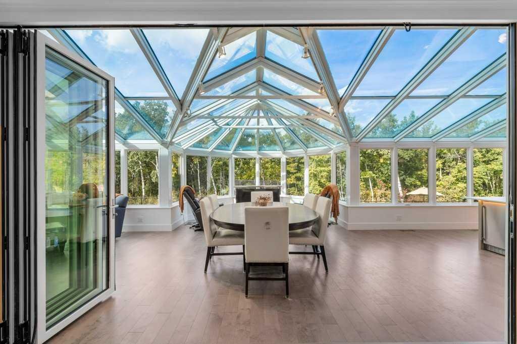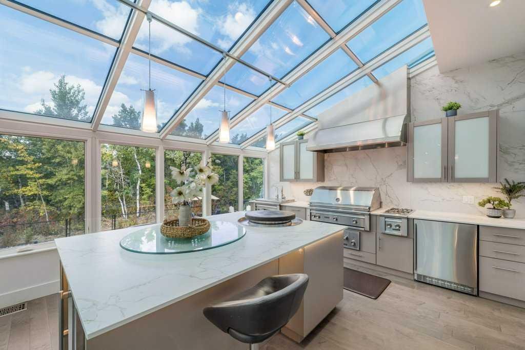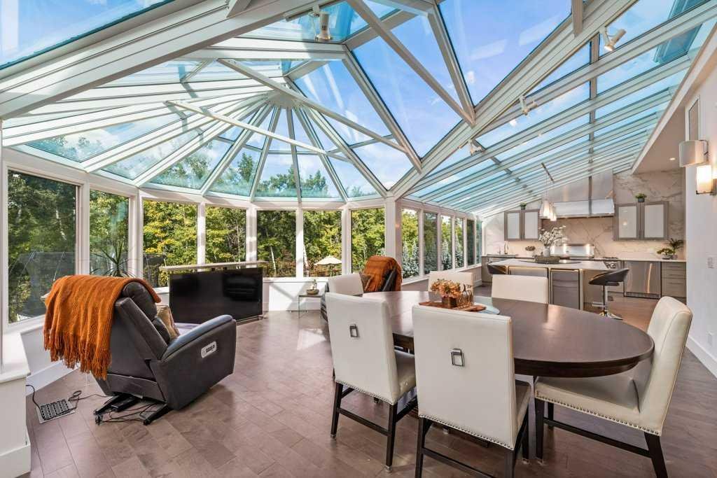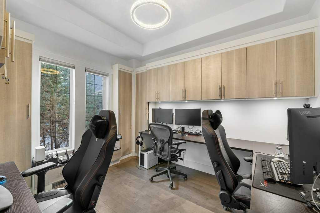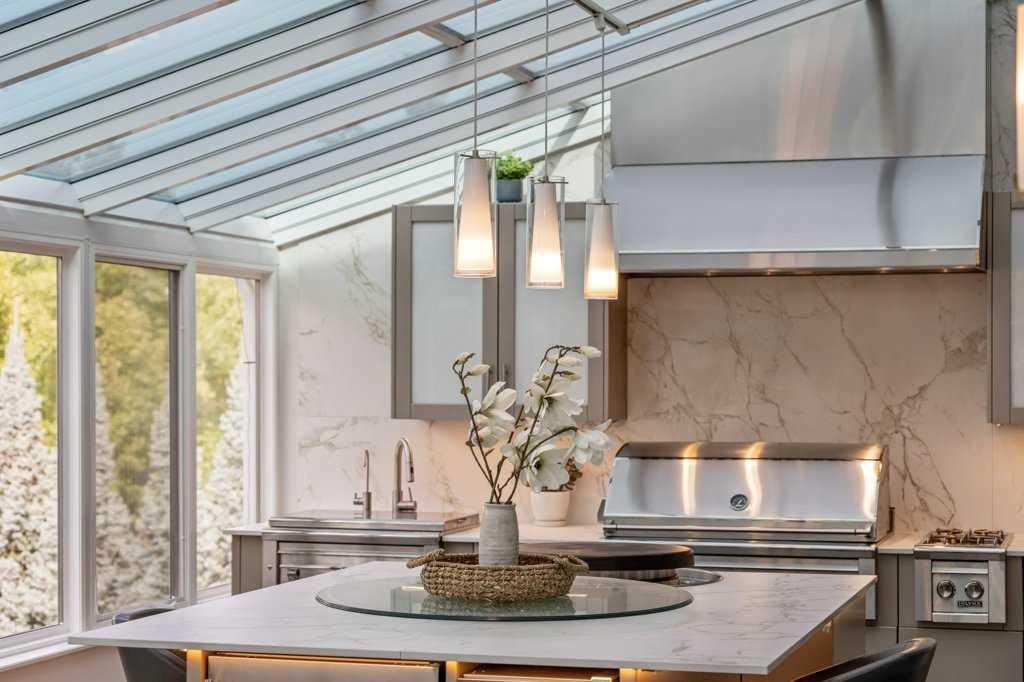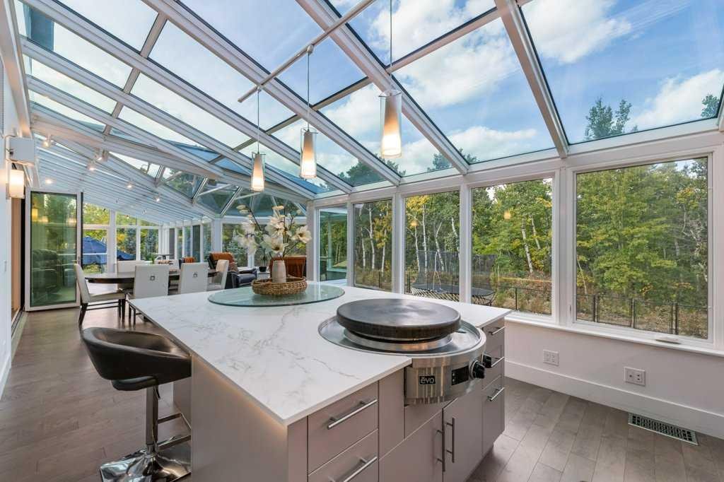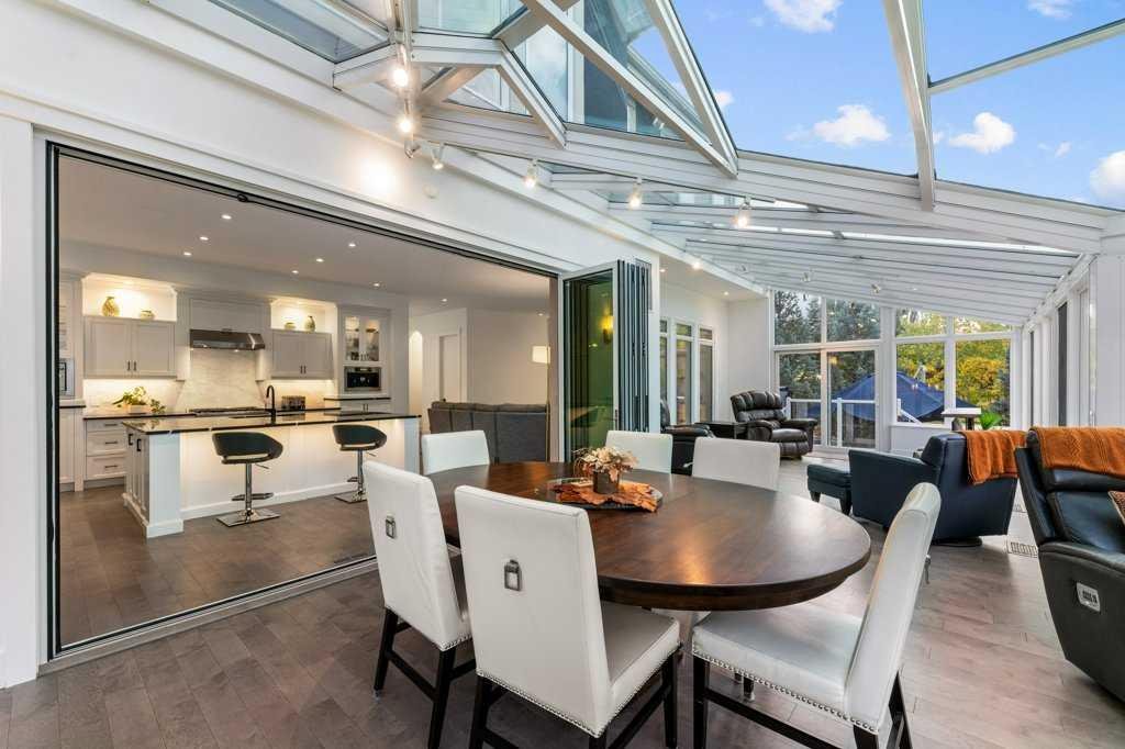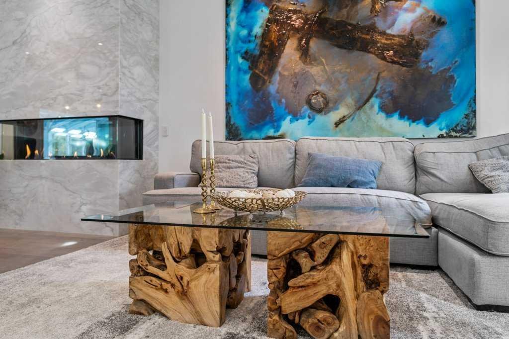 *Welcome to this extraordinary, fully renovated estate home in the prestigious community of Heritage Pointe, offering exclusive lake access and surrounded by natural forest beauty! Situated on a prime lot & backing onto a treed forest, the home has undergone a major renovation. It now features the addition of a spectacular 800 sq. ft. “entertainer’s dream” 4 season sunroom (with new foundation and its own furnace/plumbing/air conditioning) – a true showpiece created for both relaxation and entertaining! Outfitted with premium appliances, the chef’s kitchen serves large gatherings; a spacious dining room is adjacent, plus a living area for relaxation, where dual large-screen TV’s seamlessly rise from the hardwood floors – at the touch of a button! The main home’s central kitchen is renovated with new quartz counters/island, new appliances, marble backsplash, plus a newly reconfigured lighted pantry. With a living / dining room that has a new floor-to-ceiling feature “linear” fireplace, perfect ambience is createde. A stylish great room, also adjacent to the kitchen, provides built-in cabinetry with lighted accents. All new hardwood floors adorn the main level, new lighting, all solid interior doors, new carpets. A main floor office, half bath and mudroom complete the main level. The upper level currently features 4 bedrooms (could be bonus room with 3 bedrooms). The master suite showcases vaulted ceilings, a private sitting area overlooking the forest, spa-like 5 pc ensuite w/air jet tub, steam shower & large walk-in closet, heated floors! The professionally finished lower level features a 4th bedroom, bath, media area, games room w/expansive wine bar, fitness room w/cork flooring & 2nd laundry. Direct Connect networking throughout. Dual central air conditioners, gas generator and extensive solar system – serves entire home! The 4 car garages (two double garages) are separated by a breezeway. The rear yard showcases an 8 person “waterfall” mineral hot tub with an adjacent fire pit gathering area – grounds with underground sprinklers systems. Whether hosting a gathering or hosting a quiet evening, the indoor/outdoor ambience and forested views create a resort-like view year-round! Experience the best of lake living, privacy, and modern sophistication, in one of Alberta’s most sought-after communities.