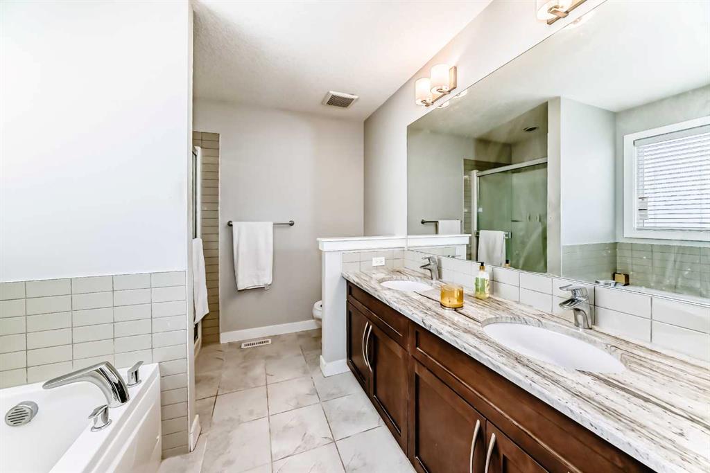 Upstairs you’ll find three well-sized bedrooms along with a bonus room that can flex however you need it—home office, kids’ hangout, or a second living space. The primary bedroom is set up with a full 5-piece ensuite, including double sinks, a soaker tub, and a separate shower.