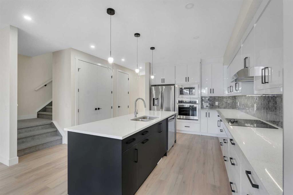 Welcome to this **brand-new, custom-built 2-storey luxury home** offering over **3,000 sq ft** of elegant living space, including a **legal 2-bedroom basement suite** perfect for extended family or rental income. This meticulously designed residence features **6 spacious bedrooms and 4.5 beautifully appointed bathrooms**, including a **main floor primary suite** for ultimate convenience. Every inch of this home showcases **premium craftsmanship and high-end finishes**, with **9 ft ceilings on all three levels**, **8 ft doors**, **vaulted ceilings**, and stunning **feature walls with fireplaces** that create warmth and sophistication throughout. The open-concept main floor centers around a **chef’s dream kitchen**, complete with a **9 ft island**, **tall custom cabinetry**, and **built-in premium appliances**—perfect for entertaining and family gatherings. Upstairs, you’ll find additional bedrooms, a **bonus room with soaring ceilings**, and access to an **upper balcony** ideal for relaxing or enjoying morning coffee. The **expansive backyard**, stretching over **40 ft deep**, provides ample outdoor space, complemented by a **covered front porch** and a **double detached garage** for convenience and storage. Designed with efficiency and comfort in mind, the home includes **two separate furnaces** ensuring optimal temperature control across all levels. Located in a **highly desirable community** with **quick access to the Calgary International Airport**, major highways, **LRT**, **schools**, **shopping**, **hospitals**, and **recreational facilities**, this property truly has it all. Move-in ready and packed with value, this home combines modern luxury, practicality, and style—an exceptional opportunity you don’t want to miss!