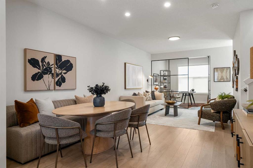 Welcome to the William by Partners Homes, a no-condo-fee townhome in the new North Calgary community of Keystone Creek. With three bedrooms, three full bathrooms, and a central bonus room, this home blends modern style, family-friendly design, and long-term value, all backed by the peace of mind of a new home warranty. The main floor begins with a versatile front flex room that works well as a home office, playroom, or hobby space. An open-concept layout connects the dining and living areas to a spacious kitchen with a large island, gas line for cooking, upgraded hood fan, and plenty of storage. A convenient full bathroom with upgraded shower option completes this floor. Upstairs, the primary suite includes a walk-in closet and ensuite with dual vanity sinks and upgraded shower. Two additional bedrooms, a full bathroom, the central bonus room, and upper-level laundry complete this floor. This home also features a side entrance, and a two-car gravel parking pad. Keystone Creek is a master-planned community in North Calgary where access to the city is at your doorstep. Residents enjoy quieter roads, family-friendly streets, and green spaces throughout. The community features pathways connected to the regional trail system, naturalized wetlands, and parks to explore. Everyday amenities are minutes away, including grocery stores, restaurants, childcare, healthcare, and more. With quick connections to CrossIron Mills, downtown Calgary, and the Calgary International Airport, Keystone Creek offers convenience and a peaceful lifestyle. Book your private showing today and see why the William is one of the most desirable new townhomes in Keystone Creek!