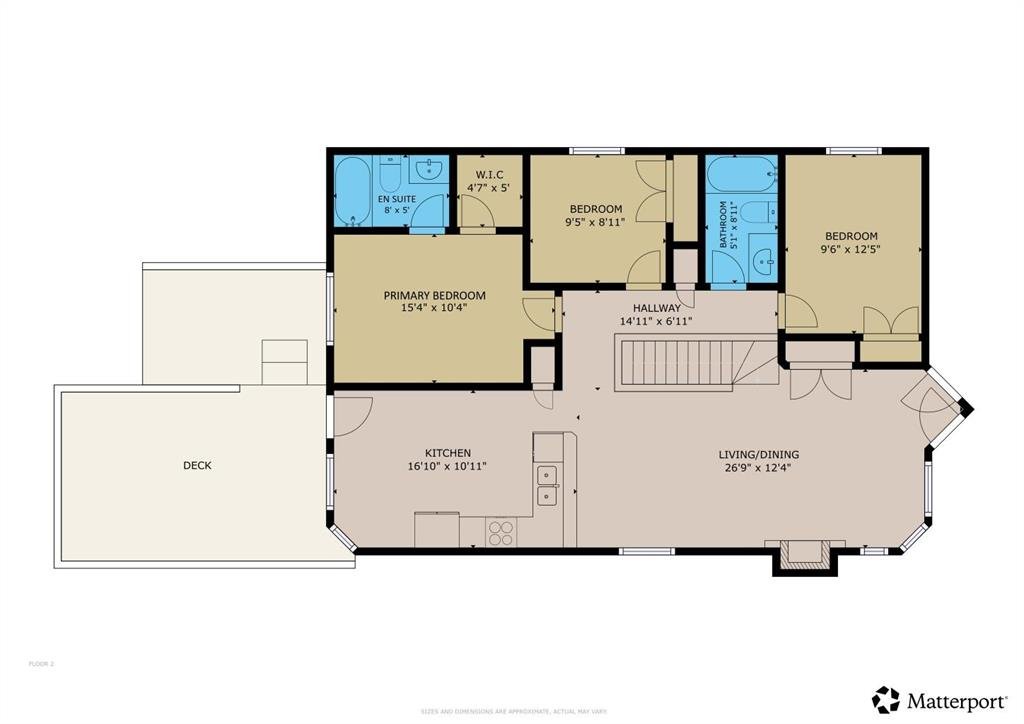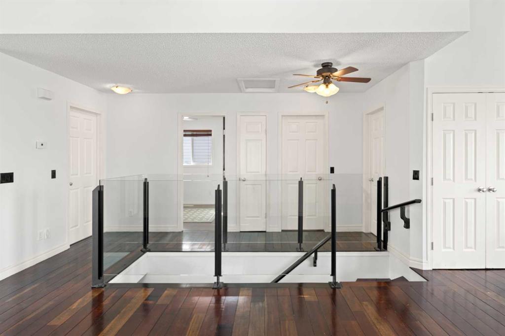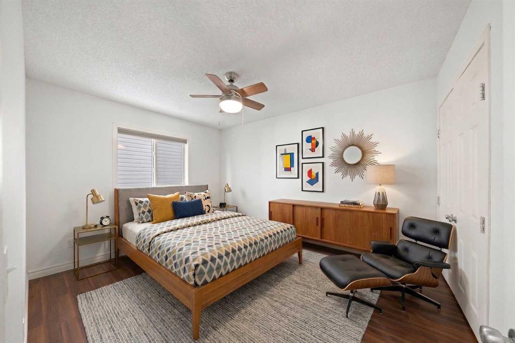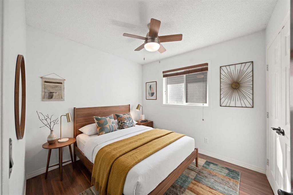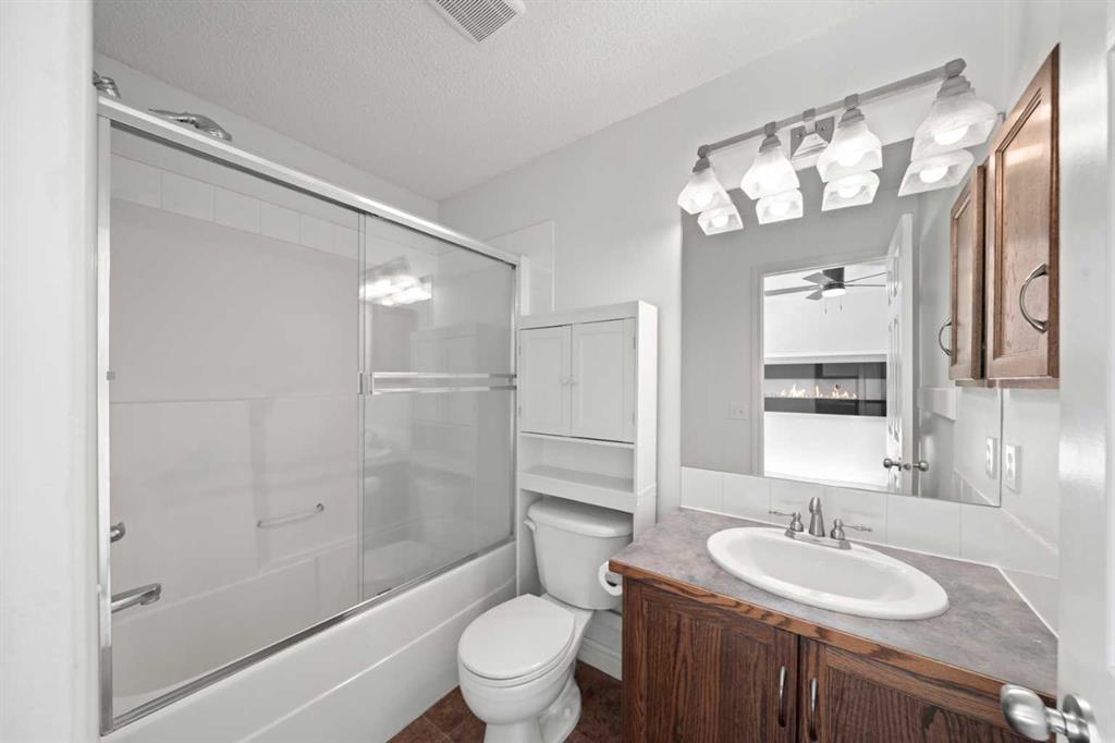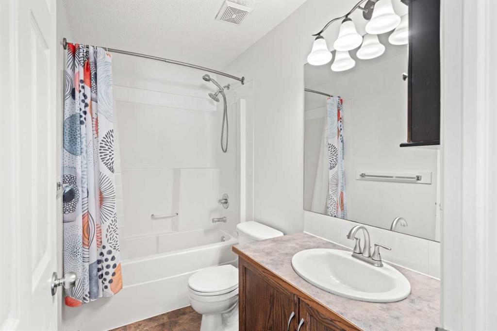 The primary bedroom is a true retreat, complete with an electric fireplace, walk-in closet, and a 4-piece ensuite with tiled flooring. Two additional bedrooms on the main level are generously sized and feature laminate flooring—there is no carpet in this home. A second 4-piece family bathroom with tile flooring completes the main level.