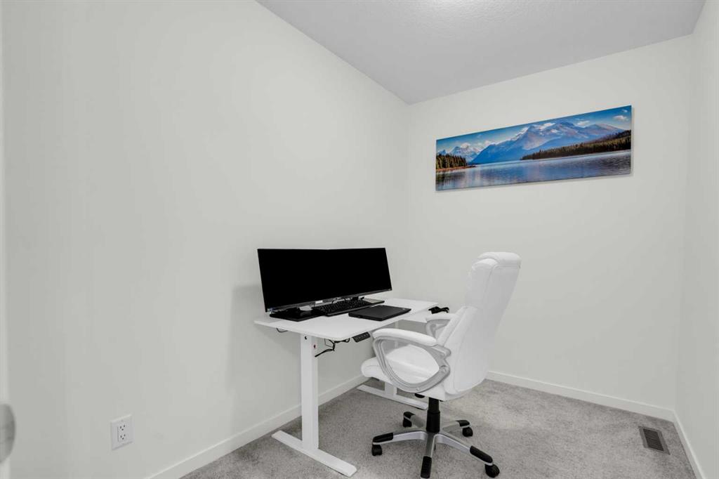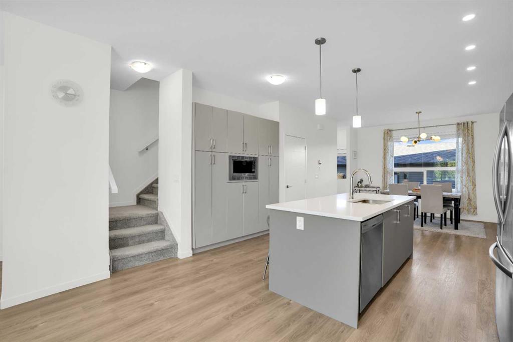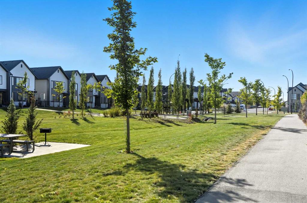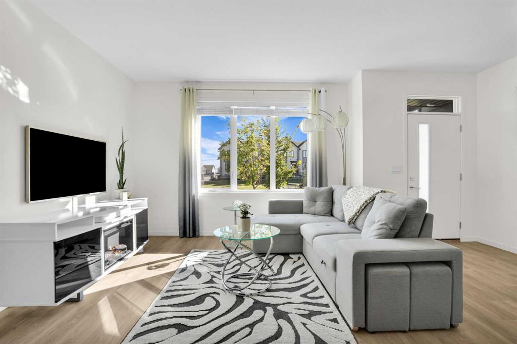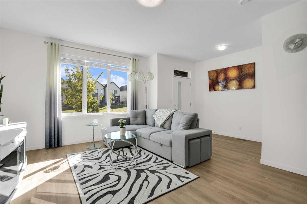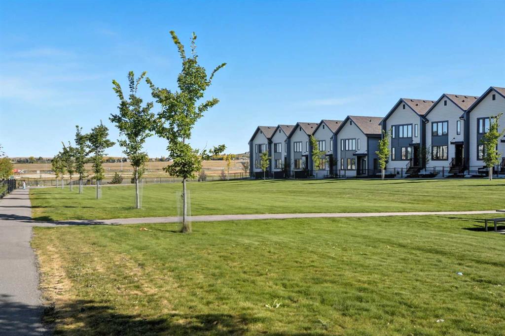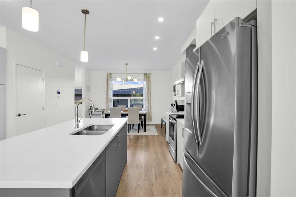 This bright and beautifully maintained 1,665 sq ft rowhome is ideally located directly across from a green space in the sought-after community of Southpoint, Airdrie, offering an exceptional blend of lifestyle, convenience, and value. The open-concept main floor features quartz countertops, stainless steel appliances, and an upgraded French-door refrigerator, creating a warm and functional space perfect for everyday living and entertaining. Upstairs, you’ll find 3 bedrooms plus a dedicated office, including a spacious primary bedroom overlooking the park, complete with a walk-in closet and dual-sink ensuite. This home truly stands out with central air conditioning, a landscaped yard, stone-paved pathway, and full wooden fencing for added privacy — upgrades not commonly found in neighboring units. A double detached garage with double parking pad provides excellent everyday convenience, while the unfinished basement is clean and ready for future development. A smart thermostat ensures easy, year-round climate control. This home truly stands out with central air conditioning, a landscaped yard, stone-paved pathway, and full wooden fencing for added privacy — upgrades not commonly found in neighboring units. A double detached garage with double parking pad provides excellent everyday convenience, while the unfinished basement is clean and ready for future development. A smart thermostat ensures easy, year-round climate control. Enjoy close proximity to schools, walking paths, green spaces, and a dog park, with quick access to Coopers Promenade and Deerfoot Trail just 3 minutes away, making commuting to Calgary fast and convenient.