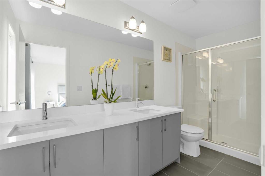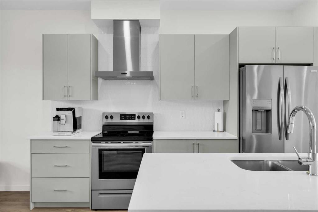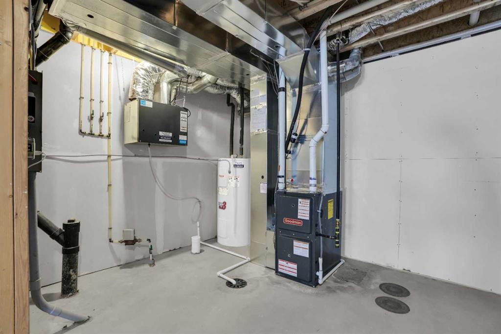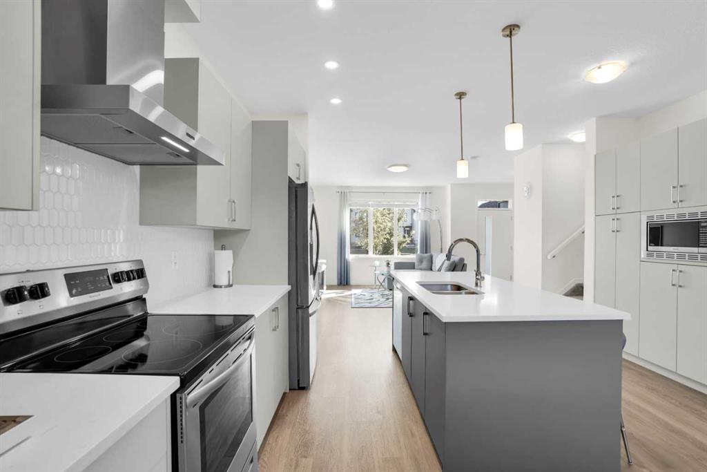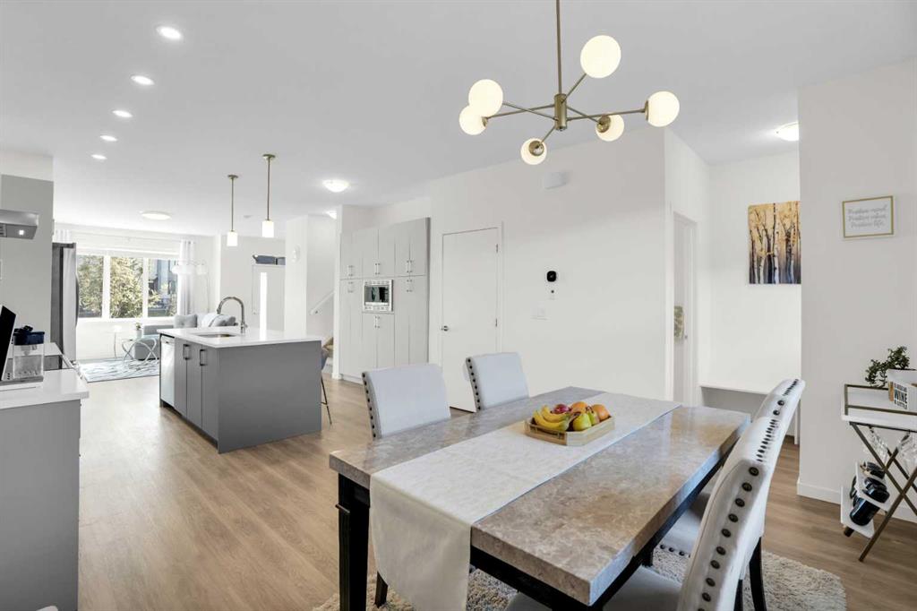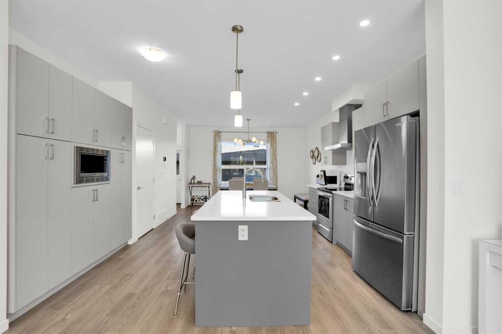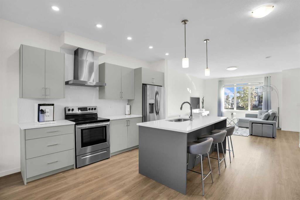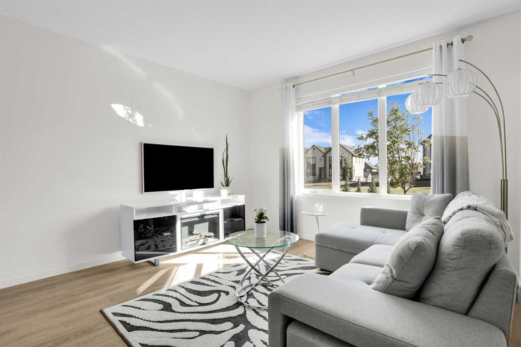 This bright and beautifully maintained 1,665 sq ft rowhome is ideally located directly across from a green space in the sought-after community of Southpoint, Airdrie, offering an exceptional blend of lifestyle, convenience, and value. The open-concept main floor features quartz countertops, stainless steel appliances, and an upgraded French-door refrigerator, creating a warm and functional space perfect for everyday living and entertaining. Upstairs, you’ll find 3 bedrooms plus a dedicated office, including a spacious primary bedroom overlooking the park, complete with a walk-in closet and dual-sink ensuite. This home truly stands out with central air conditioning, a landscaped yard, stone-paved pathway, and full wooden fencing for added privacy — upgrades not commonly found in neighboring units. A double detached garage with double parking pad provides excellent everyday convenience, while the unfinished basement is clean and ready for future development. A smart thermostat ensures easy, year-round climate control. This home truly stands out with central air conditioning, a landscaped yard, stone-paved pathway, and full wooden fencing for added privacy — upgrades not commonly found in neighboring units. A double detached garage with double parking pad provides excellent everyday convenience, while the unfinished basement is clean and ready for future development. A smart thermostat ensures easy, year-round climate control. Enjoy close proximity to schools, walking paths, green spaces, and a dog park, with quick access to Coopers Promenade and Deerfoot Trail just 3 minutes away, making commuting to Calgary fast and convenient.