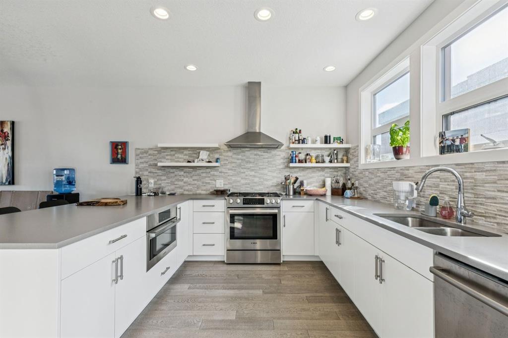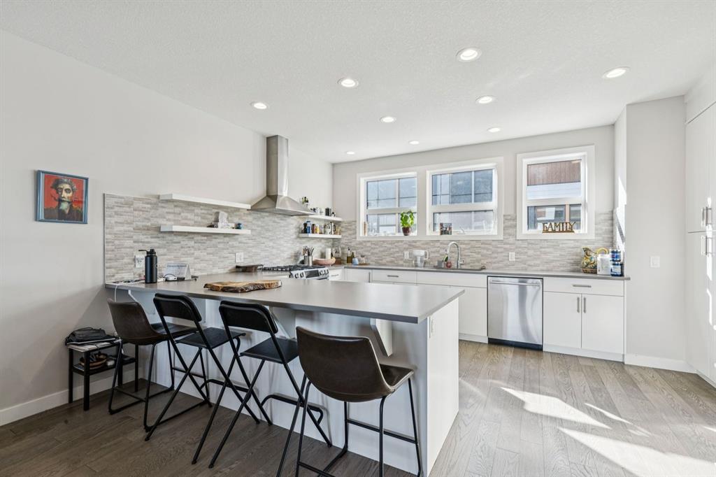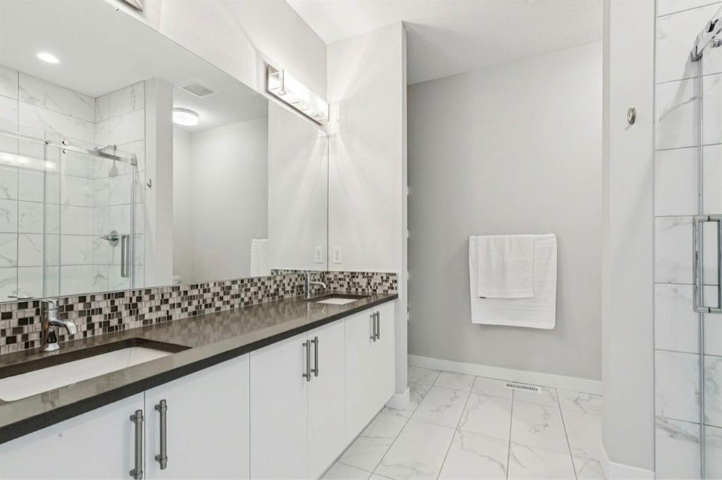Welcome to The Ivy, where architectural artistry meets the vibrant pulse of the University District. This designer townhome offers a premier lifestyle for those who refuse to compromise on style, substance and location. Commanding a striking presence with its timeless brick accents and durable Hardie board siding, the residence opens into a bright, above-grade flex room a versatile space perfect for a high-end home office, private gym, or creative studio. The main living level is an entertainer’s masterpiece, featuring wide-plank engineered hardwood flooring and a seamless open-concept layout that effortlessly connects the kitchen, dining, and living areas. This expansive social hub is bathed in natural light from large South-facing windows, creating an airy and inviting atmosphere that is perfect for hosting everything from sophisticated dinner parties to casual weekend brunches. At the heart of the home, the chef-inspired kitchen is designed for both form and function, boasting a premium Bosch appliance package, stunning Caesarstone countertops, and a large central island with a breakfast bar that acts as a natural gathering point for guests. Seamlessly transition outdoors to your private balconies, complete with a gas BBQ line and picturesque views of the lush central courtyard and community gardens. Upstairs, the dual primary layout provides ultimate privacy, including a grand primary that comfortably accommodates a king-sized bed and features a spa-like ensuite with dual vanities and a glass-enclosed shower. Every detail has been considered for year-round comfort, from the central A/C to the oversized double attached garage. Situated just steps from Monogram Coffee, Cineplex VIP, the University of Calgary, and both the Foothills and Alberta Children’s Hospitals, this home offers an unbeatable inner-city location. Experience modern luxury in Calgary’s most walkable urban hub!