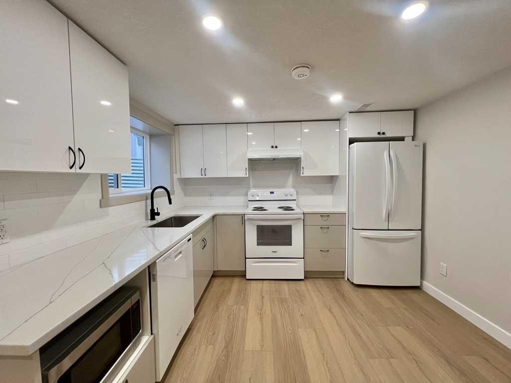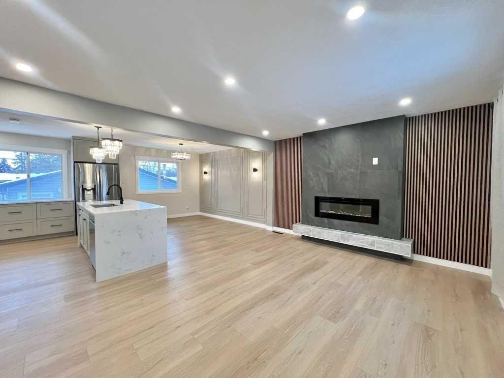 easy access to highway. As you step inside, you’re greeted by an open-plan living area, exuding warmth and sophistication. This home has everything, New windows on the main floor, Egress windows in the basement, brand new water Heater, vinyl planks throughout. In the main floor lays 3 bedrooms, shower stand bathroom, in unit laundry, electric fireplace, accent wall, modern kitchen with built-in features. The island topped with a beautiful slab of quartz, serves as a social hub, perfect for food preparation and entertaining guests. The adjacent dining area features a stunning chandelier adding a touch of elegance to the space. Down in the basement with separate entrance, consider a 2 bedroom illegal suite and 1 bath, its own washer dryer, pantry and kitchen. This home is great for two families, or live up rent down for extra cashflow-mortage helper. In the backyard fully paved and fenced, with double heated garage, a greenhouse to do all your gardening in the Spring and a shed for extra storage. This modern home is the perfect blend of form and function design to make your life easier, more comfortable and utterly enjoyable. Book your showing today!