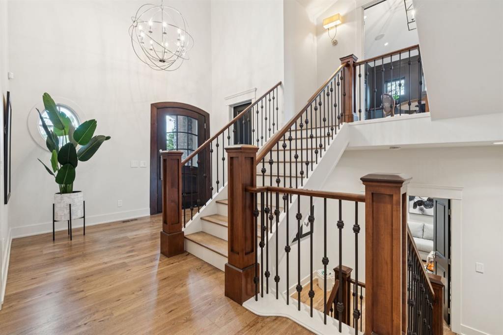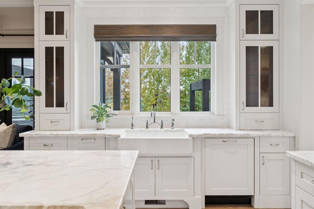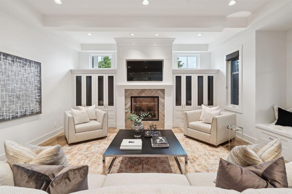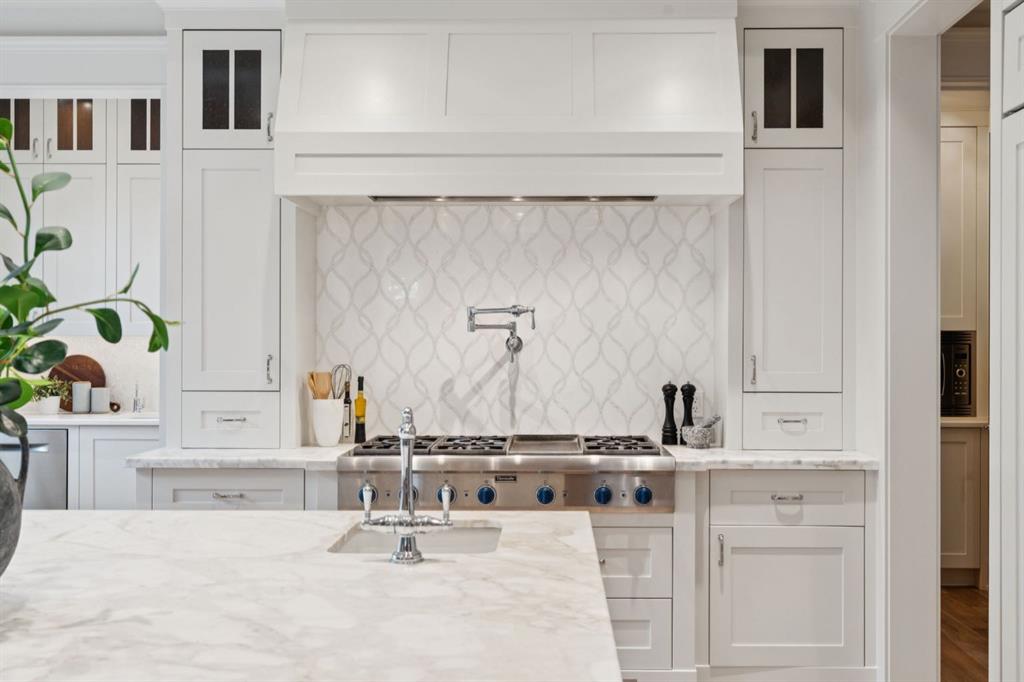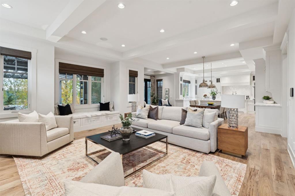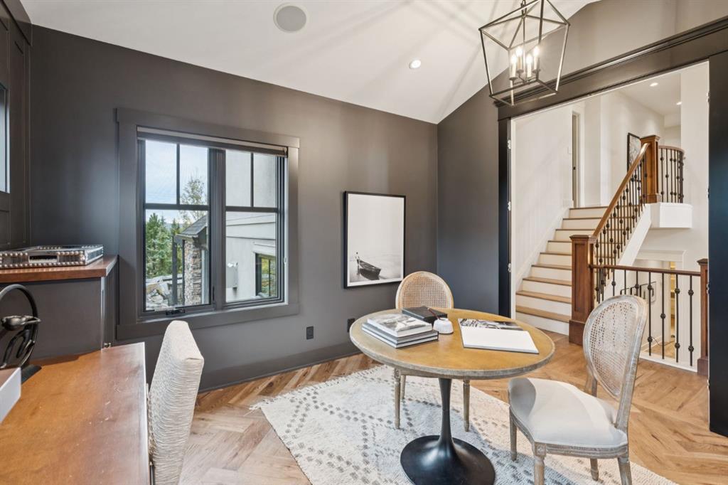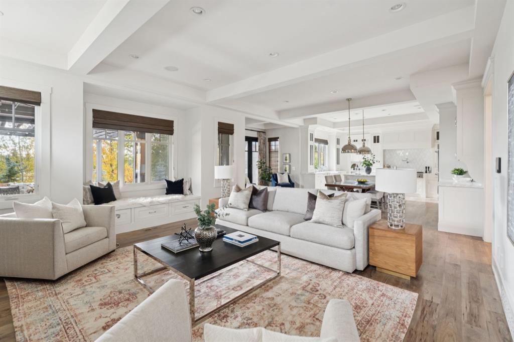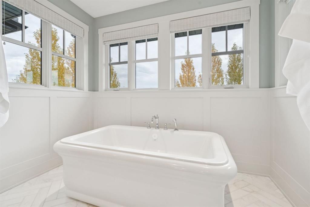 Welcome to this exceptional Veranda Homes masterpiece, located in the coveted first phase of Watermark at Bearspaw. Perfectly positioned on a private, tree-lined .8-acre lot, this estate offers just under 5,800 sq.ft. of exquisitely finished living space designed for both elegance and comfort. Inside, you’ll find five bedrooms (four on the upper level) and five bathrooms, all crafted with the finest attention to detail. The home showcases solid site-finished hardwood flooring, custom millwork and built-ins throughout, and a chef-inspired kitchen featuring Wolf and Sub-Zero appliances. Multiple fireplaces add warmth and sophistication across the main and lower levels, while large, strategically placed windows fill the home with natural light, creating a bright, airy atmosphere that feels both luxurious and inviting. The exterior is equally remarkable. Professionally designed landscaping surrounds the home, highlighted by a stunning water feature and mature trees that provide complete privacy. The southwest facing backyard is an entertainer’s dream, offering a hot tub, sports court, fire pit, and a covered courtyard with powered screens for all-season enjoyment. A poured aggregate patio connects the spaces beautifully for seamless indoor/outdoor living. Completing the property is an oversized triple attached garage with over-height doors, ideal for vehicle lifts or additional storage. This is a rare opportunity to own one of Watermark’s most distinguished homes, where architectural excellence, timeless design, and natural beauty come together in perfect harmony.