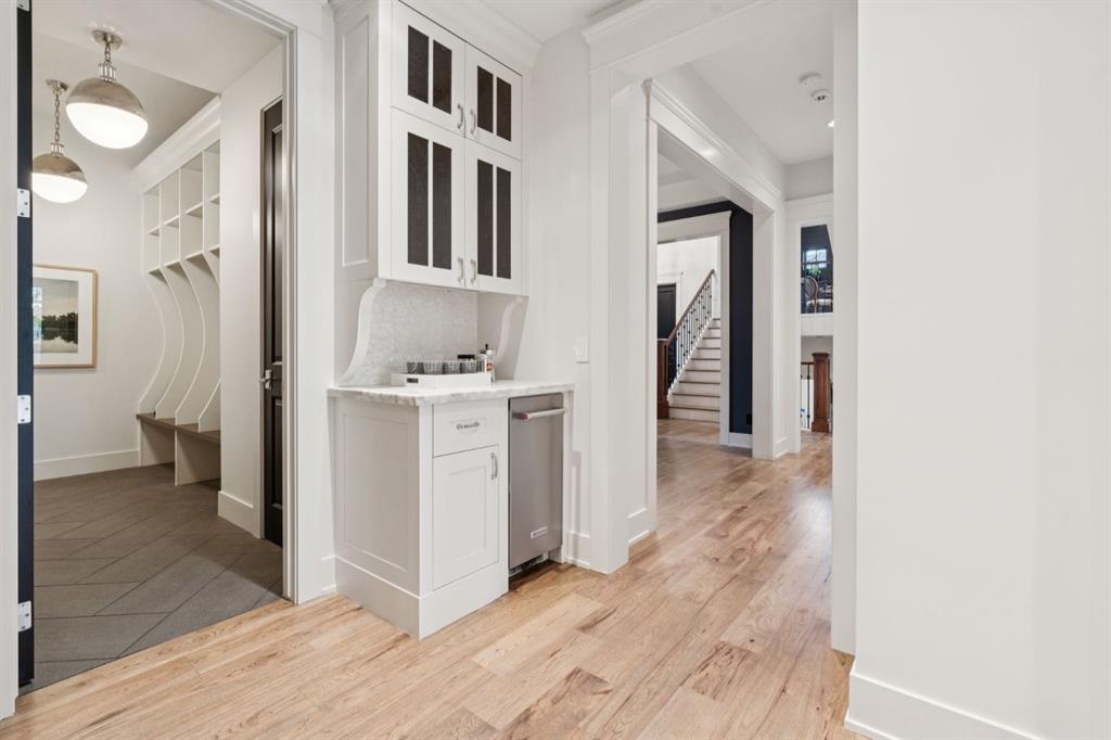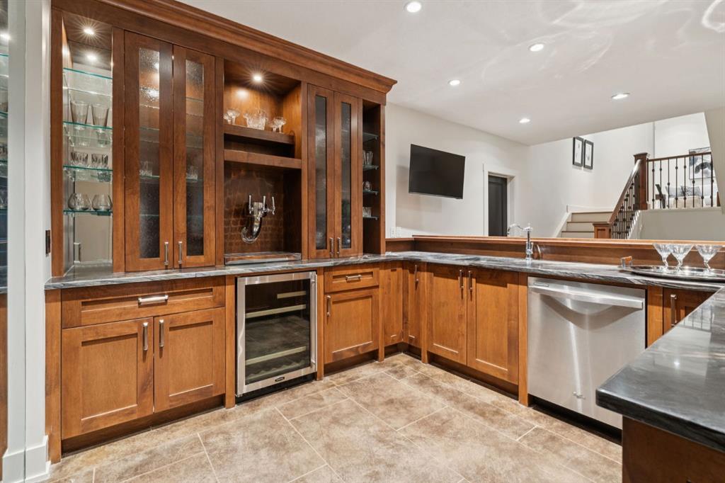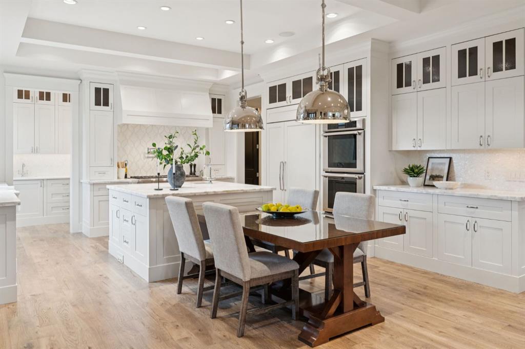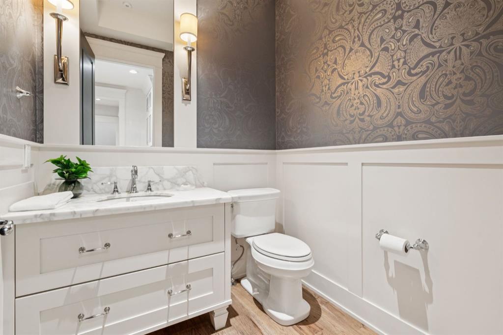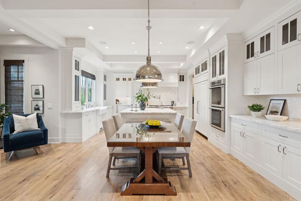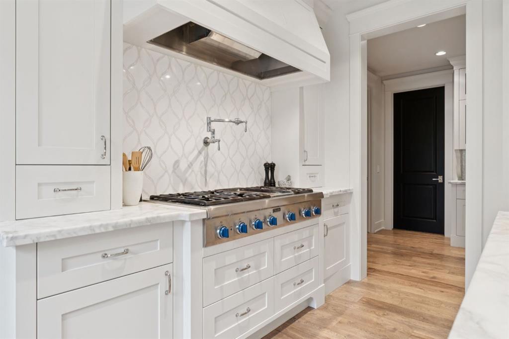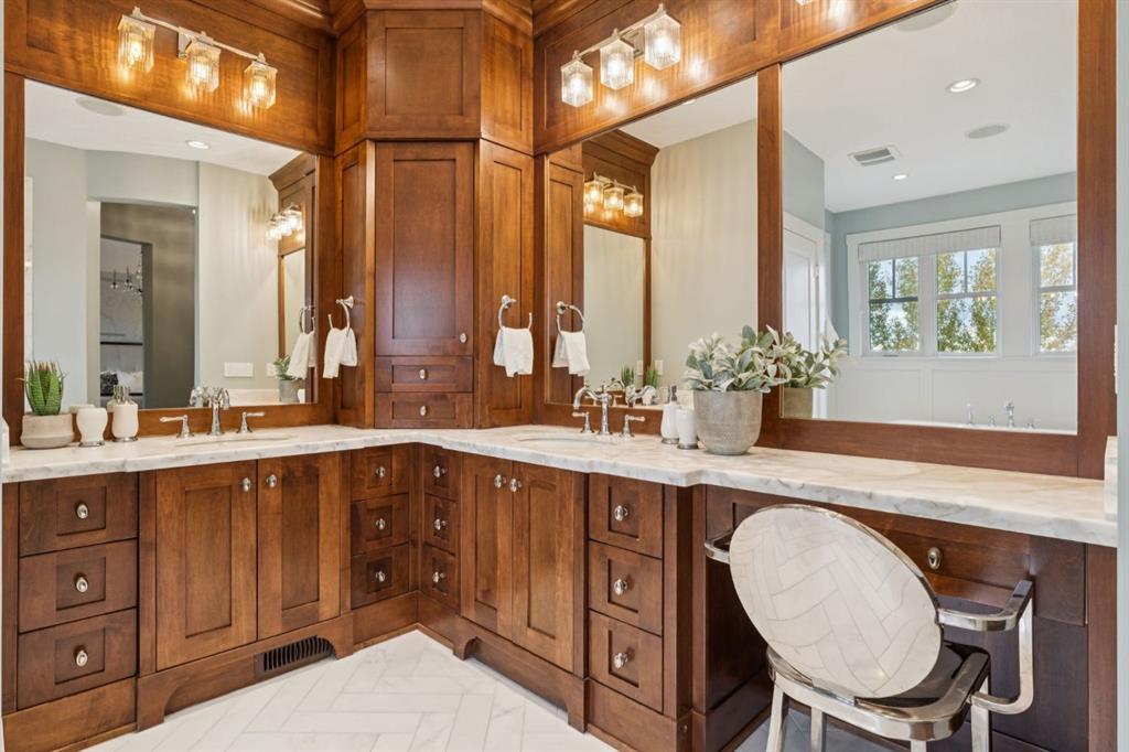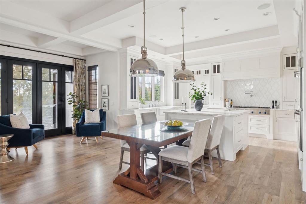 Welcome to this exceptional Veranda Homes masterpiece, located in the coveted first phase of Watermark at Bearspaw. Perfectly positioned on a private, tree-lined .8-acre lot, this estate offers just under 5,800 sq.ft. of exquisitely finished living space designed for both elegance and comfort. Inside, you’ll find five bedrooms (four on the upper level) and five bathrooms, all crafted with the finest attention to detail. The home showcases solid site-finished hardwood flooring, custom millwork and built-ins throughout, and a chef-inspired kitchen featuring Wolf and Sub-Zero appliances. Multiple fireplaces add warmth and sophistication across the main and lower levels, while large, strategically placed windows fill the home with natural light, creating a bright, airy atmosphere that feels both luxurious and inviting. The exterior is equally remarkable. Professionally designed landscaping surrounds the home, highlighted by a stunning water feature and mature trees that provide complete privacy. The southwest facing backyard is an entertainer’s dream, offering a hot tub, sports court, fire pit, and a covered courtyard with powered screens for all-season enjoyment. A poured aggregate patio connects the spaces beautifully for seamless indoor/outdoor living. Completing the property is an oversized triple attached garage with over-height doors, ideal for vehicle lifts or additional storage. This is a rare opportunity to own one of Watermark’s most distinguished homes, where architectural excellence, timeless design, and natural beauty come together in perfect harmony.