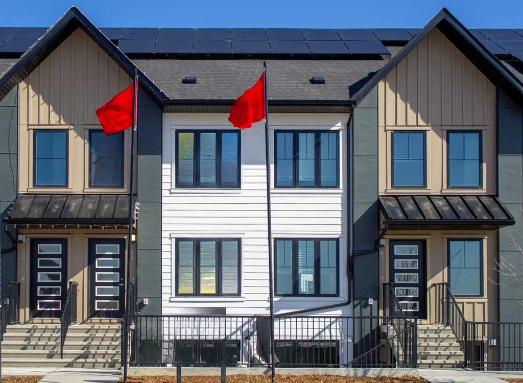 Welcome to the Braeburn at ZEN Livingston – a stylish, energy-efficient townhome built by a NET ZERO builder! Offering 536sq ft of thoughtfully designed space, this 1 BED, 1 BATH home features triple-pane windows, advanced insulation, and modern construction that keeps comfort high. The open-concept main floor boasts LUXURY VINYL PLANK flooring and a bright living area. The sleek kitchen is complete with quartz countertops and a 6-piece Whirlpool appliance package. Built with HARDIE BOARD siding (hail/fire-resistant) for long-lasting durability, this home is ideal for first-time buyers. Be part of a vibrant community just steps from the Livingston Hub with splash park, rink, courts & more! Plus, enjoy quick access to Stoney Trail (3 min), YYC Airport (13 min), and CrossIron Mills (11 min).