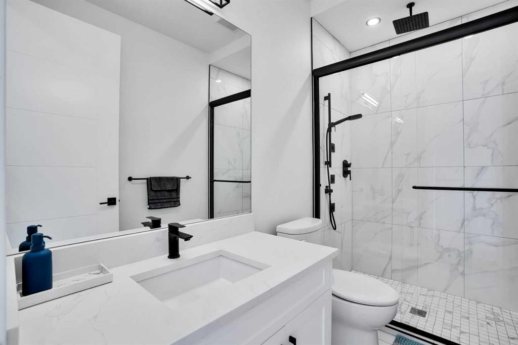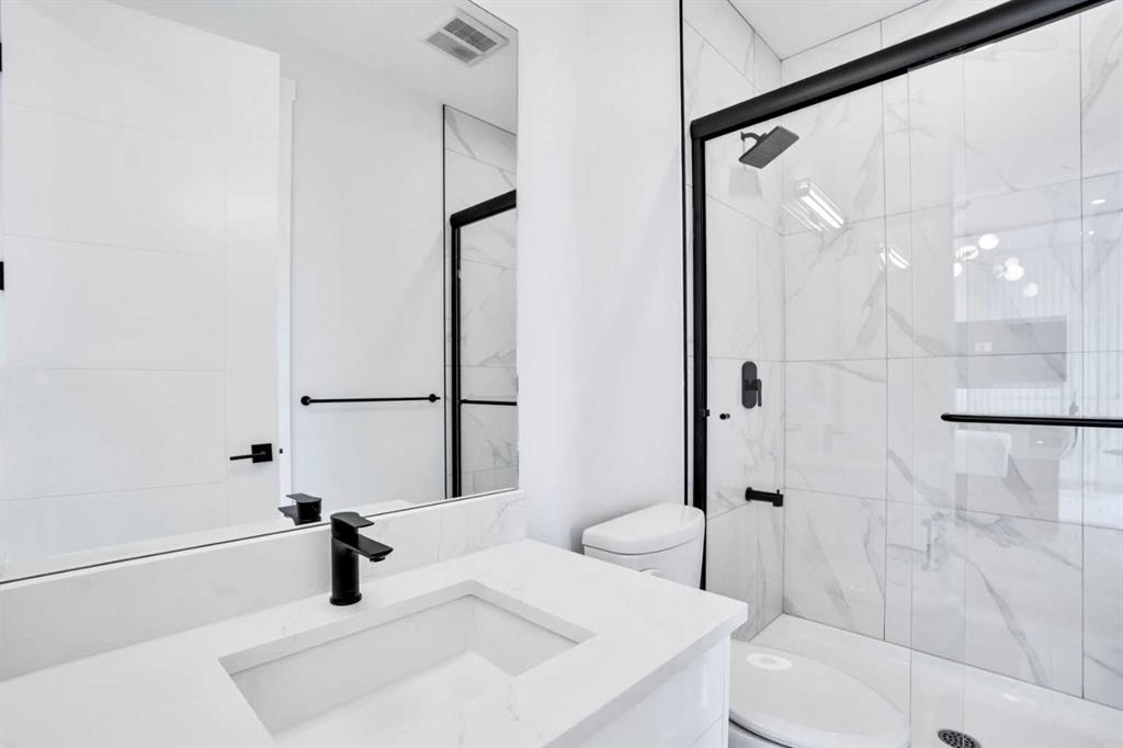 Welcome to Luxury Living in the Desirable Community of Coopers Crossing! This stunning luxury estate home offers over 4,100 square feet of living space in the sought-after community of Coopers Crossing in Airdrie. Upon entering this beautiful home, you’ll be greeted by a grand foyer with vaulted ceilings leading to the upper floor. The main floor of the home features 10-foot ceilings and a versatile office space that can be used as a bedroom. A full bathroom is also located on the main floor. The open-concept layout boasts a cozy family room with a gas fireplace and custom feature wall, a formal dining room with coffered ceilings and custom feature walls, and a dream chef’s kitchen with a waterfall island and seating area. High-end Kitchen-Aid appliances, built-in oven, gas range, and a large built-in refrigerator are the highlights of this beautiful kitchen. The kitchen area also features a spice kitchen/pantry with a gas range and refrigerator. The entrance from the triple garage that has epoxy floors leads you to your large mudroom with storage for your coats and shoes. The upper floor features 9-foot ceilings, a large chandelier, and a feature wall leading to 4 bedrooms and 3 full bathrooms, including a primary suite with a large walk-in closet. The upper floor also features a large laundry room with a sink. A spacious bonus room with sliding doors leading to the upper balcony completes the upper floor. The fully finished basement has 9-foot ceilings, a built-in custom wet bar with a sink, microwave, and bar fridge, leading to a rec room with a feature wall wired in for a projector setup and surround sound. An additional bedroom and a 4-piece washroom complete the basement. The exterior is now landscaped and wired with custom gemstone lighting that can be used year-round, security system with cameras, and a large lot backing onto a green space walkway, the garage is also wired for an electric car charger. This home is designed and built with many upgrades, including engineered hardwood, custom railing, tile, feature walls, A/C and built-in closets. You don’t want to miss the opportunity to own this dream home. Check our the 3D Tour and Schedule your showing today!