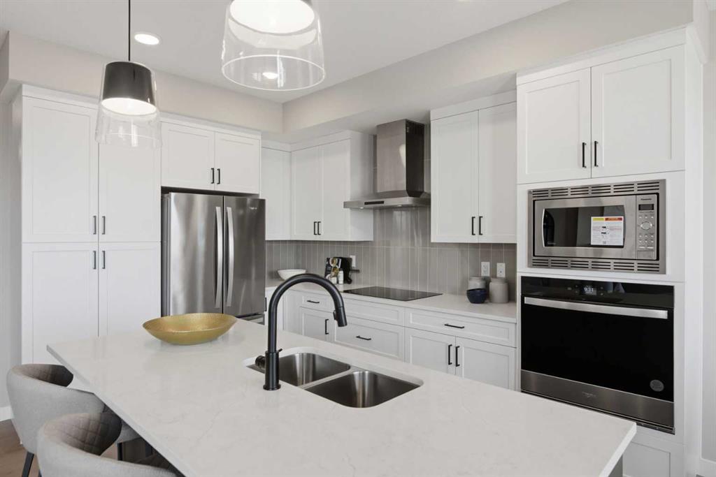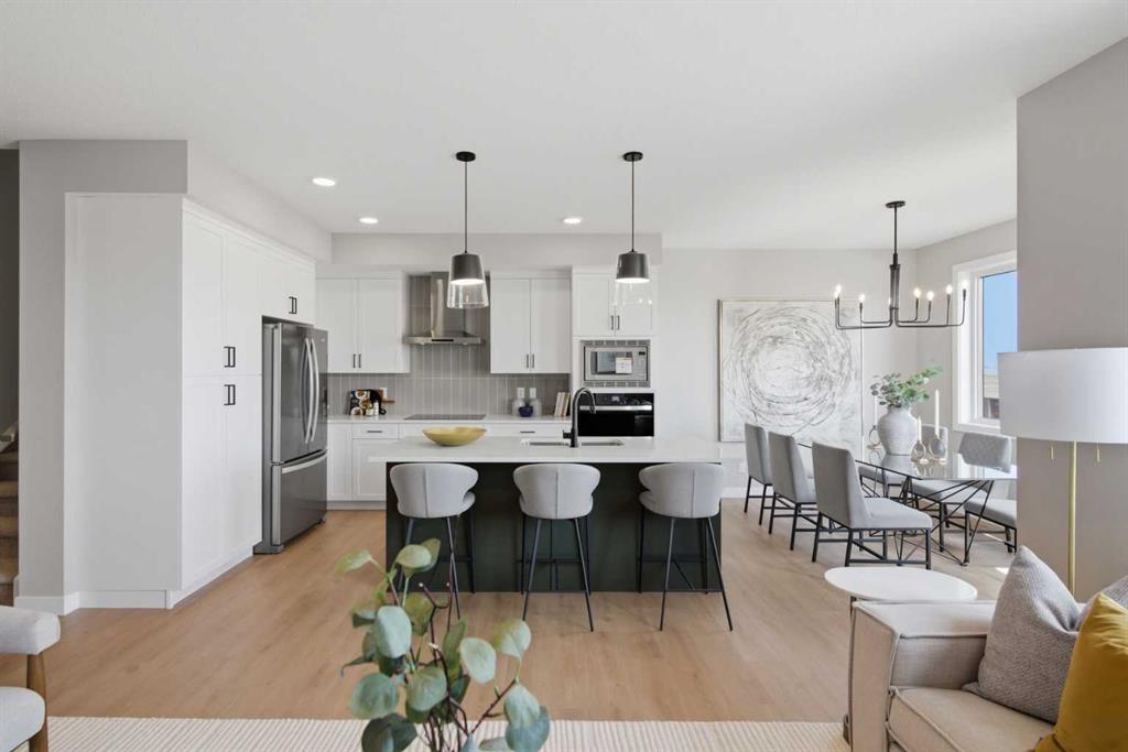 2,028 SQ.FT. | 3+1-BED | 3-BATH | GOURMET KITCHEN | SEPARATE ENTRANCE | HARDIE BOARD SIDING | DECK | FRONT LANDSCAPING | This MOVE-IN-READY home by Crystal Creek Homes combines OPEN, LIGHT-FILLED living with thoughtful design. The MAIN FLOOR features a GREAT ROOM with FIREPLACE and a GOURMET KITCHEN with full-height cabinetry, quartz countertops, wall oven, and a LARGE ISLAND that’s perfect for gathering. A FLEX ROOM beside a FULL BATH works well for guests or as a MAIN FLOOR BEDROOM. Upstairs, 3 bedrooms include a spacious PRIMARY SUITE with a SPA-INSPIRED ENSUITE, along with a bonus room and laundry for convenience. The 9′ BASEMENT with SEPARATE ENTRANCE offers future legal suite potential (subject to City approval & permitting). A rear deck and front landscaping is included. Belvedere offers quick access to Stoney Trail, East Hills Shopping Centre, and planned parks and schools. This home professionally curated and includes a NEW HOME WARRANTY for your peace of mind. Move in before the school year begins – book your showing today.