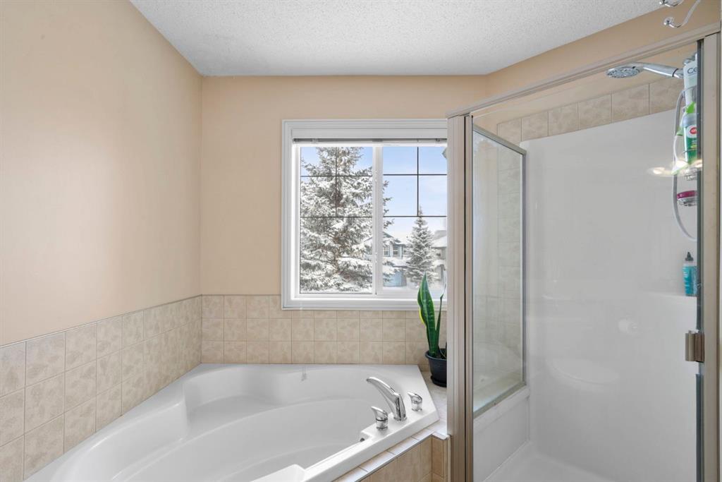 The upper level showcases a unique split staircase leading to a versatile bonus room, ideal for a family lounge, home office, or gym. The spacious primary bedroom offers a peaceful retreat with a walk-in closet and a large 4-piece ensuite featuring a soaker tub and separate shower. Two additional well-sized bedrooms and a shared 4-piece bathroom complete this level, providing excellent space for growing families.