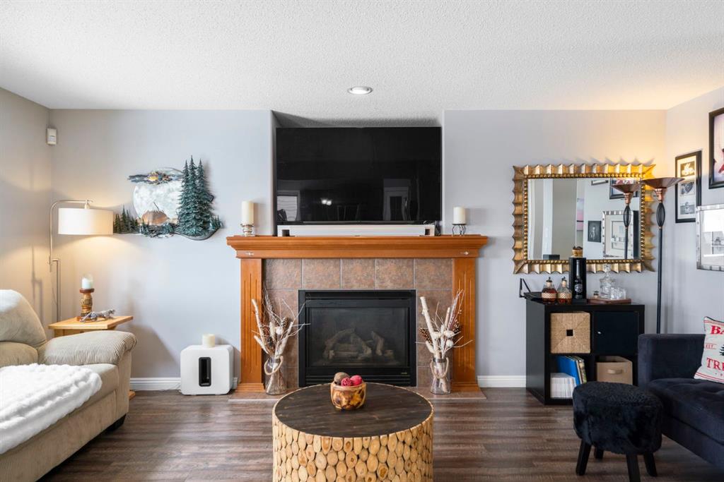 Step inside to an open-concept main level designed for both everyday living and entertaining. The spacious living room features a cozy gas fireplace and large windows, creating a bright and inviting atmosphere. The kitchen is well-appointed with updated appliances, a center island, and a convenient pantry, seamlessly connecting to the dining area and overlooking the backyard. Step outside to the deck and concrete pad with back alley access perfect for summer gatherings or relaxing outdoors. A powder room and laundry area complete the main level.