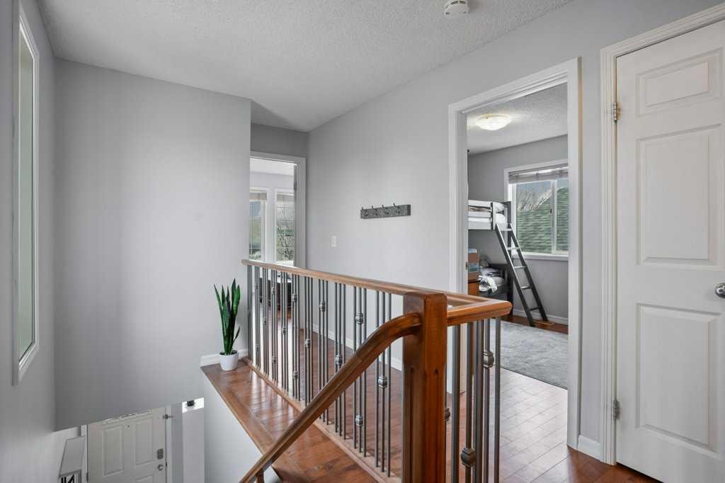 Ever dreamt of watching your kids walk across the street to school or play at the park right from your backyard? This home offers that rare lifestyle and so much more at an incredible price. Situated in the sought-after community of McKenzie Lake, directly across from Mountain Park School (Grades 6–9) and backing onto a large greenspace with a park, this home combines location and functionality beautifully. The spacious front living room features gorgeous hardwood floors and large windows that fill the space with natural light. At the back of the home, the bright and generous kitchen and dining area showcase heated tile flooring and overlook the southeast-facing backyard. A centrally located 2-piece bathroom completes the main floor. Upstairs, you’ll find the same stunning hardwood flooring, a large primary bedroom with a walk-in closet, a shared 4-piece bathroom with heated floors, and two additional bedrooms, including one that is perfect for a home office while also offering a Murphy bed and beautiful views of the greenspace and park. The fully finished basement provides a large recreation area, a spacious den ideal for a craft room with the laundry area, additional flex space and the utility room. Outside, the backyard offers plenty of room to enjoy with a concrete patio, abundant fruit trees, a large storage shed, RV parking and a double detached garage. Updates include some newer appliances, including the fridge (2023), washer (2025) and dryer (2017), updated attic insulation (2023), garage door (2026), bathroom sinks and faucets, and more. All of this with easy access to schools, parks, shopping, transit and major roads for commuting. Check out the 3D Virtual Tour and book your showing today!