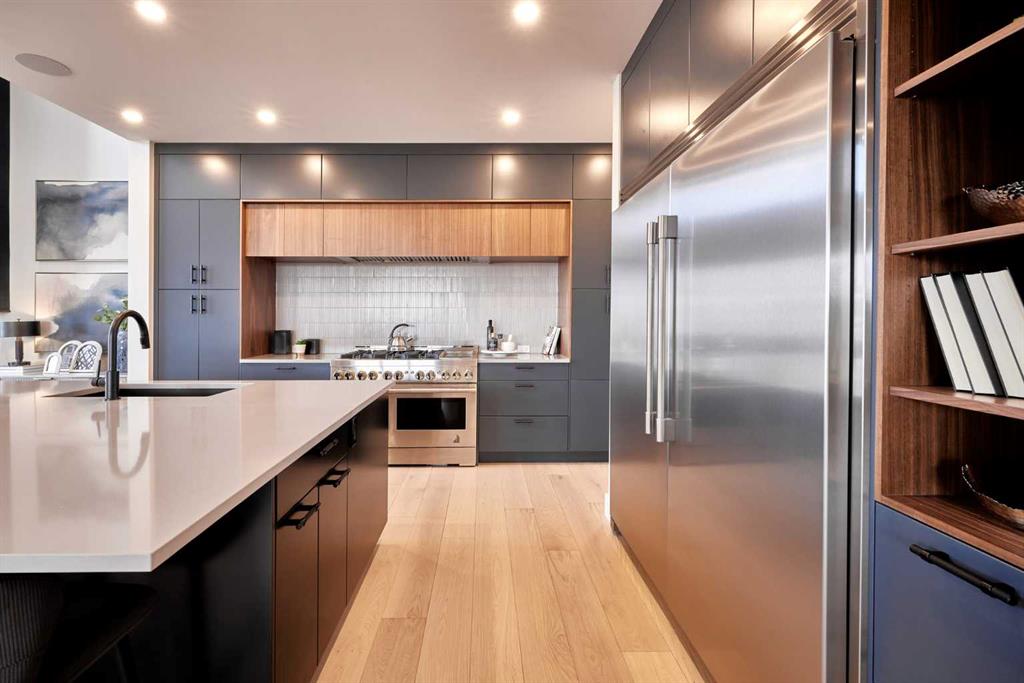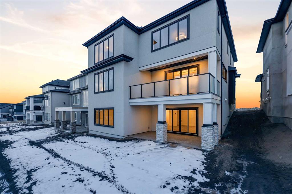 4,880 TOTAL SQ.FT. | 5-BED | 4.5-BATH | FINISHED WALKOUT | 3-CAR GARAGE | DESIGNER FINISHING | Located on a quiet street in Aspen Summit, this brand-new executive walkout by Crystal Creek Homes offers a rare opportunity to own new luxury construction in Aspen Woods, where available builder lots are nearly sold out. Finished to showhome standards, this home includes a triple-car garage and an open-to-above great room that fills the main floor with natural light. The chef-inspired kitchen is designed for both everyday living and entertaining, featuring a gas range, custom hood fan, premium appliances, a butler’s pantry, and a large walk-in pantry. Built-in dining cabinetry adds function and style, while a private main-floor office provides a quiet space for work or study. Upstairs, the primary suite is a true retreat with a spa-inspired ensuite and an oversized walk-in closet with direct access to the laundry room. Three additional bedrooms complete the level, including a Jack-and-Jill layout, a full bath, and a spacious bonus room overlooking the great room below. The fully developed walkout basement adds a fifth bedroom, a full bathroom, generous recreation and games areas, and exceptional storage, with direct access to a broom-finished concrete patio. Dual furnaces, air conditioning, water softener, radon rough-in, and full builder warranty complete the home. Set within Aspen Woods, known for estate homes, established parks and pathways, top-tier schools, and quick access to West District, Aspen Landing, downtown, and the mountains, homes offering this level of scale, finish, and location are rarely available. (Photos are of the builder’s previous showhome with nearly identical layout and finishes) – book your showing before it’s gone.