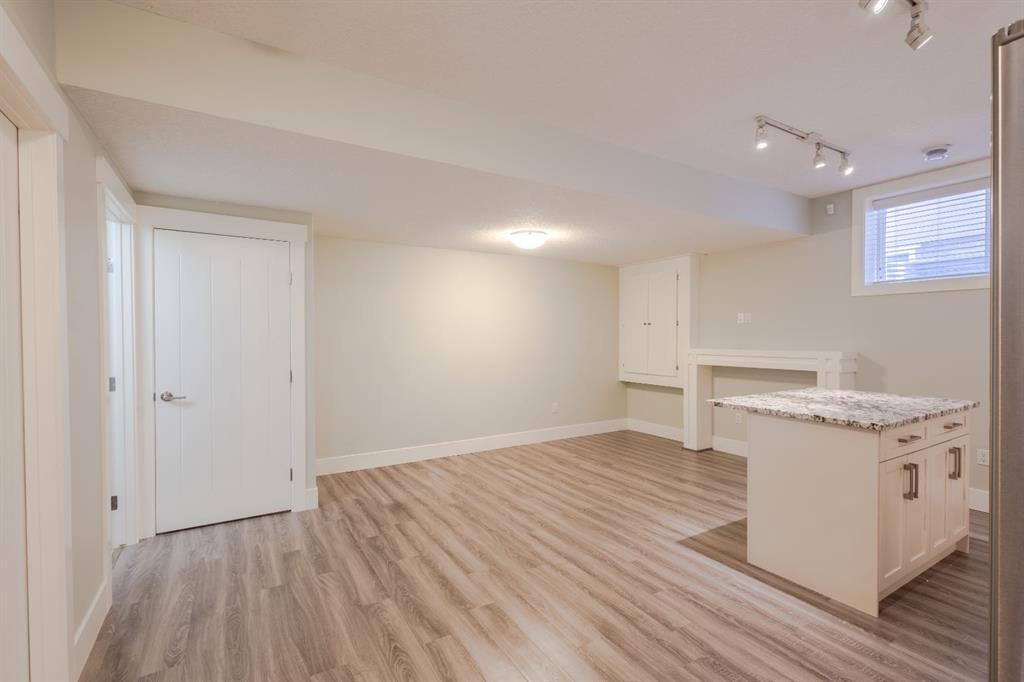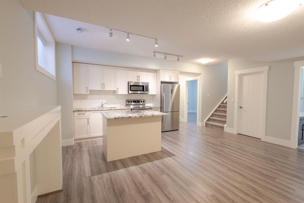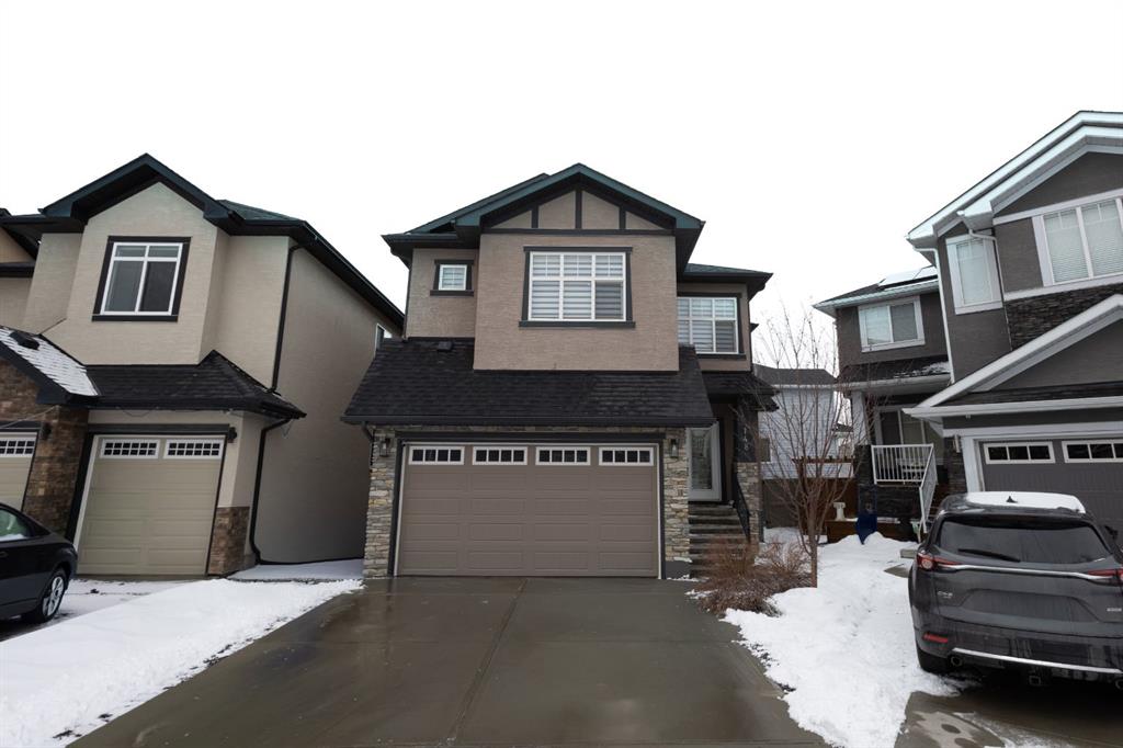 This beautifully appointed home offers a perfect blend of style, space, and functionality! Designed for both everyday living and entertaining, stepping inside the open-concept layout connects each space with ease and elegance with hardwood flooring that flows seamlessly throughout the main floor. At the heart of the home, the kitchen is truly a showstopper. It features a massive island with granite countertops and bar seating, ideal for casual meals or hosting guests. Stainless steel appliances, including a gas range cooktop and beverage fridge, add both convenience and a touch of luxury. A corner pantry and extensive cabinetry provide ample storage, while direct access to the back deck makes indoor-outdoor living effortless. The dining room is thoughtfully positioned, open to both the kitchen and front entrance, and highlighted by a striking feature wall that adds character and charm. Just beyond, the living room invites you to relax with its cozy fireplace, complete with a tile surround and custom built-ins, all while maintaining an open flow to the kitchen. Upstairs, the primary retreat is a true sanctuary. It boasts a massive walk-in closet with extensive hanging space, along with a luxurious 5-piece ensuite featuring dual vanities, a jetted soaking tub, and a standalone shower. The upper level also includes a spacious bonus room with its own fireplace and mantle, perfect for family gatherings or a quiet retreat. Two additional generously sized bedrooms share a well-appointed 4-piece bathroom, and the convenience of an upper-level laundry room with cabinetry and a sink completes the space. The basement offers incredible versatility with a separate side entrance leading to a full secondary illegal suite. This suite includes its own kitchen with an island, granite countertops, and stainless steel appliances, along with a comfortable living room and eating nook. Two well-sized bedrooms and a 4-piece bathroom make this an ideal setup for extended family or potential rental income. Outside, the backyard features a large deck, a lower-level patio space, mature trees, and full fencing—perfect for relaxing or entertaining in any season. This home truly has it all, combining thoughtful design, high-end finishes, and exceptional living spaces throughout.