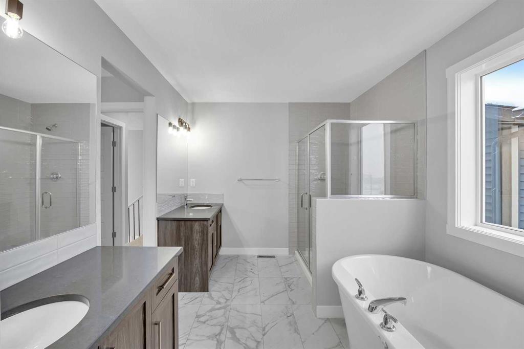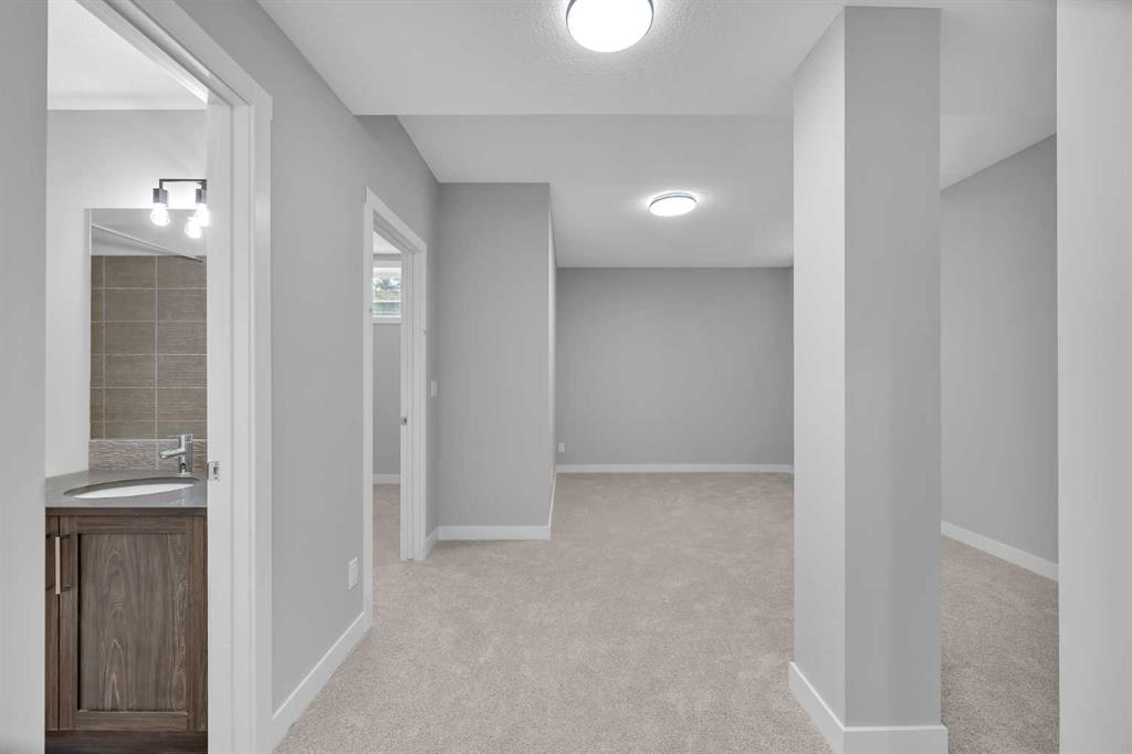 Meet the Alpine, Built by Master Builder Douglas Homes! Nestled in the highly sought-after community of Crimson Ridge, this stunning new build offers the perfect blend of luxury, comfort, and nature. Backing onto scenic walking paths and the prestigious Lynx Ridge Golf Course, this home provides breathtaking views and an unparalleled sense of tranquility. Spanning over 2,450sq. of developed living space, this open-concept design is crafted with quality finishings and modern elegance. Hardwood floors flow seamlessly throughout the main level, leading to a great room with a cozy fireplace, an inviting dinette, and a chef-inspired kitchen featuring, quartz countertops, stylish cabinetry, and five stainless steel appliances, including a gas stove. Flex room is ideal as an office or den which offers additional versatility. Step outside to enjoy the expansive 20’ x 10’ covered patio – perfect for entertaining or unwinding in nature. Upstairs, the home continues to impress with three spacious bedrooms, a loft-style bonus room, and a dedicated laundry room. The primary suite is a true retreat, featuring a luxurious 5-piece ensuite with a soaker tub, separate glass shower, double vanities, and a generous walk-in closet. The fully finished basement extends the living space with a large recreational room, an additional bedroom, and a full bathroom, making it perfect for guests or family gatherings. With 9 ft. ceilings, 8 ft. doors on the main level, and exceptional craftsmanship throughout, this home is both sophisticated and functional. Reverse walkout allows grade level access to the lower level through the garage. Surrounded by nature and minutes from amenities, this is a rare opportunity to own a Douglas Home in one of the most desirable location.