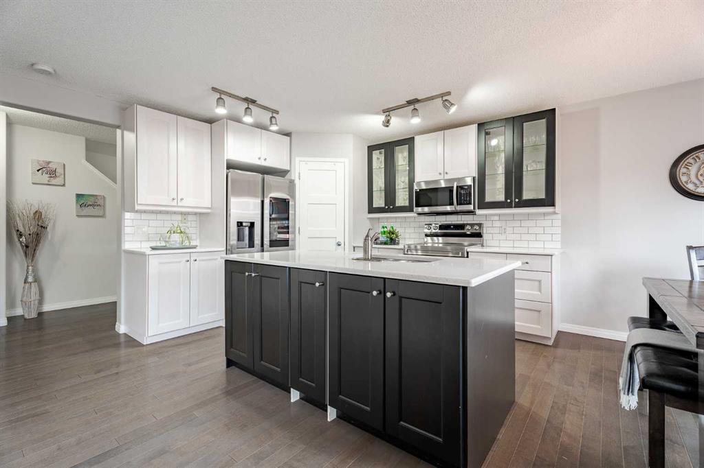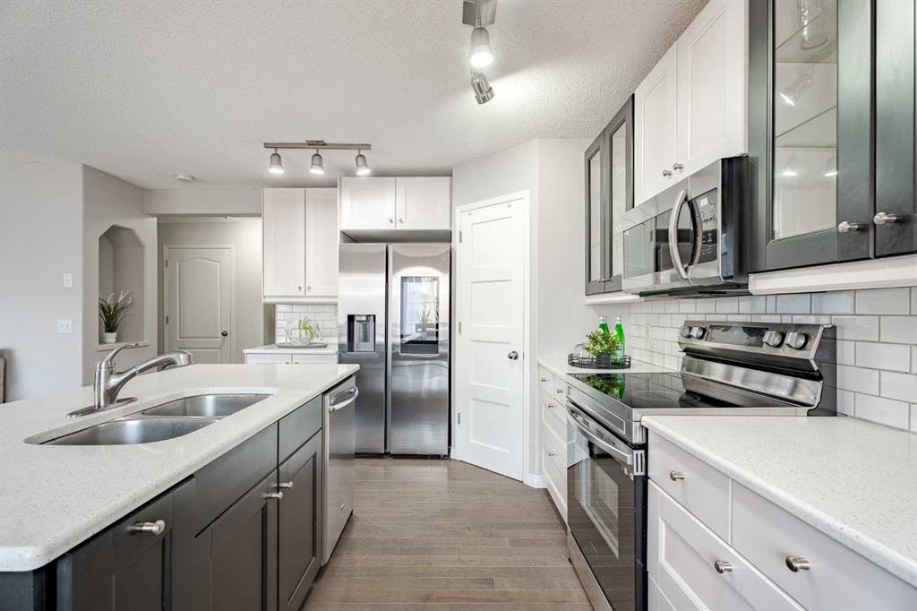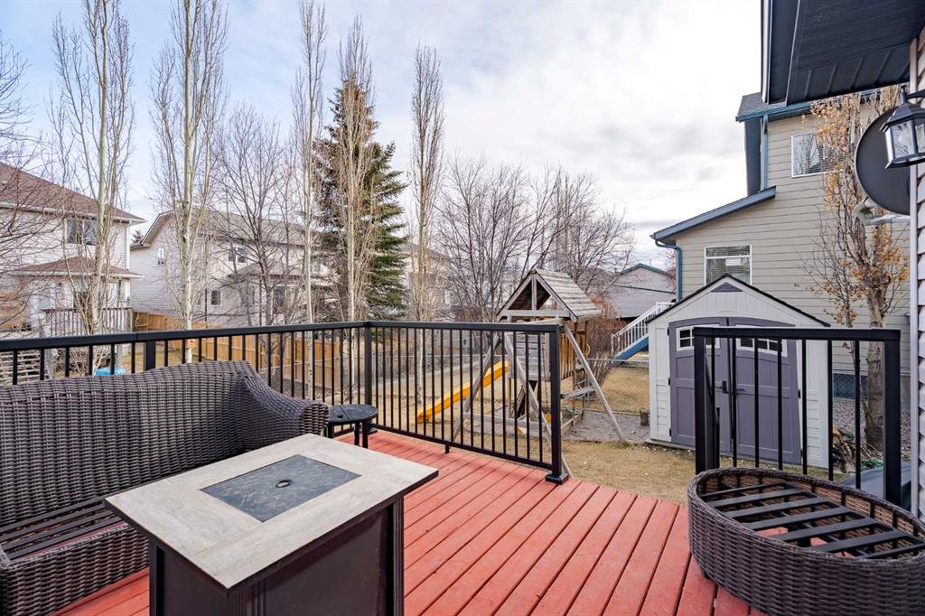 Located in the sought-after Fairways community, where Woodside Golf Course winds through the neighbourhood, this fully finished 2-storey is the perfect blend of comfort and style. With 4 bedrooms and 3.5 bathrooms, this move-in-ready home welcomes you with warm hardwood floors, loads of natural light, and an easy, open-concept layout. Cozy up by the gas fireplace, host dinner in the bright dining nook overlooking the private oasis backyard with plenty of mature trees, and enjoy cooking in the stylish kitchen featuring quartz countertops and newer stainless steel appliances. Main-floor laundry and a 2-piece bath add everyday convenience. Upstairs, the vaulted bonus room is ideal for movie nights or a play space, alongside two generous bedrooms, a full bath, and a spacious primary retreat complete with a 4-piece ensuite featuring a separate tub and shower. The fully finished basement (upgraded with sound-dampening insulation) offers even more space with a family room, fourth bedroom, and 3-piece bath — perfect for guests, teens, or a home office. Step outside to a backyard with the perfect amount of privacy; built for making memories — relax under the gazebo, enjoy the deck, and take advantage of the movable shed and play place. The insulated, drywalled double attached garage with epoxy flooring is the cherry on top. Bonus features? Central A/C, cellular blinds, and Gemstone Lights for stunning, customizable year-round exterior lighting — festive, functional, and fabulous. If you’ve been waiting for a golf course community home that truly checks all the boxes, this is it. Come see your next chapter today.