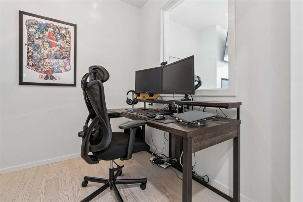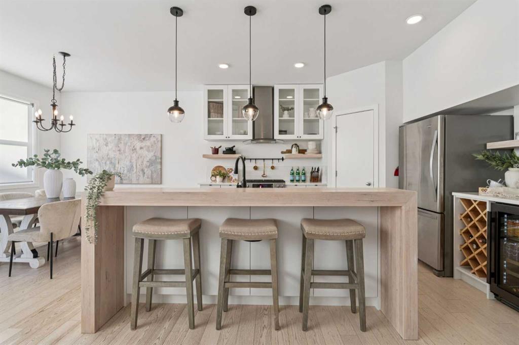 Just off the front entry, a PRIVATE OFFICE/DEN with elegant barn doors offers the ideal work-from-home or study space. The heart of the home is the spacious UPDATED KITCHEN, complete with STAINLESS STEEL appliances including a GAS RANGE, CUSTOM WINE RACK, BAR FRIDGE, and an impressive two-tier island with abundant storage and seating, perfect for hosting and everyday living.