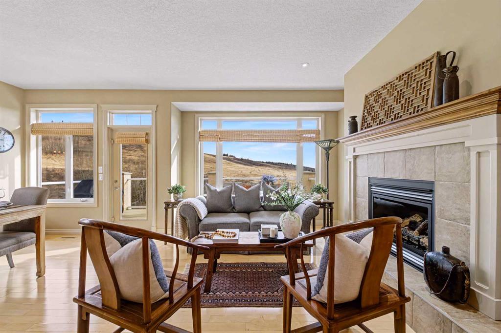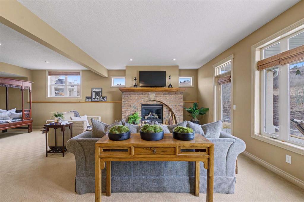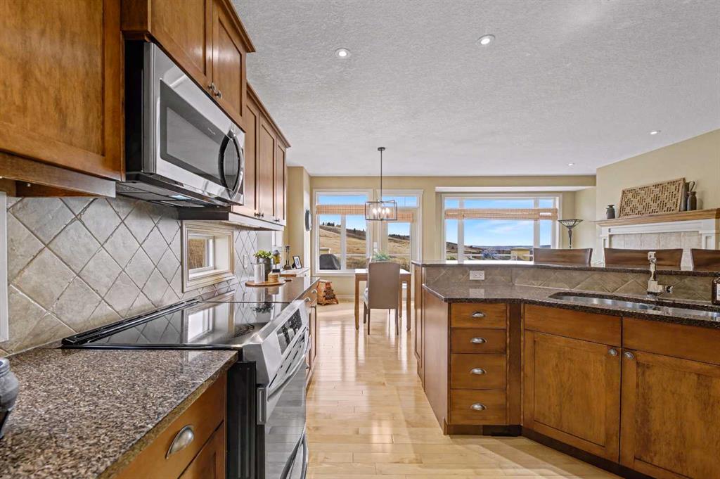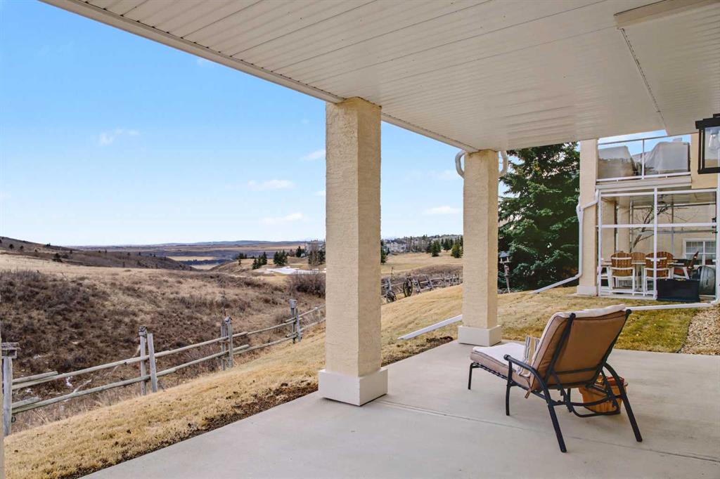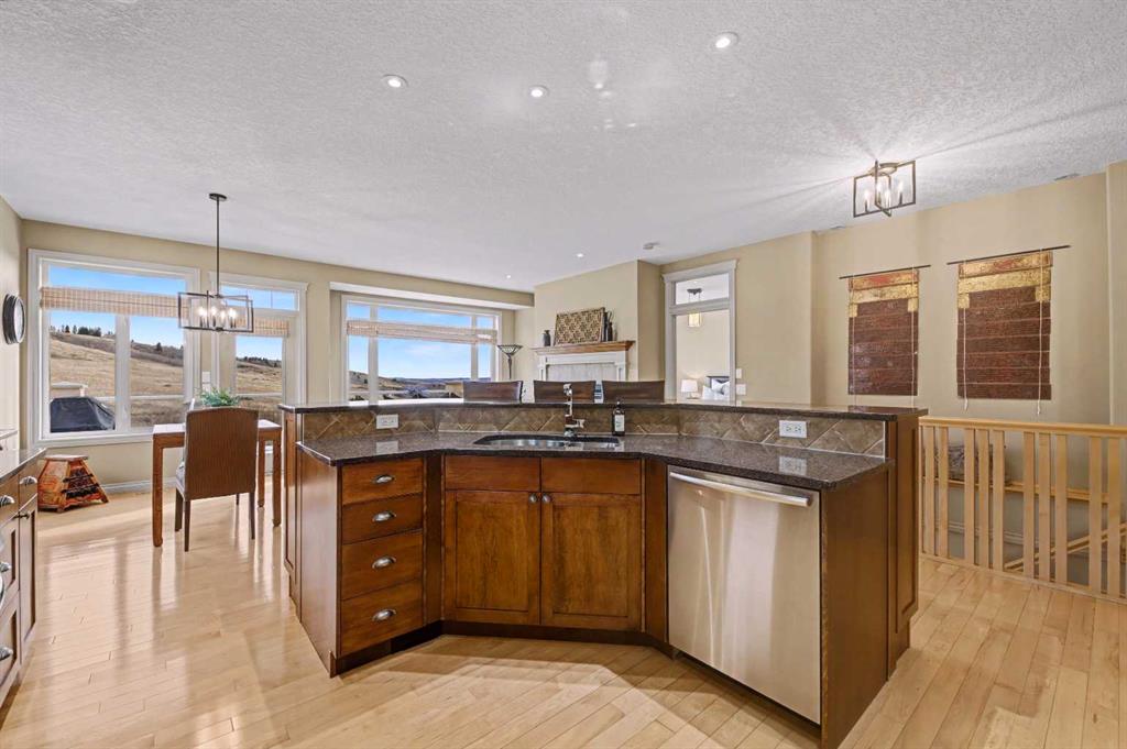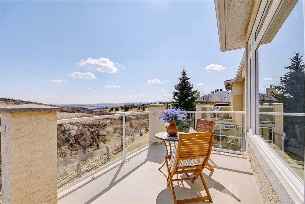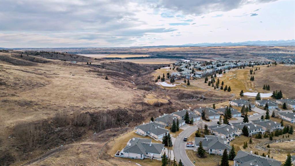 Welcome to the GOLF COMMUNITY OF GLENEAGLES. Are you ready to DONATE THE LAWNMOWER and THROW AWAY THE SNOW SHOVEL? No need for them here! Have you been waiting for a SPACIOUS WALKOUT BUNGALOW VILLA with a STUNNING VIEW FROM BOTH LEVELS? Like to travel? Would it make RV travelling easier if you could LOAD YOUR RV ON the DRIVEWAY (which is close to 40′ long)? If so, then come see unit #149 at ‘Glenhaven’. Backing on the ridge, with a view TOWARD THE RAVINE, and the GOLF COURSE, and the MOUNTAINS! From the time you pull into this villa development you will feel enveloped by natural surroundings. Welcome home as you pull into your IMMACULATE DOUBLE ATTACHED GARAGE with EPOXY FLOORING (ALSO insulated, drywalled, painted, AND including a workbench with built-in power plugs). Now STEP IN THE FRONT DOOR and you will immediately appreciate the TASTEFUL DECOR and THOUGHTFUL DESIGN of this 1600 square foot main floor plan! Impeccable HARDWOOD FLOORING, 9′ CEILINGS, KNOCKDOWN TEXTURE, and UP-SIZED WINDOWS THROUGHOUT, plus a generous addition of LIGHT-TRANSFERRING INTERIOR TRANSOM WINDOWS! From the front entry, the dining room is on your left and the office on your right. The FRONT OFFICE with DOUBLE FRENCH DOORS could double as a quiet TV room (or even a second bedroom). Host your dinner guests in your inviting and elegant formal dining room! The kitchen is outstanding! With a LARGE CENTRAL ISLAND (featuring double-sided cabinetry), GRANITE COUNTERS, STAINLESS STEEL appliances and PRISTINE MAPLE cabinets in WARM CINAMMON tones. From the breakfast nook, sip your coffee and drink in EXPANSIVE VIEWS to the hillside above and the ravine below. In the winter, you can cozy up in your LIVING ROOM to a GAS FIREPLACE, with stylish columns and a mantle to match the kitchen cabinets. Or in the summer, step outside to barbeque your dinner on the SPACIOUS UPPER DECK with vinyl flooring (plus aluminum railing with glass inserts to maximize the view)! After a busy day at work or play, you can unwind and relax in your own SPA-LIKE ENSUITE! This ensuite is truly beautiful with a fully tiled corner shower siding onto a deep soaker tub (with one step up for easy access)! INCREDIBLE PRIVACY from your primary bedroom, with no other homes in your sightline, or any walking path behind. Let’s head DOWNSTAIRS to your FINISHED WALKOUT BASEMENT with a RARE AND TRULY BRILLIANT APPROACH TO IN-FLOOR HEAT! This basement’s concrete floor has perimeter furnace vents in the slab, just like your main level! True story! This perimeter in-slab heat system, plus your 2nd fireplace in the basement will keep the lower level feeling just like upstairs. The spacious basement level includes another bedroom and full bathroom, huge rec room and large storage area. The rec room includes a gorgeous brick-faced fireplace, arch detailing, raised hearth. Step outside to a lower patio, covered by the upper walkout deck. So many more exquisite features. Book your showing today!