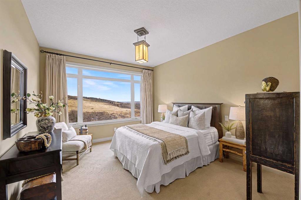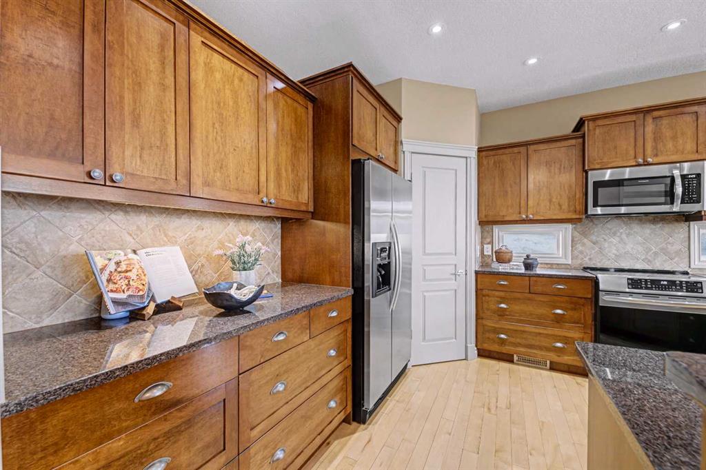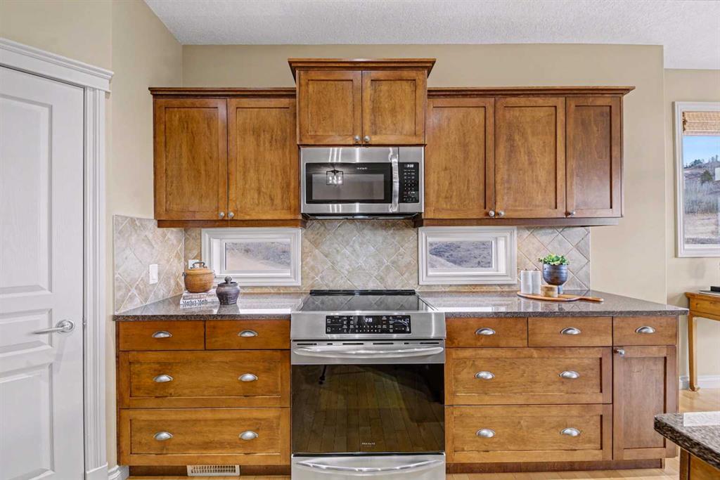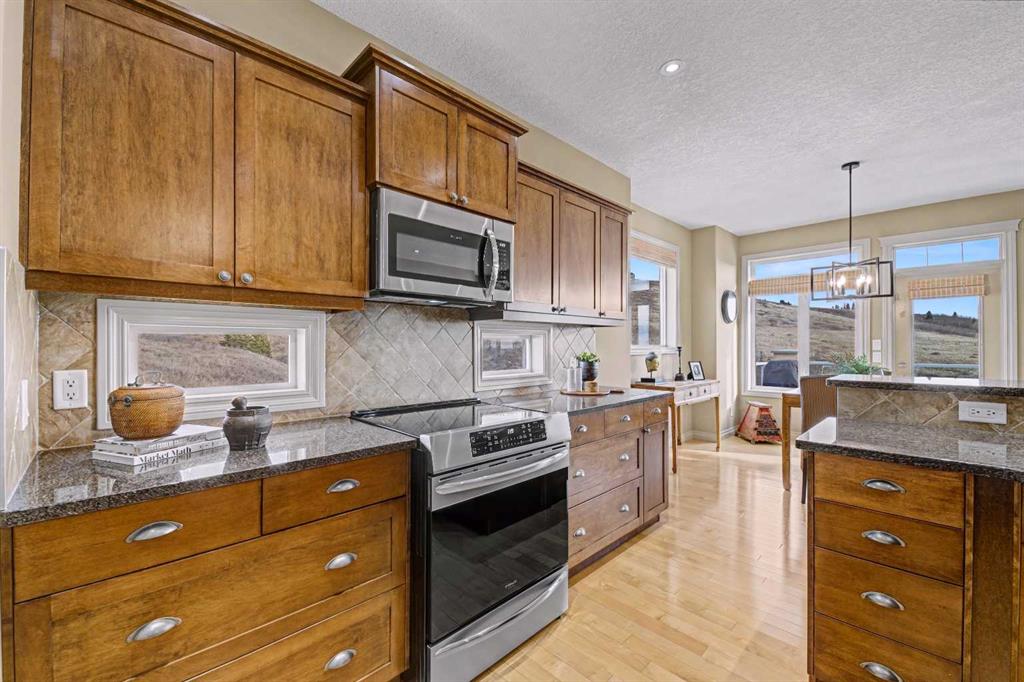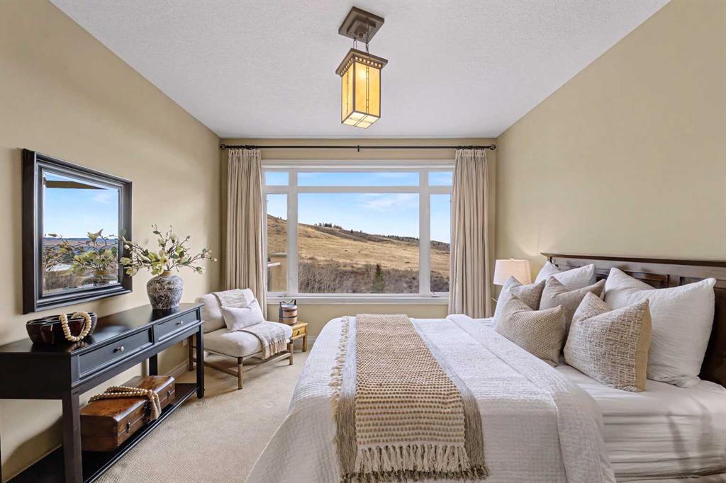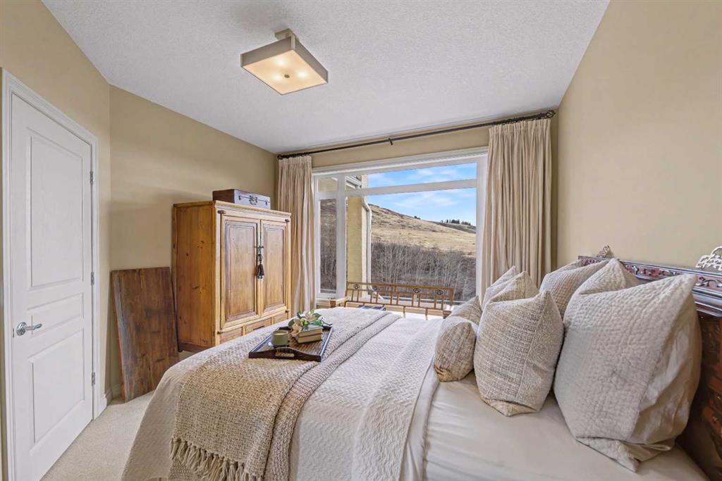 Welcome to the GOLF COMMUNITY OF GLENEAGLES. Are you ready to DONATE THE LAWNMOWER and THROW AWAY THE SNOW SHOVEL? No need for them here! Have you been waiting for a SPACIOUS WALKOUT BUNGALOW VILLA with a STUNNING VIEW FROM BOTH LEVELS? Like to travel? Would it make RV travelling easier if you could LOAD YOUR RV ON the DRIVEWAY (which is close to 40′ long)? If so, then come see unit #149 at ‘Glenhaven’. Backing on the ridge, with a view TOWARD THE RAVINE, and the GOLF COURSE, and the MOUNTAINS! From the time you pull into this villa development you will feel enveloped by natural surroundings. Welcome home as you pull into your IMMACULATE DOUBLE ATTACHED GARAGE with EPOXY FLOORING (ALSO insulated, drywalled, painted, AND including a workbench with built-in power plugs). Now STEP IN THE FRONT DOOR and you will immediately appreciate the TASTEFUL DECOR and THOUGHTFUL DESIGN of this 1600 square foot main floor plan! Impeccable HARDWOOD FLOORING, 9′ CEILINGS, KNOCKDOWN TEXTURE, and UP-SIZED WINDOWS THROUGHOUT, plus a generous addition of LIGHT-TRANSFERRING INTERIOR TRANSOM WINDOWS! From the front entry, the dining room is on your left and the office on your right. The FRONT OFFICE with DOUBLE FRENCH DOORS could double as a quiet TV room (or even a second bedroom). Host your dinner guests in your inviting and elegant formal dining room! The kitchen is outstanding! With a LARGE CENTRAL ISLAND (featuring double-sided cabinetry), GRANITE COUNTERS, STAINLESS STEEL appliances and PRISTINE MAPLE cabinets in WARM CINAMMON tones. From the breakfast nook, sip your coffee and drink in EXPANSIVE VIEWS to the hillside above and the ravine below. In the winter, you can cozy up in your LIVING ROOM to a GAS FIREPLACE, with stylish columns and a mantle to match the kitchen cabinets. Or in the summer, step outside to barbeque your dinner on the SPACIOUS UPPER DECK with vinyl flooring (plus aluminum railing with glass inserts to maximize the view)! After a busy day at work or play, you can unwind and relax in your own SPA-LIKE ENSUITE! This ensuite is truly beautiful with a fully tiled corner shower siding onto a deep soaker tub (with one step up for easy access)! INCREDIBLE PRIVACY from your primary bedroom, with no other homes in your sightline, or any walking path behind. Let’s head DOWNSTAIRS to your FINISHED WALKOUT BASEMENT with a RARE AND TRULY BRILLIANT APPROACH TO IN-FLOOR HEAT! This basement’s concrete floor has perimeter furnace vents in the slab, just like your main level! True story! This perimeter in-slab heat system, plus your 2nd fireplace in the basement will keep the lower level feeling just like upstairs. The spacious basement level includes another bedroom and full bathroom, huge rec room and large storage area. The rec room includes a gorgeous brick-faced fireplace, arch detailing, raised hearth. Step outside to a lower patio, covered by the upper walkout deck. So many more exquisite features. Book your showing today!