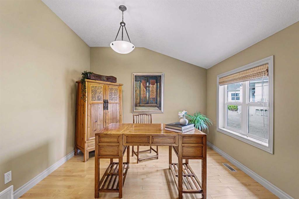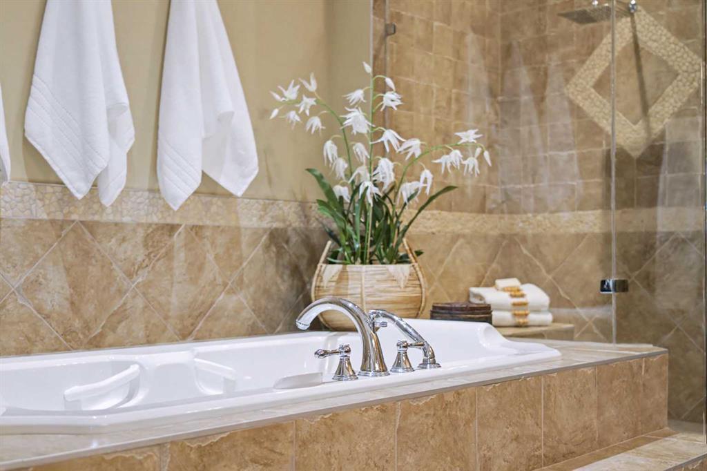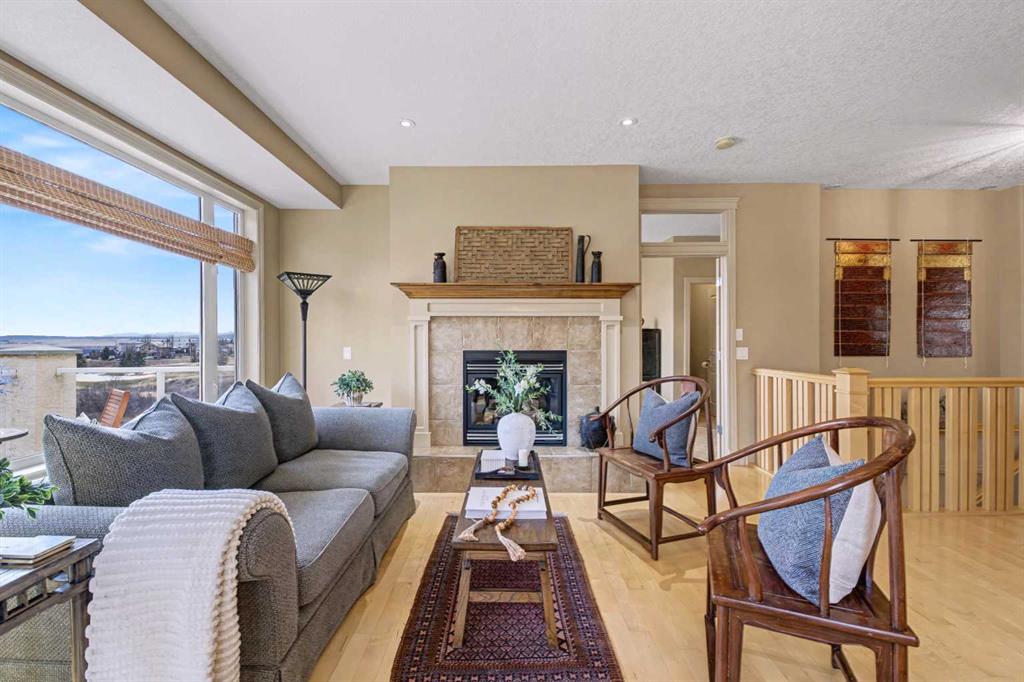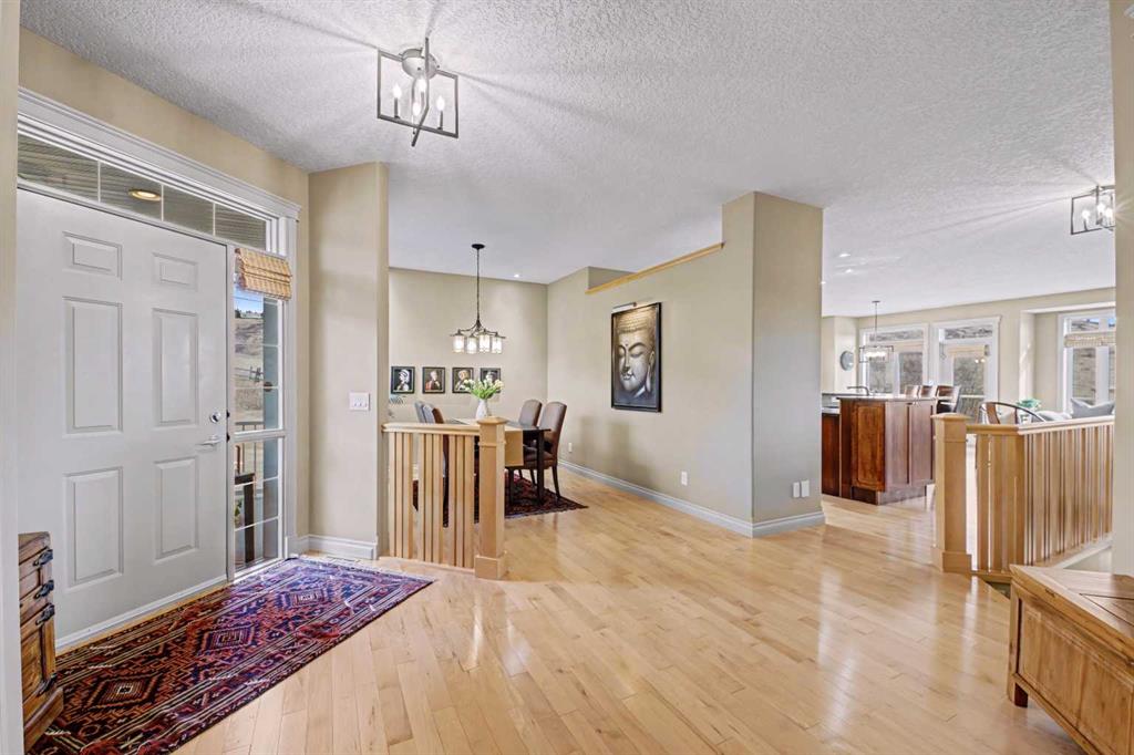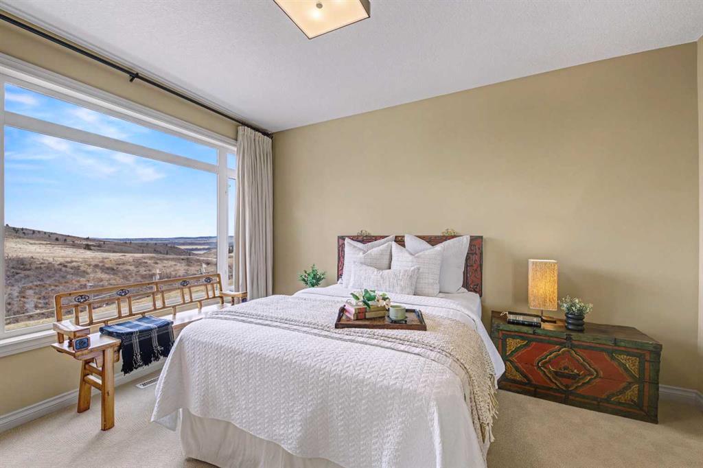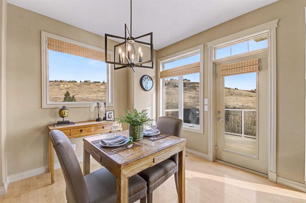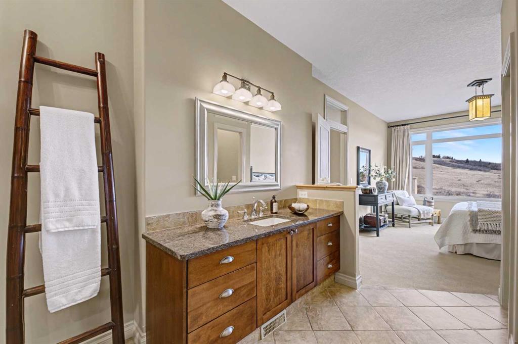 Welcome to the GOLF COMMUNITY OF GLENEAGLES. Are you ready to DONATE THE LAWNMOWER and THROW AWAY THE SNOW SHOVEL? No need for them here! Have you been waiting for a SPACIOUS WALKOUT BUNGALOW VILLA with a STUNNING VIEW FROM BOTH LEVELS? Like to travel? Would it make RV travelling easier if you could LOAD YOUR RV ON the DRIVEWAY (which is close to 40′ long)? If so, then come see unit #149 at ‘Glenhaven’. Backing on the ridge, with a view TOWARD THE RAVINE, and the GOLF COURSE, and the MOUNTAINS! From the time you pull into this villa development you will feel enveloped by natural surroundings. Welcome home as you pull into your IMMACULATE DOUBLE ATTACHED GARAGE with EPOXY FLOORING (ALSO insulated, drywalled, painted, AND including a workbench with built-in power plugs). Now STEP IN THE FRONT DOOR and you will immediately appreciate the TASTEFUL DECOR and THOUGHTFUL DESIGN of this 1600 square foot main floor plan! Impeccable HARDWOOD FLOORING, 9′ CEILINGS, KNOCKDOWN TEXTURE, and UP-SIZED WINDOWS THROUGHOUT, plus a generous addition of LIGHT-TRANSFERRING INTERIOR TRANSOM WINDOWS! From the front entry, the dining room is on your left and the office on your right. The FRONT OFFICE with DOUBLE FRENCH DOORS could double as a quiet TV room (or even a second bedroom). Host your dinner guests in your inviting and elegant formal dining room! The kitchen is outstanding! With a LARGE CENTRAL ISLAND (featuring double-sided cabinetry), GRANITE COUNTERS, STAINLESS STEEL appliances and PRISTINE MAPLE cabinets in WARM CINAMMON tones. From the breakfast nook, sip your coffee and drink in EXPANSIVE VIEWS to the hillside above and the ravine below. In the winter, you can cozy up in your LIVING ROOM to a GAS FIREPLACE, with stylish columns and a mantle to match the kitchen cabinets. Or in the summer, step outside to barbeque your dinner on the SPACIOUS UPPER DECK with vinyl flooring (plus aluminum railing with glass inserts to maximize the view)! After a busy day at work or play, you can unwind and relax in your own SPA-LIKE ENSUITE! This ensuite is truly beautiful with a fully tiled corner shower siding onto a deep soaker tub (with one step up for easy access)! INCREDIBLE PRIVACY from your primary bedroom, with no other homes in your sightline, or any walking path behind. Let’s head DOWNSTAIRS to your FINISHED WALKOUT BASEMENT with a RARE AND TRULY BRILLIANT APPROACH TO IN-FLOOR HEAT! This basement’s concrete floor has perimeter furnace vents in the slab, just like your main level! True story! This perimeter in-slab heat system, plus your 2nd fireplace in the basement will keep the lower level feeling just like upstairs. The spacious basement level includes another bedroom and full bathroom, huge rec room and large storage area. The rec room includes a gorgeous brick-faced fireplace, arch detailing, raised hearth. Step outside to a lower patio, covered by the upper walkout deck. So many more exquisite features. Book your showing today!