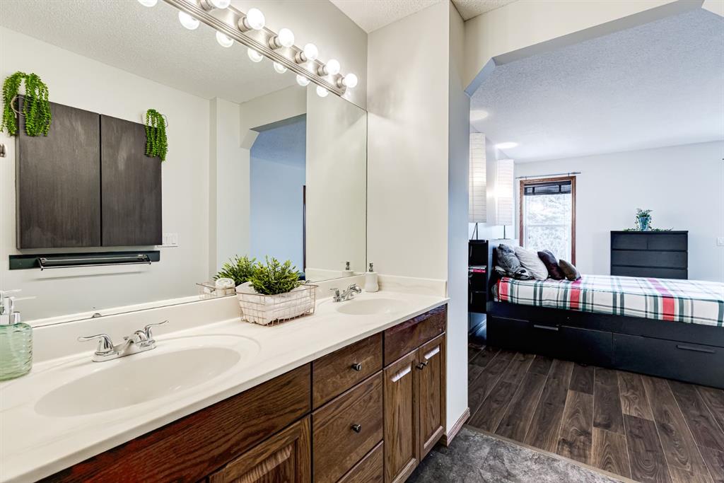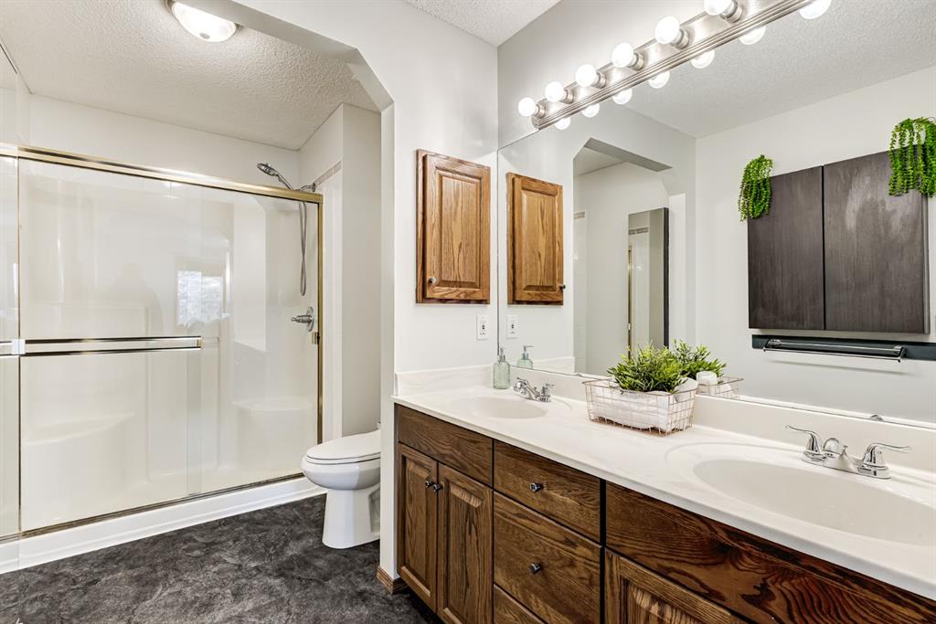 Upstairs, a large bonus room with cozy fireplace and abundant natural light creates the perfect gathering space. The upper level also includes a spacious primary retreat with walk-in closet and ensuite featuring dual sinks and an oversized shower, along with two additional bedrooms and a full four-piece bathroom.