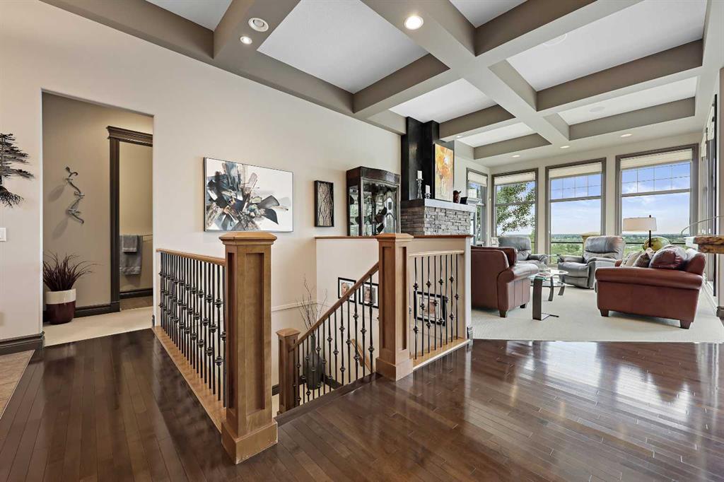 ABSOLUTELY THE FINEST VIEW THE RIDGE HAS TO OFFER IN SOUTH CALGARY! This rare, pie-shaped 1/3-acre walkout bungalow is perched atop the McKenzie Ridge, offering an unrivalled vantage point with panoramic, unobstructed views of the Bow River Valley, the majestic Rocky Mountains, Fish Creek Park, and the glittering Downtown skyline. Custom-built by Jayman, this executive home boasts over 4,000+ square feet of luxuriously finished living space. It is being offered for sale by the original owners. Situated on a quiet, private street with a sunny west-facing backyard, this property is a true sanctuary, featuring a professionally designed, resort-style backyard, mature landscaping, and ample outdoor space to entertain or relax, with nature at your doorstep. The oversized heated triple-car garage features a walkway ramp, built-in storage, and easy access for added convenience. Inside, a wall of floor-to-ceiling windows along the ridge floods the main level with natural light, showcasing the spectacular views from nearly every room. The main floor features 2,175 sq.ft. of elegant living with soaring 12’ ceilings, rich hardwood floors, an inviting family room with a stone-faced gas fireplace, a front dining room, and a stunning chef’s kitchen with custom cabinetry, granite counters, BOSCH built-in appliances, Samsung Fridge, a dramatic central island with undermount sink, raised eating bar, server bar with beverage fridge and prep sink, and a large walk through server area and built in wall pantry. A spacious main-floor office or flex room is ideal for working from home, with inspiring views. The stately primary retreat offers breathtaking scenery, a large walk-in closet with built-ins, and a luxurious, spa-like en suite with dual vanities, a soaker tub, and a separate steam shower. A mudroom, laundry area, and powder room complete the main level. The fully finished 1,856 sq.ft. The walkout basement is designed for entertaining, featuring two large bedrooms, a massive 55’ x 22’ family/games/rec room with a second gas fireplace, a full entertainment wall, a wraparound wet bar, a five-piece bathroom, and ample storage. Step outside to an 18′ x 13′ covered concrete patio, a 12′ x 12′ open patio with a firepit area, and an expansive 55’ x 12’ upper deck finished with a vinyl surface and glass railings—perfect for enjoying sunsets and nature year-round. Additional features include two A/C units, a built-in speaker system, a stucco-and-stone exterior, a cedar-shake roof, and extensive mature trees and shrubs. Located in one of Calgary’s most sought-after SE communities, just minutes from Fish Creek Park, top-tier schools, a first-class golf course, shopping, and easy access to major roads, this exceptional home offers estate-level living, an unbeatable location, and a lifestyle that’s second to none. Call your favourite REALTOR® today to schedule your private viewing—this is a once-in-a-lifetime opportunity!