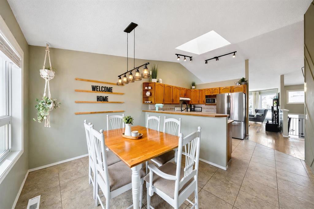 From the moment you step inside, you’re welcomed by warm, refined finishes and an inviting atmosphere that instantly feels like home. The stunning vaulted ceiling in the living room creates a bright, open ambiance, seamlessly connecting to the kitchen and dining areas—an ideal layout for both everyday living and effortless entertaining. The kitchen is filled with natural light, enhanced by large windows and a skylight, creating a cheerful and functional space at the heart of the home. The dining room offers an expansive setting for a grand table—perfectly designed for elegant entertaining and unforgettable gatherings with family and friends. The primary bedroom is a peaceful retreat, complete with a private ensuite, while two additional bedrooms and a full bathroom complete the thoughtfully designed main level. The fully developed lower level adds incredible versatility, featuring a spacious family room anchored by a cozy gas fireplace and a wet bar—perfect for movie nights or hosting guests. Two additional bedrooms, an updated full bathroom, and a generous laundry and storage area complete this level. Step outside to a backyard designed for both relaxation and play, with a deck ideal for summer BBQs and a beautifully landscaped green space perfect for kids and pets. Imagine evenings spent gathered around the fire under peaceful, star-filled skies. Additional highlights include a heated double attached garage, a newer garage door opener (approx. 3–4 years old), and extensive upgrades throughout. Major improvements include new triple-pane windows (Sept 2022), new front door (Sept 2022), a high-efficiency furnace (Dec 2020) with annual servicing (most recently Dec 24, 2025), central air conditioning, a Nest thermostat, radon mitigation system (Nov 2024), and full Poly B plumbing replacement (2026). The hot water tank was replaced in 2018, and the garage is equipped with a built-in heater for year-round comfort. This is more than just a home—it’s a lifestyle opportunity in a prime location where families thrive, nature is at your doorstep, and everyday convenience is unmatched. Book your private showing today!