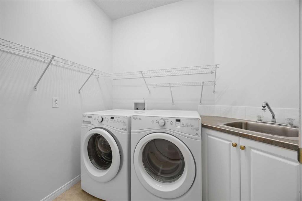 Extra living space in the developed basement provides the potential for additional storage, a home office, a hobby room or gym. This bonus area is a perfect set-up for family to visit and stay. A natural gas fireplace, 2 large bedrooms, a 4-piece bathroom, and rec room complete this space. Outdoors, you will find a spacious yard with mature trees situated on a corner pie shaped lot. Enjoy maintenance-free living as the exterior (snow removal, recycling, tree care, and underground sprinklers) is maintained by the management company.