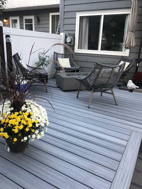 What a beauty! Perfect location on the back side of the complex in a quiet corner, steps away from Fish Creek Park! Go for long walks immersed in nature along paved pathways! This complex is incredibly well managed with strong reserve fund & low monthly condo fees that even include water & gas! The unit has been beautifully updated featuring modern design touches. Gleaming oak hardwood floors, newer windows & hot water tank. Re-designed kitchen features Black Walnut butcher block counter tops, loads of white cabinets & new appliances. Check out the induction stove! Enjoy your breakfast at the dining nook overlooking the beautiful back yard & watch the squirrels playing in the mature trees behind! 3 bedrooms & a fully updated bathroom upstairs. The Primary bedroom has room for a full furniture suite, features a large closet & nook area perfect for a computer or makeup desk. More space awaits you in the basement where the laundry machines & mechanicals are located. Look for the “secret door” that leads to a whimsical room professionally painted by a movie set designer. The yard has been transformed into a private oasis in nature. Enjoy low maintenance vinyl decking & stone bordered raised gardens! Walk out the back gate directly to your parking space. You will love getting to know the friendly, quiet, long term neighbours.
